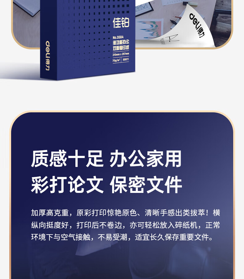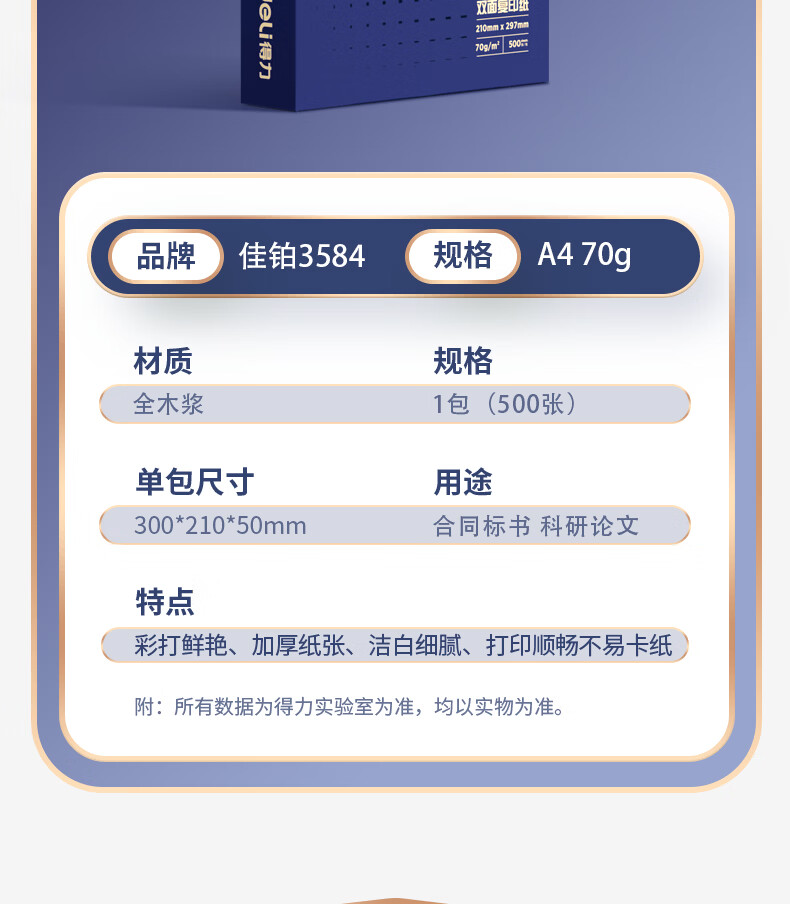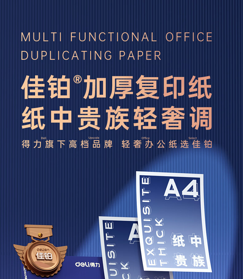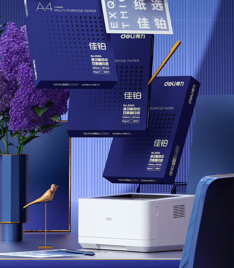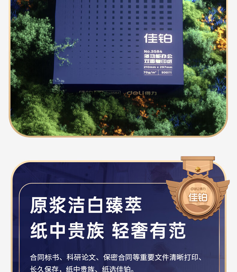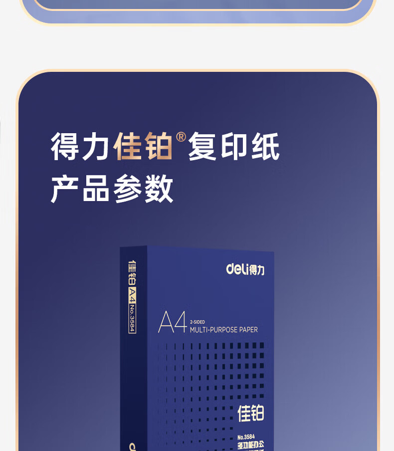 得力(deli)A4打印纸佳铂高档单包复印纸光滑细腻不卡纸 双面打印 办公用纸合同标书彩打纸书写不漏墨 【80g/500张】佳铂-纸中贵族