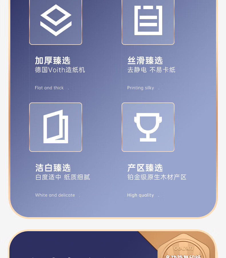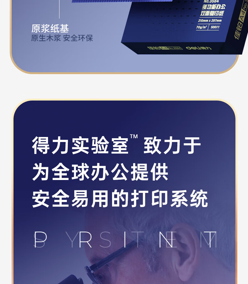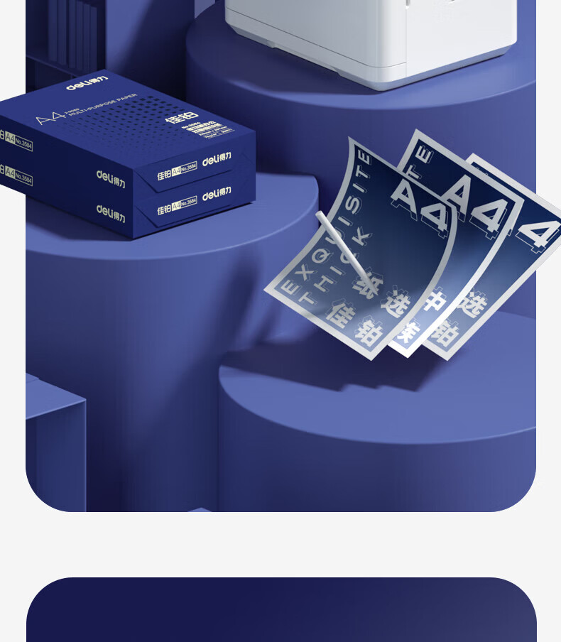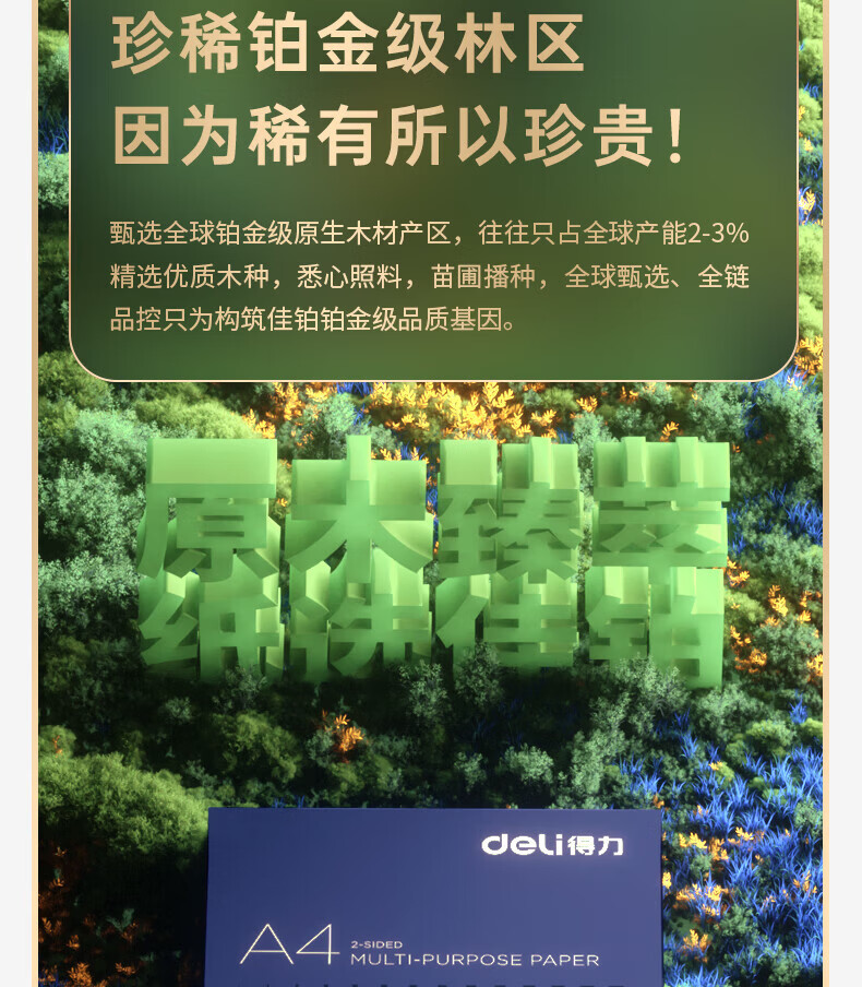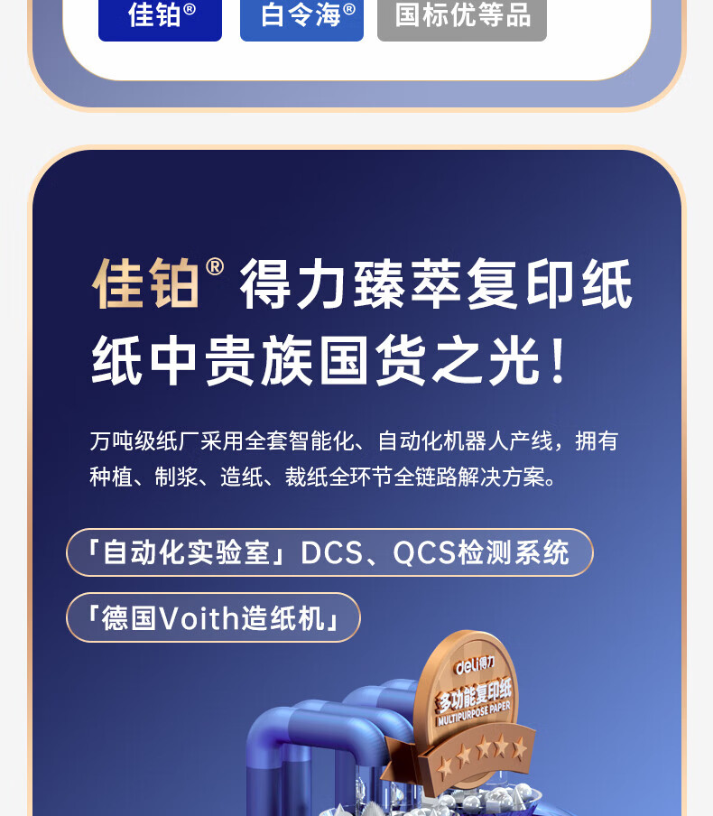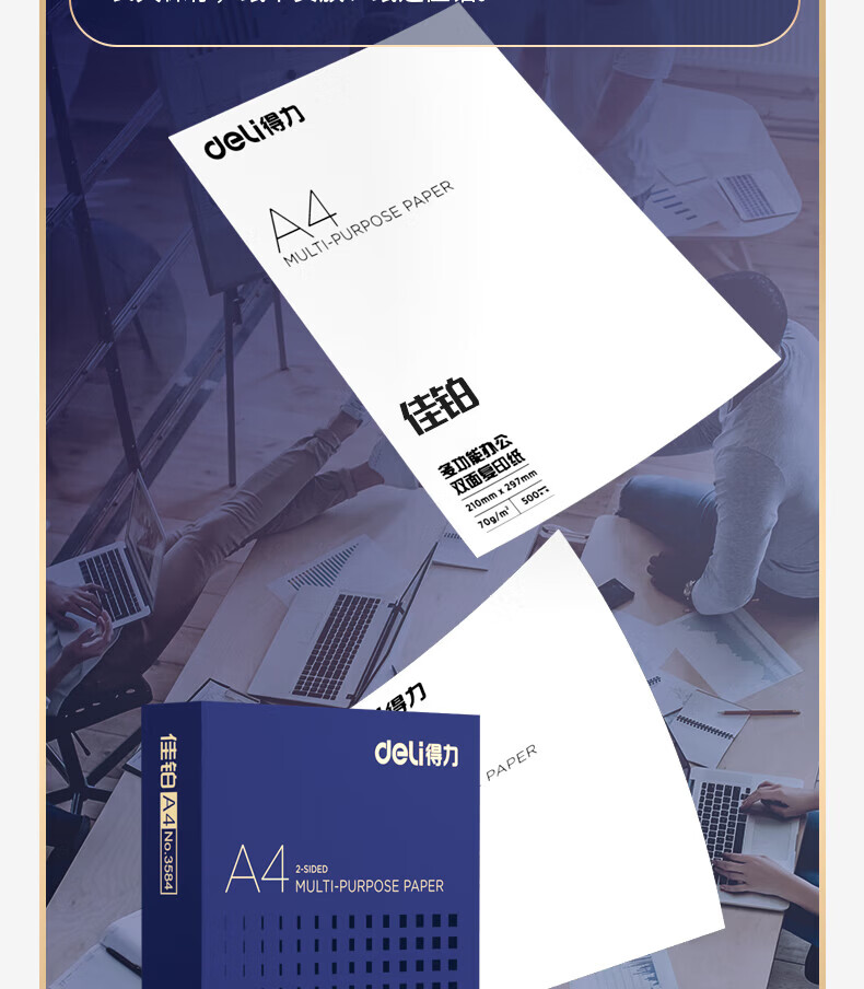 得力(deli)A4打印纸佳铂高档单包复印纸光滑细腻不卡纸 双面打印 办公用纸合同标书彩打纸书写不漏墨 【80g/500张】佳铂-纸中贵族