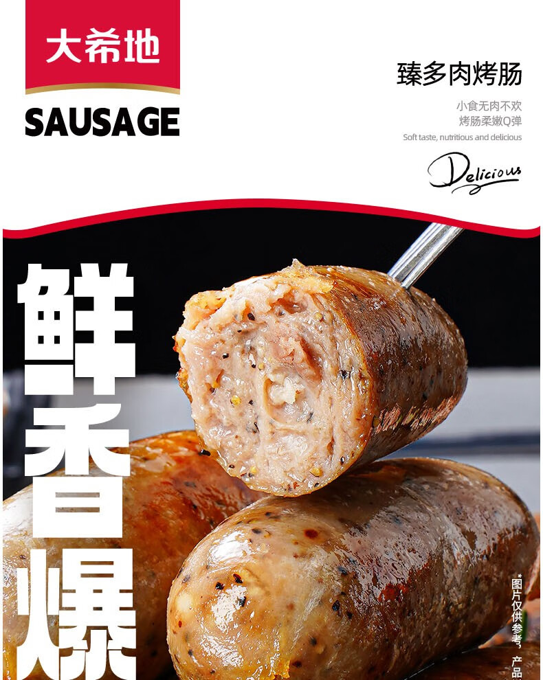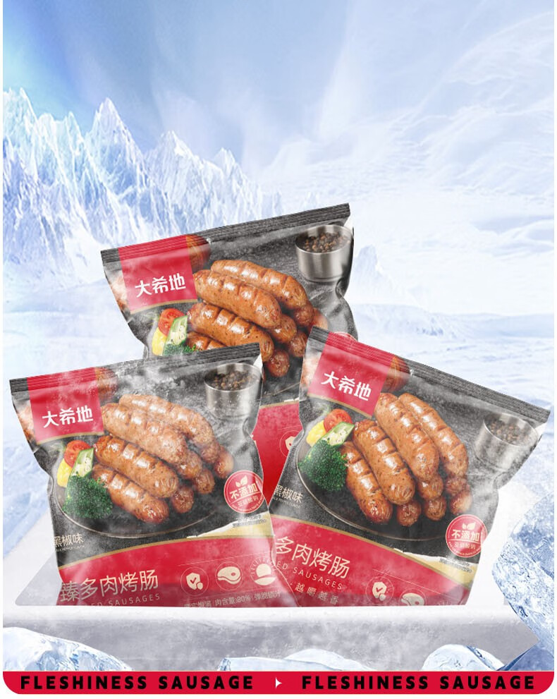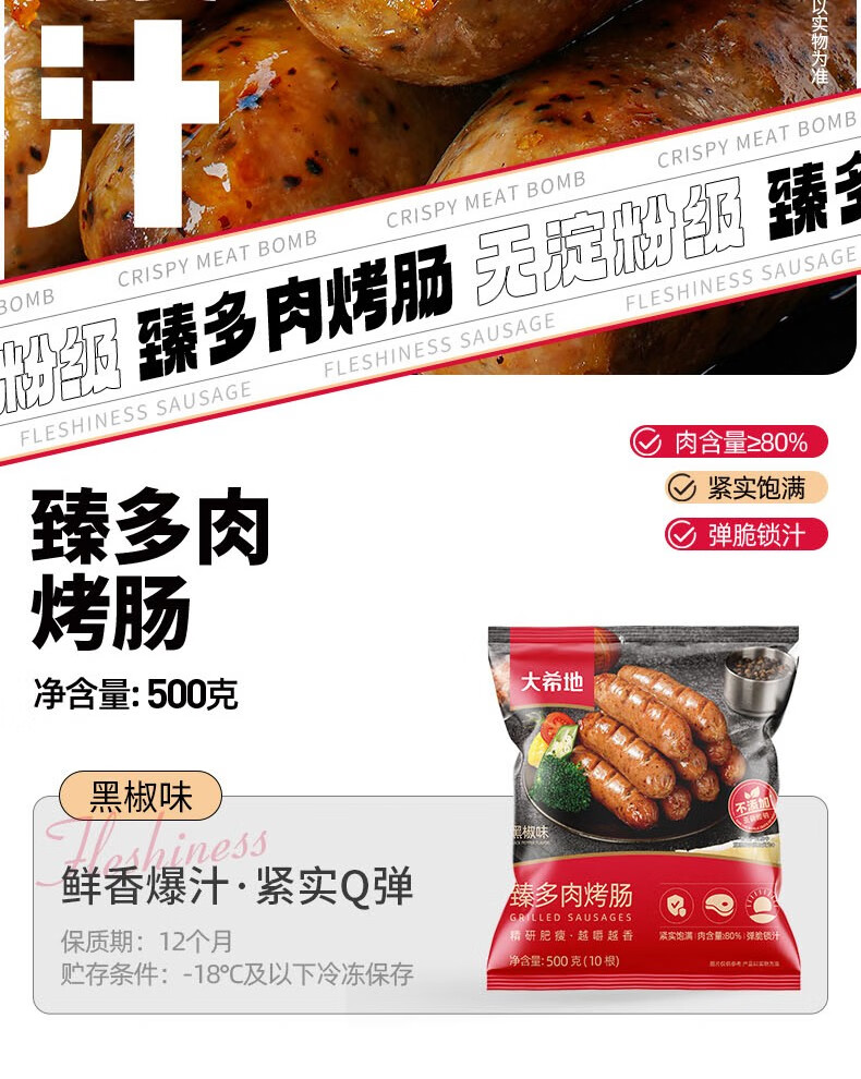大希地无淀粉火山石烤肠黑胡椒味2斤/20根 早餐火腿肠烧烤 春节也送货