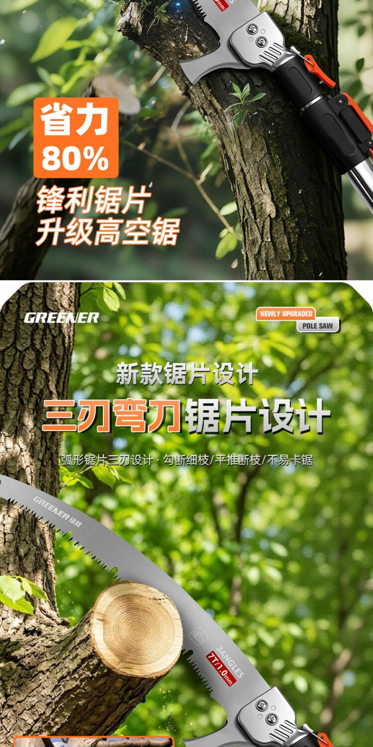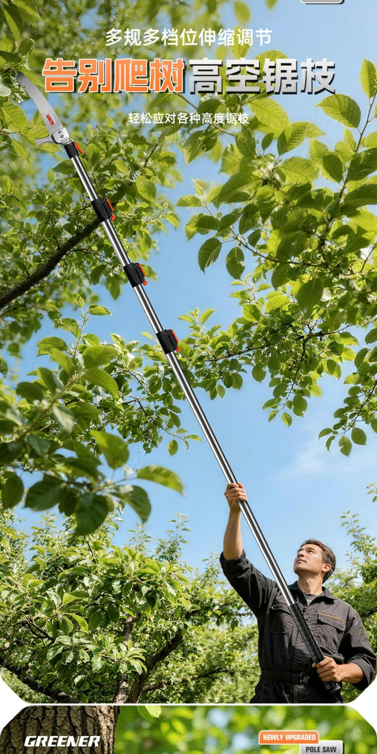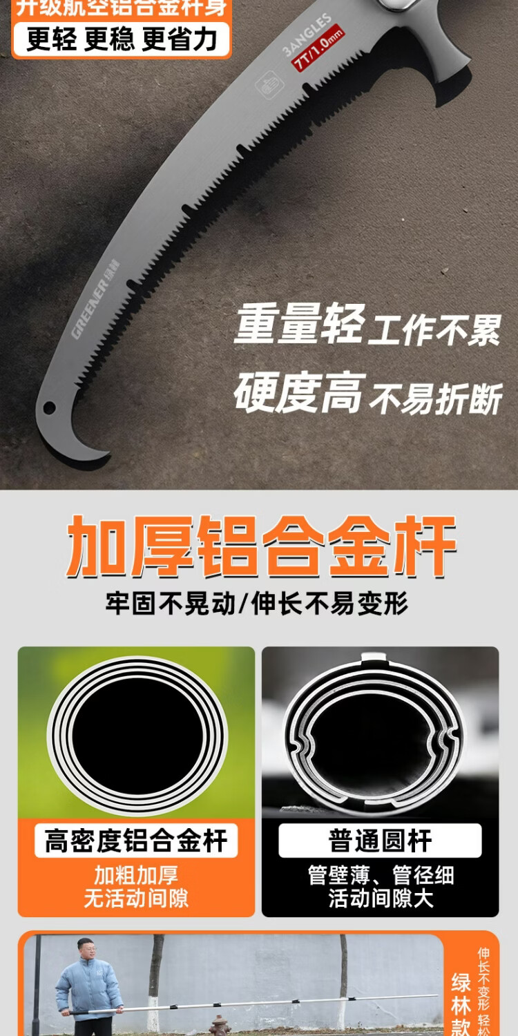 绿林高空锯剪子修枝伸缩高枝锯木头剪园林剪刀锯树神器高枝剪园艺 银骑士3.5米加厚杆高枝锯