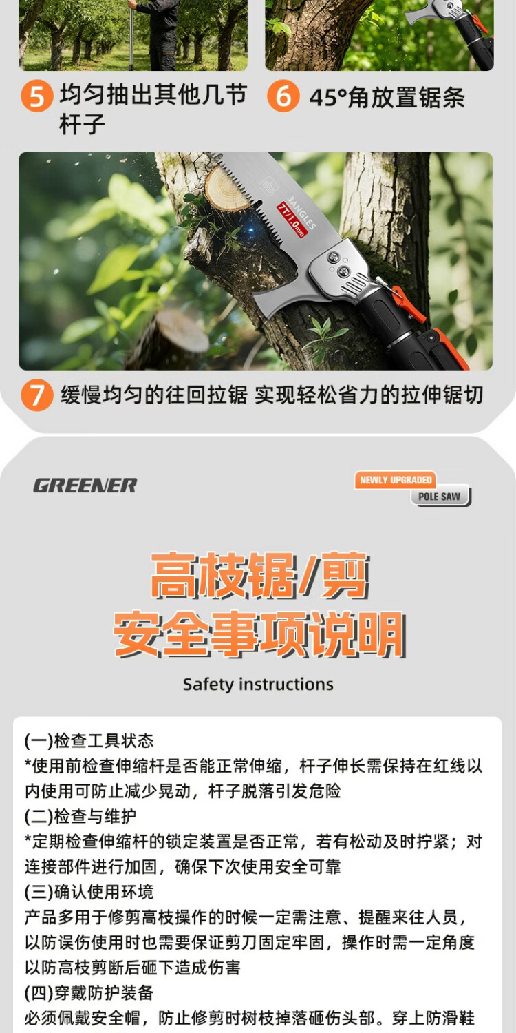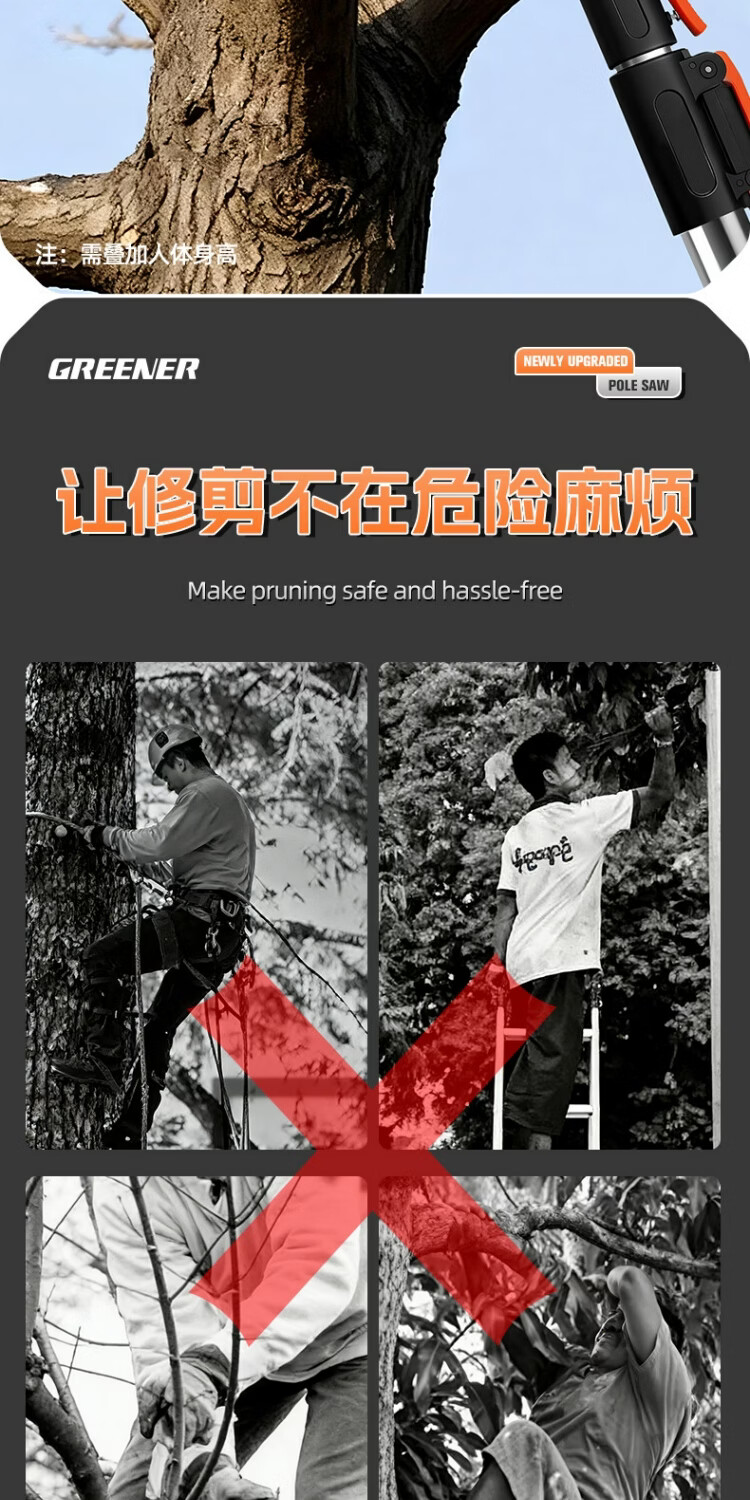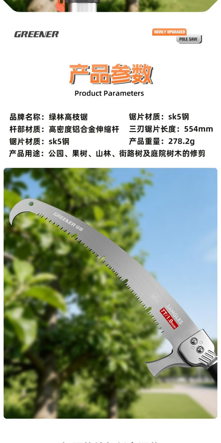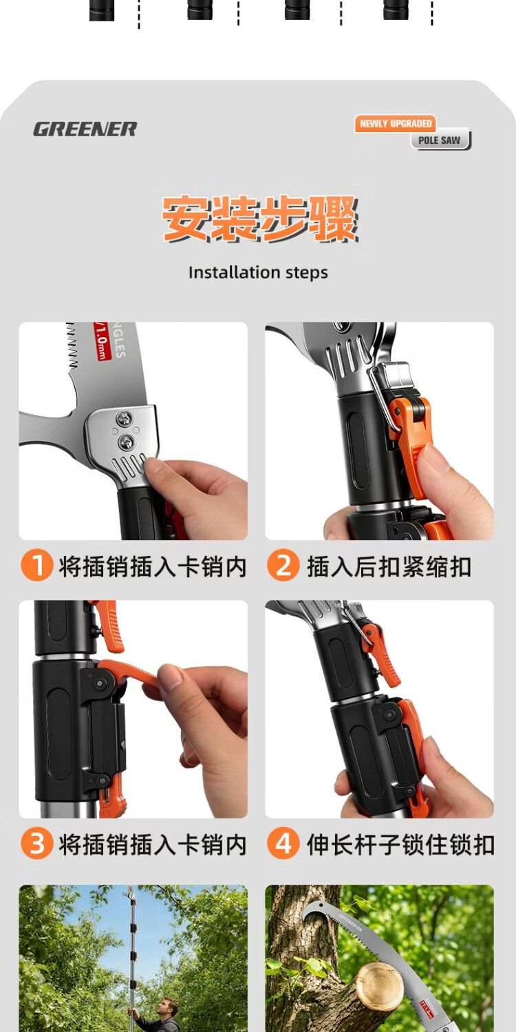 绿林高空锯剪子修枝伸缩高枝锯木头剪园林剪刀锯树神器高枝剪园艺 银骑士3.5米加厚杆高枝锯