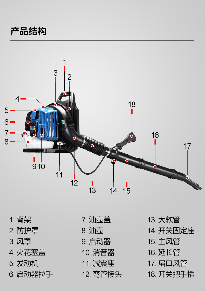 东成 汽油吹风机大功率鼓风机背负式暴风机吹雪机工业吹尘枪除尘器 四冲程【2600W】汽油吹风机FF-CF19