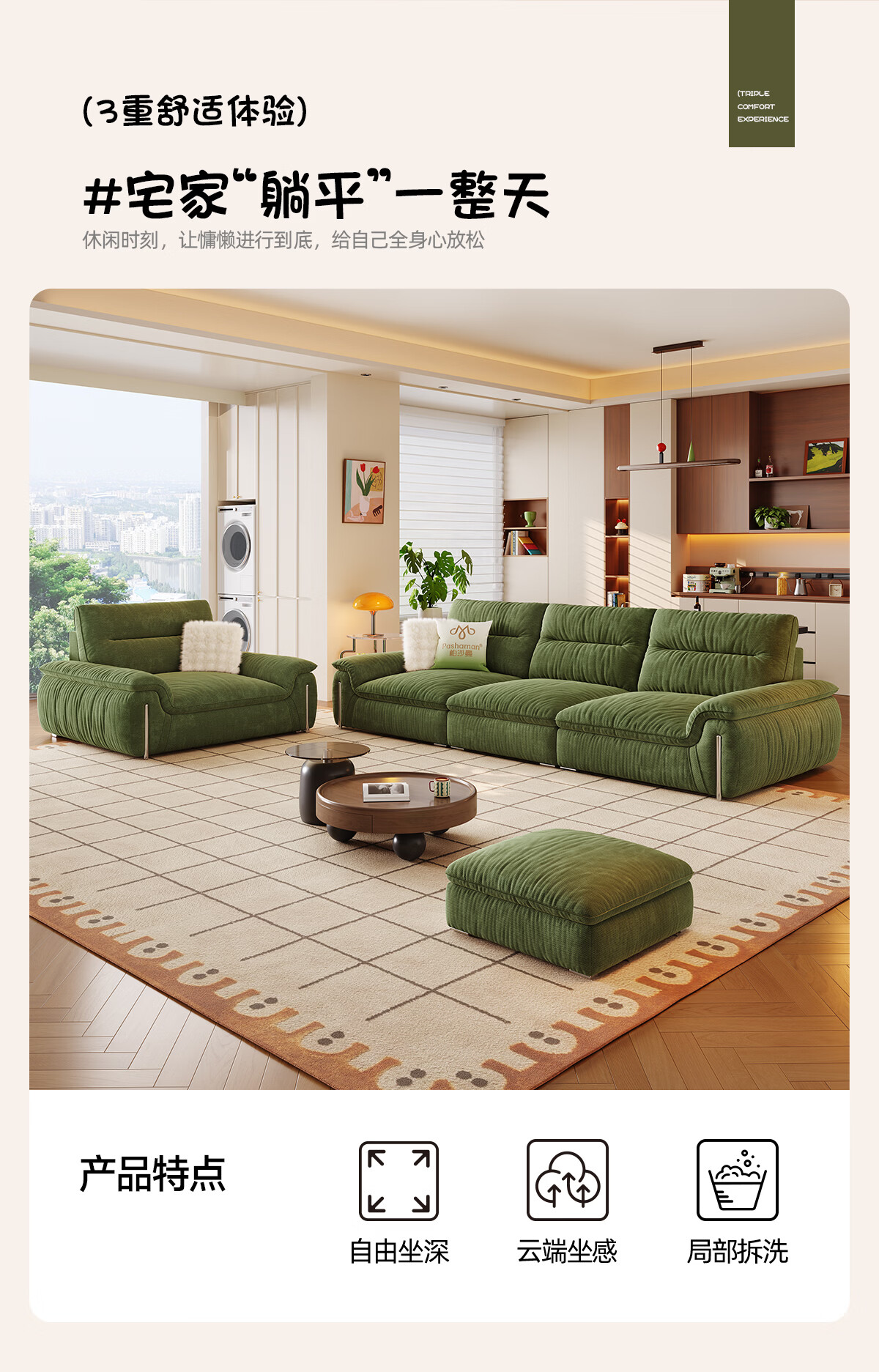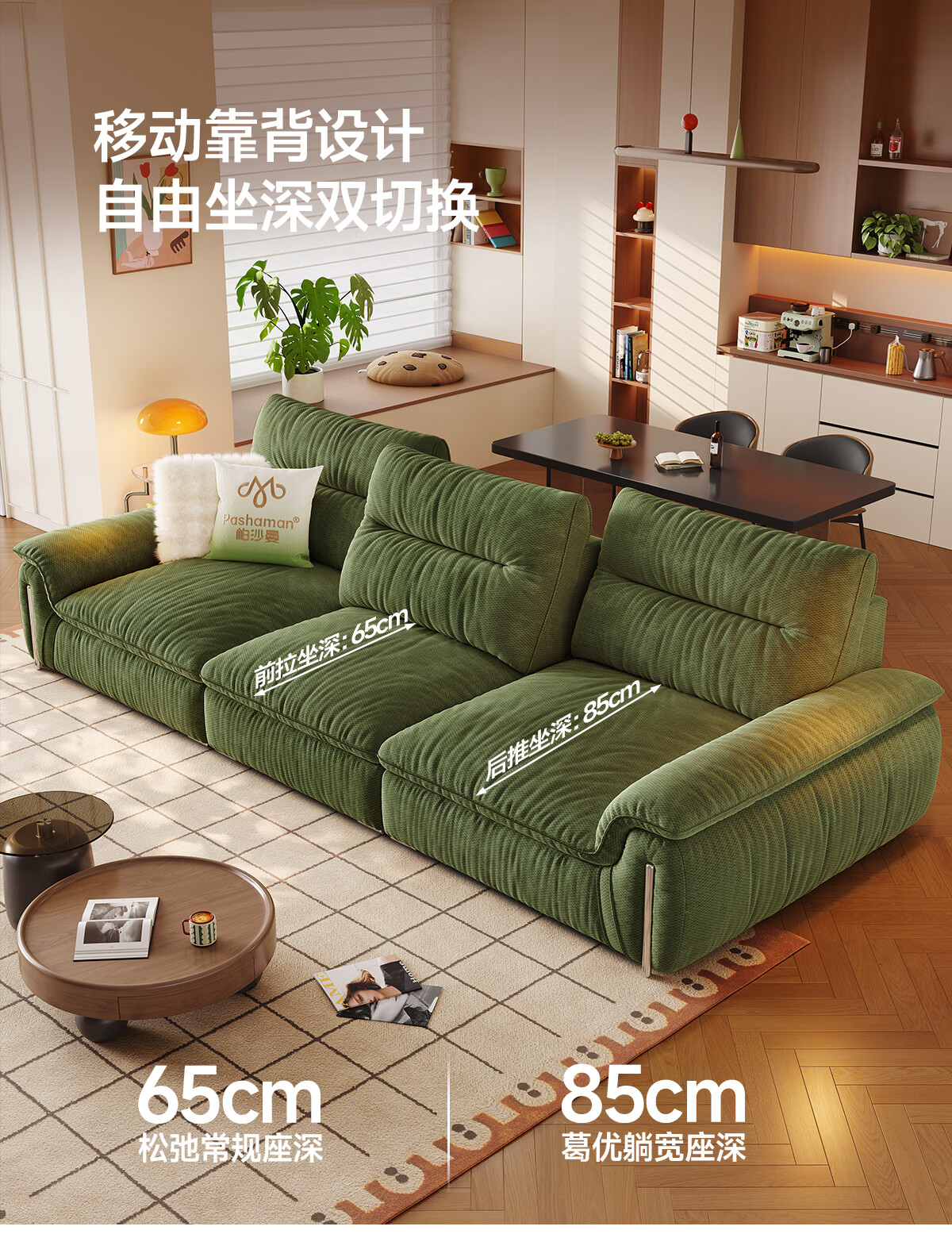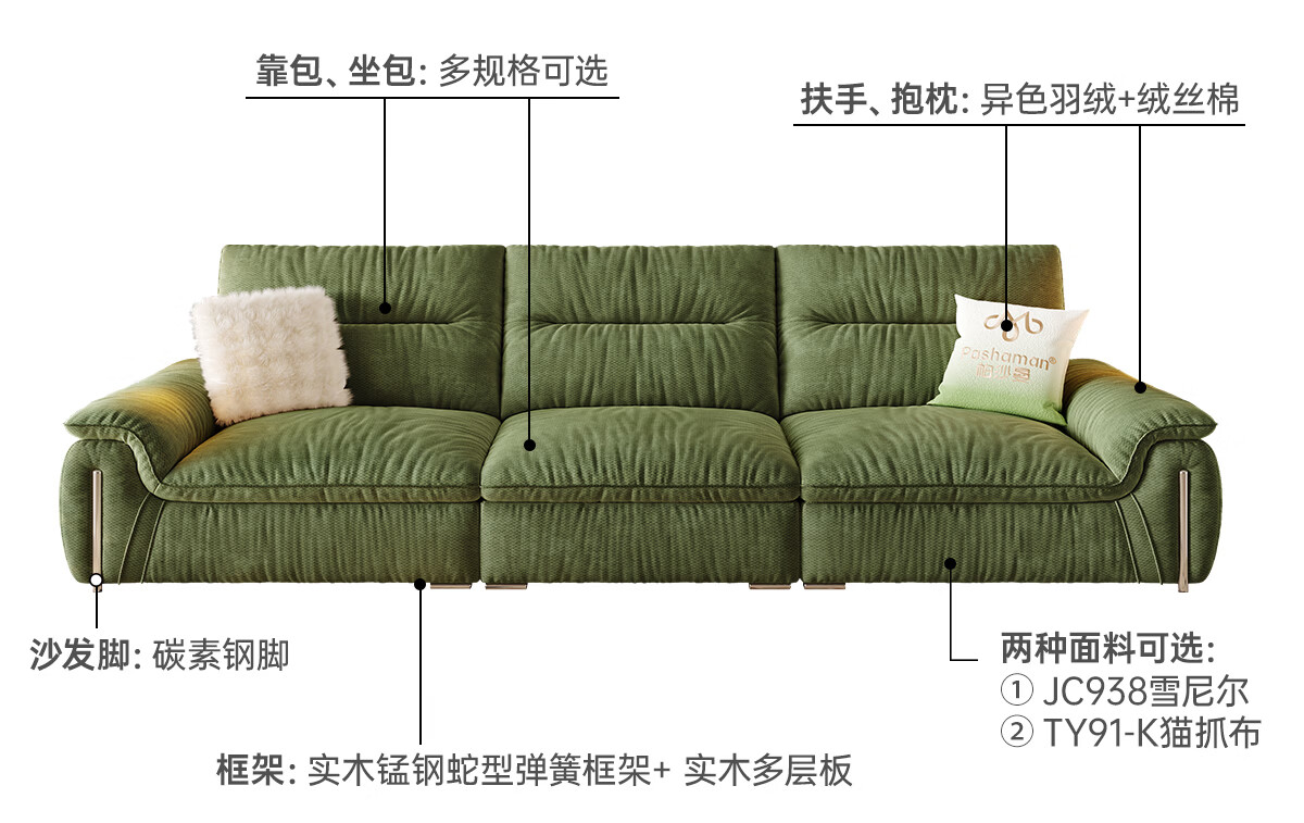 帕沙曼可拆洗布艺沙发客厅小户型复古风帆船雪尼尔沙发可移动靠背2960ZF 2.36米大双人位【可拆洗设计 可移动靠背】 雪尼尔JC938【豪华版】 羽绒+绒丝绵+竹炭海绵