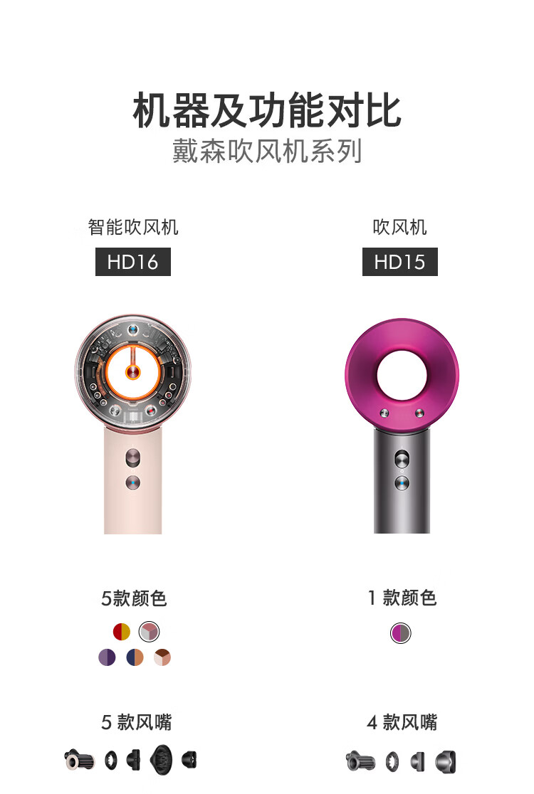 戴森(DYSON)HD16 全新智能吹风机 Supersonic 电吹风 负离子 速干护发 送礼推荐 多风嘴 HD16落日玫瑰色