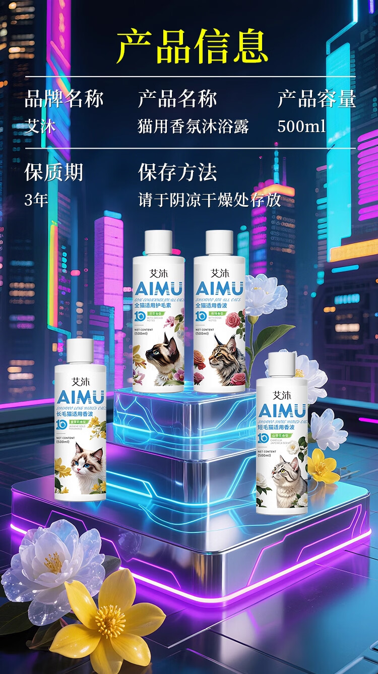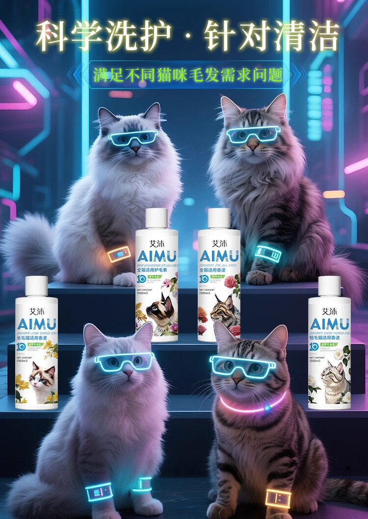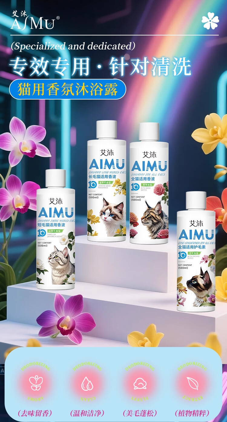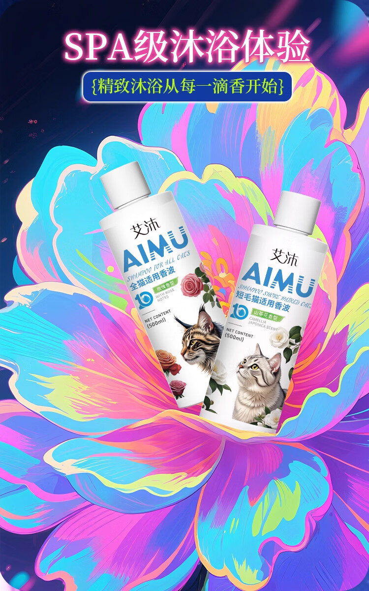 雪貂留香艾沐系列宠物狗狗猫咪沐浴露清洁洗护除臭抑菌宠物用品护毛素洗发 全猫通用香波+护毛素【洗护套装到手两瓶】