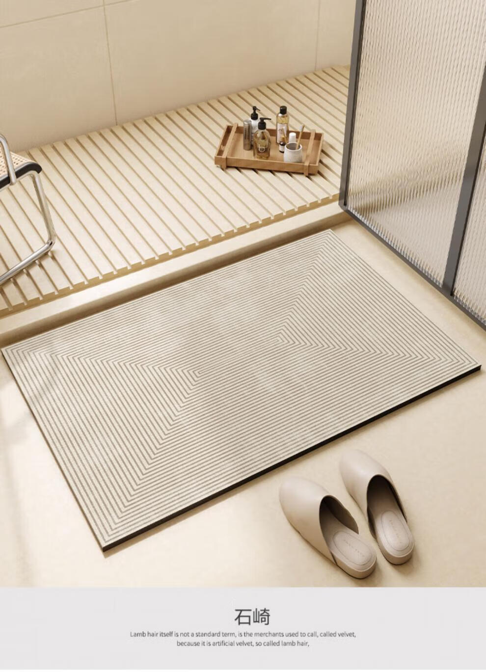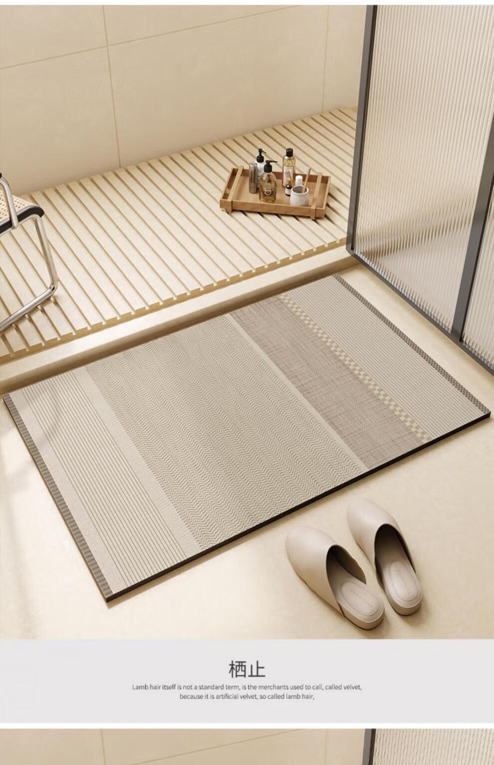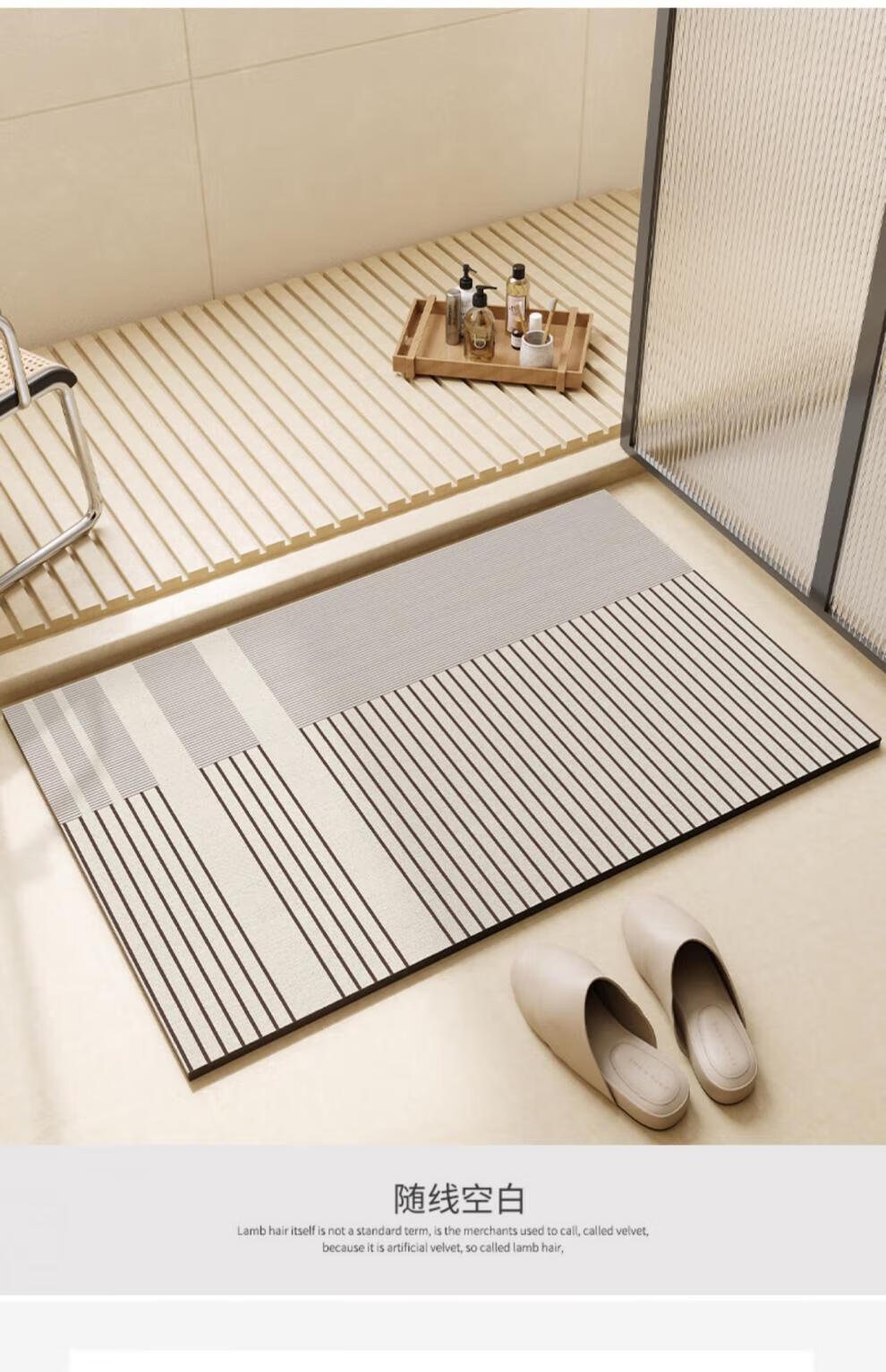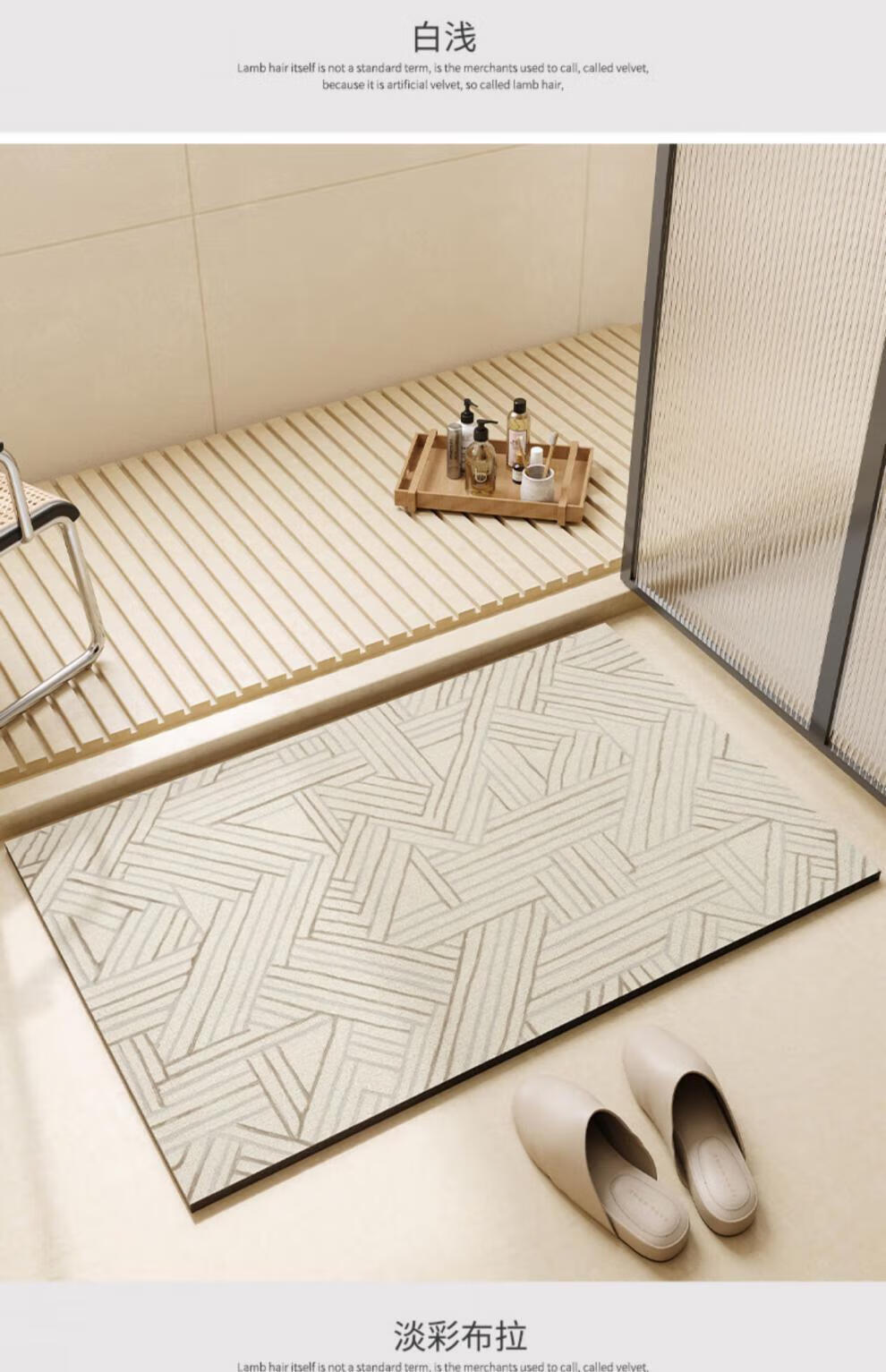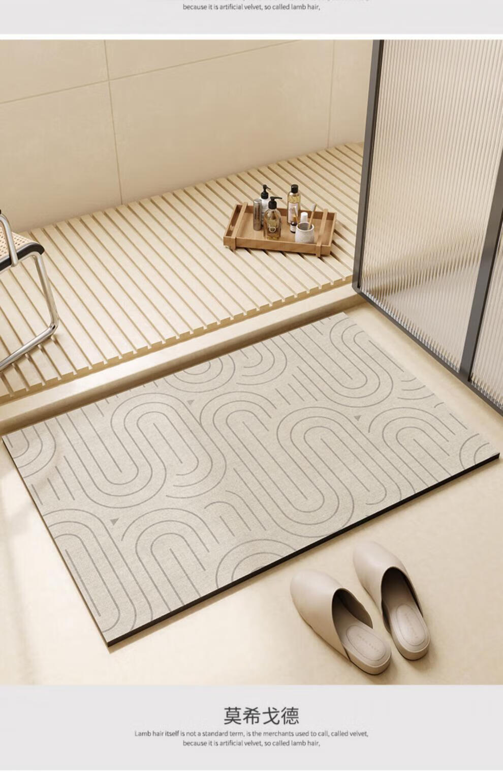 szkoy日本进口品质浴室地垫卫生间硅藻泥吸水垫子洗手间厕所门口 亚麻风尚-莲子白硅藻泥软垫 40*60cm加厚4.0mm丨环保无甲醛