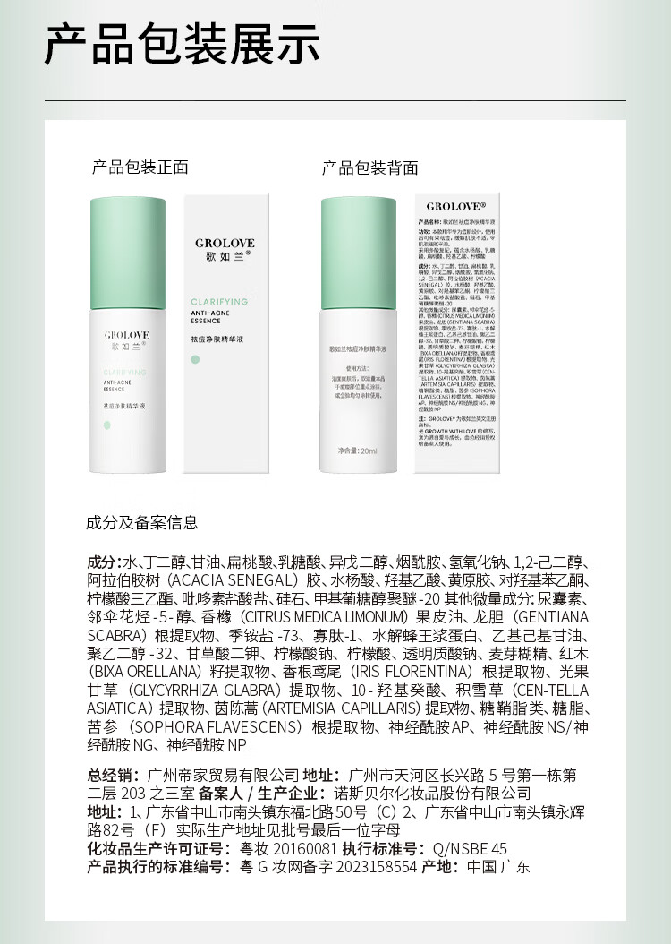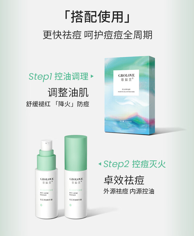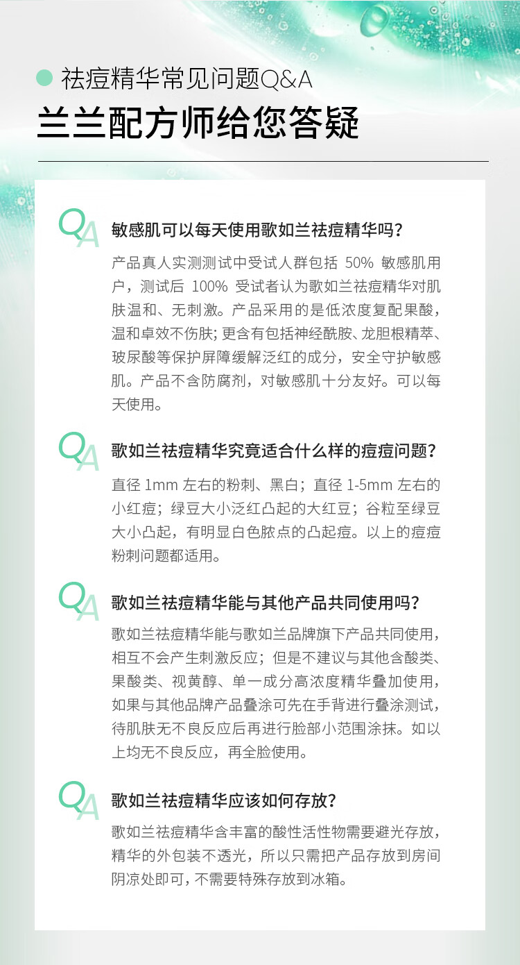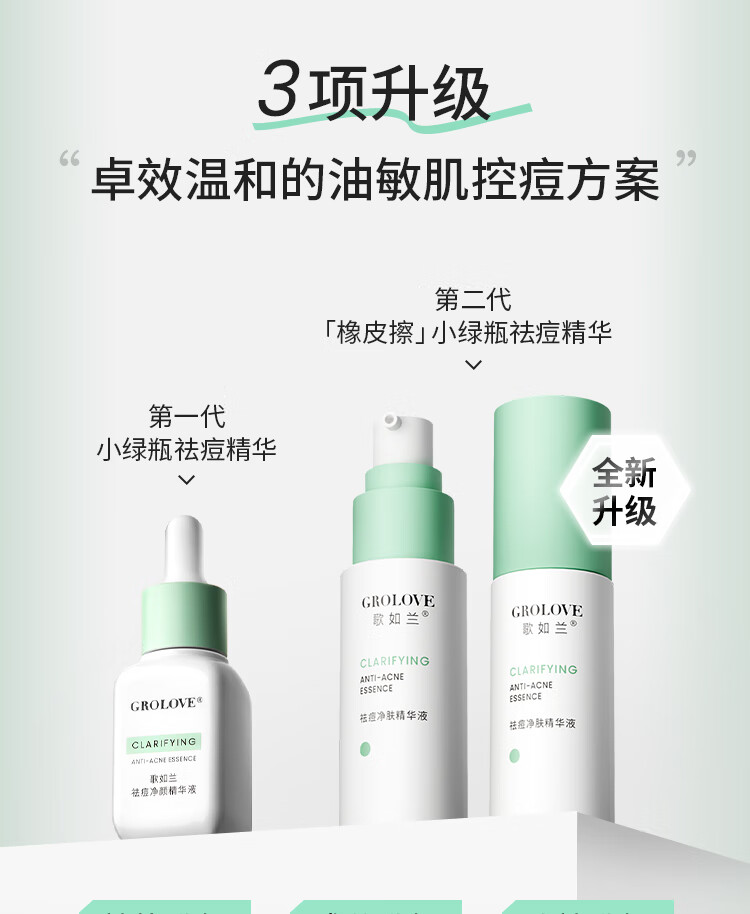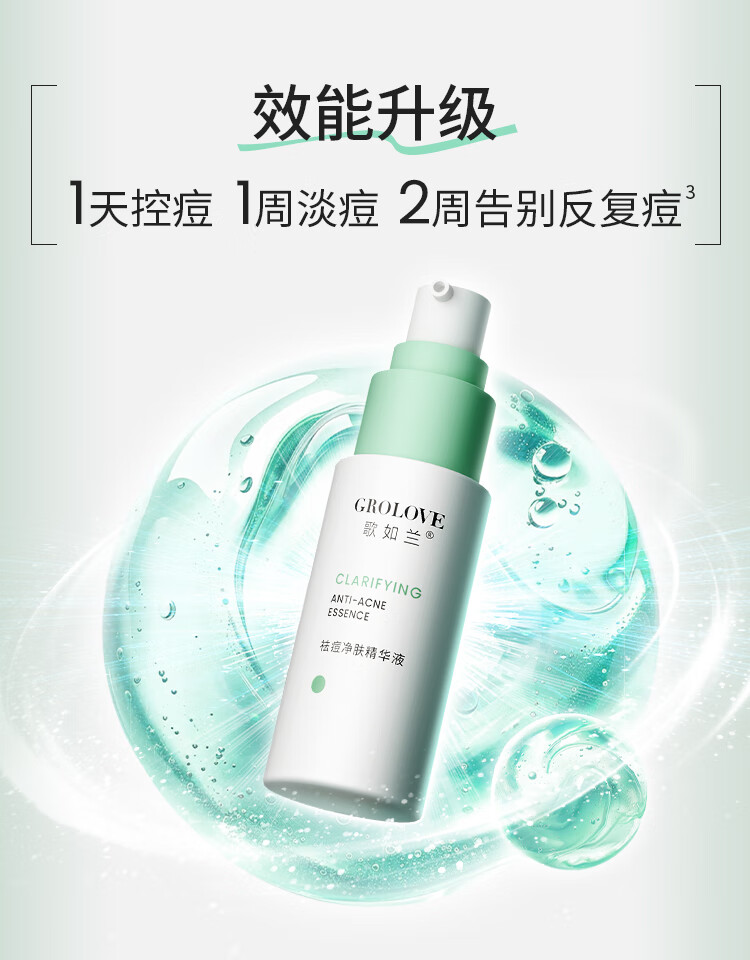 歌如兰祛痘精华液女祛痘淡化痘印精华复合酸祛痘护肤品祛痘印敏感肌可用 1瓶 送3片蛋白面膜【首页加入会员领券】