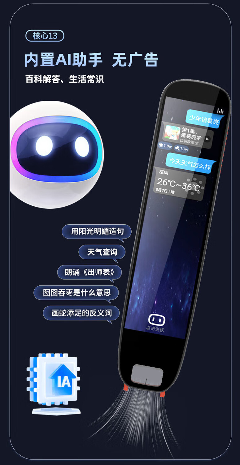 ZXJE科大讯飞技术全新点读笔离线不限书籍扫读词典笔小初高通用全科搜题学习机讯飞语音翻译笔 黛黑AI晋升版4G+拍照答疑 512GB 科大讯飞AI技术+离线翻译