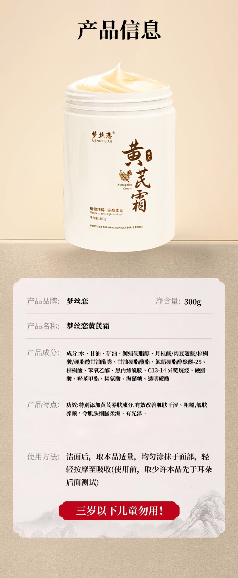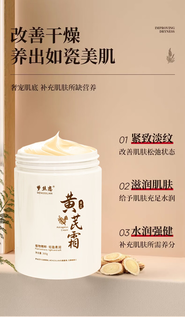 梦丝恋大瓶装300g黄芪霜提亮嫩白保湿改善肌肤滋润控油面霜秋冬植萃现货 八瓶装【全家可用】