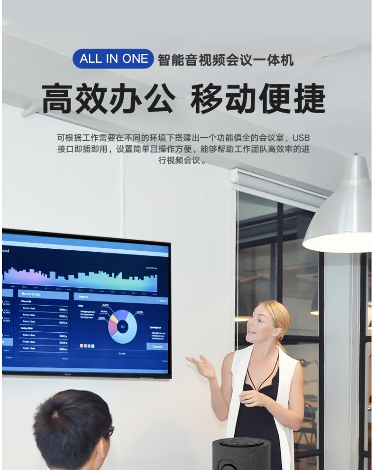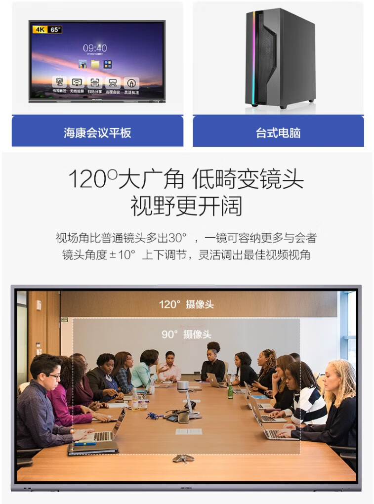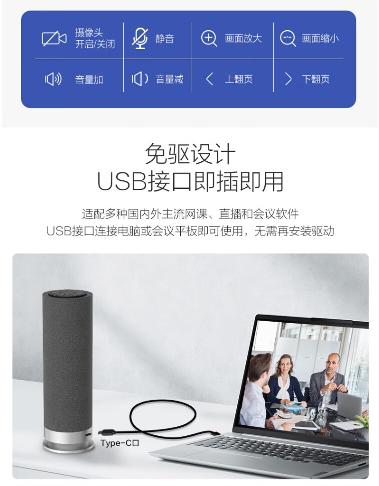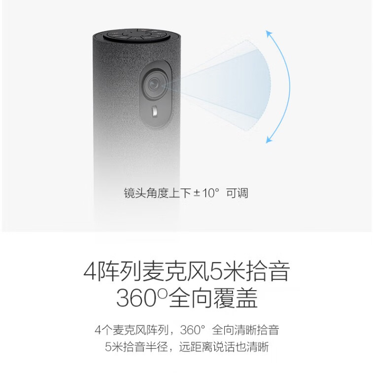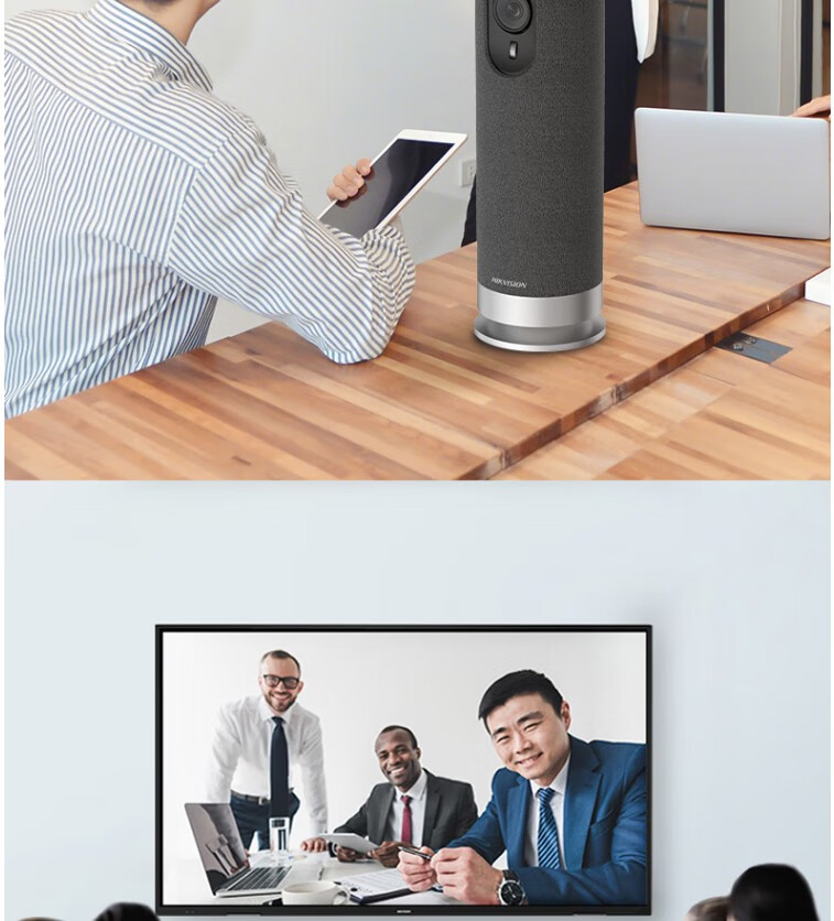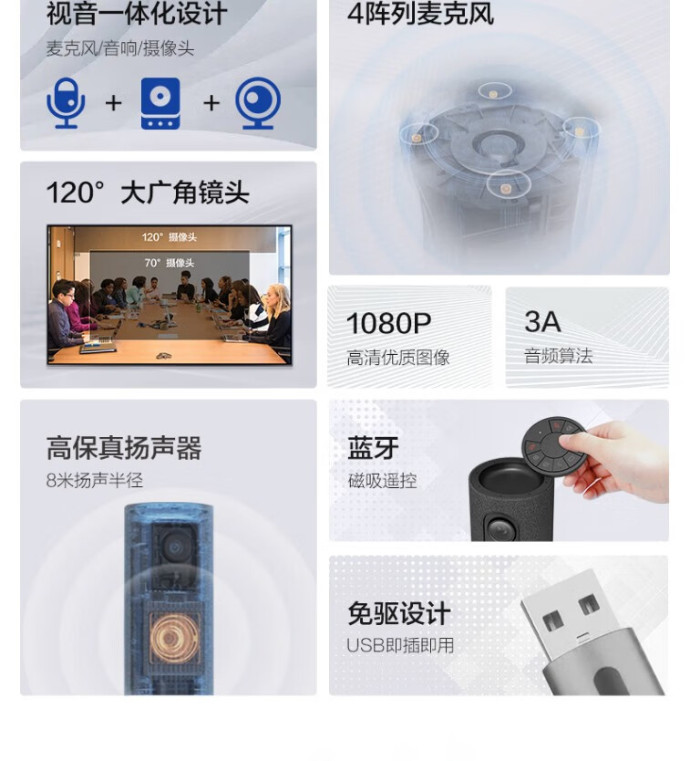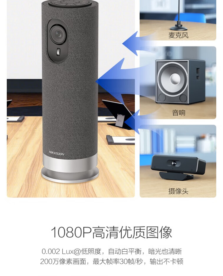 海康威视(HIKVISION)视频会议摄像头USB免驱 内置无线麦克风扬声器电脑网络直播360度高清全景鱼眼语音视频会议一体机 1080P 【超大广角+扬声一体】DS-V122 官方标配