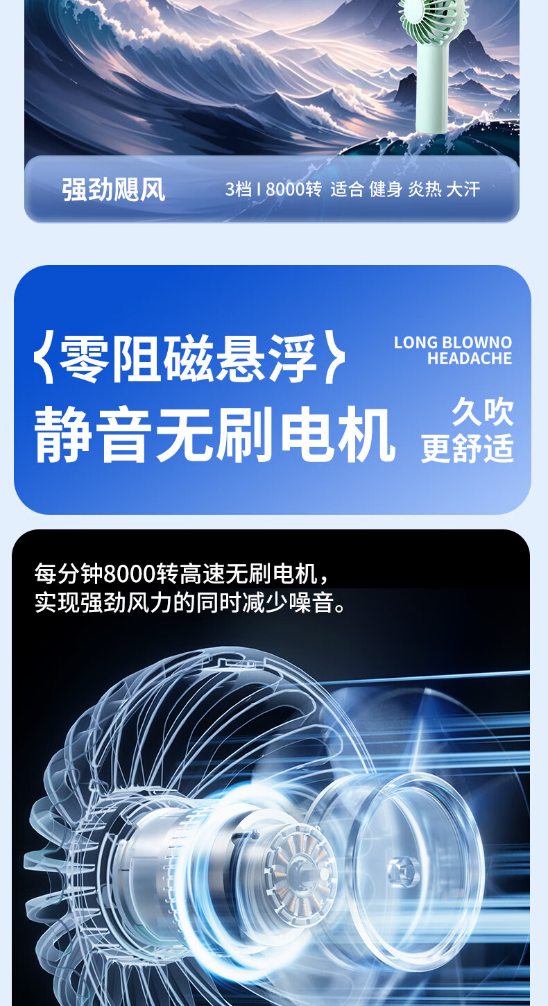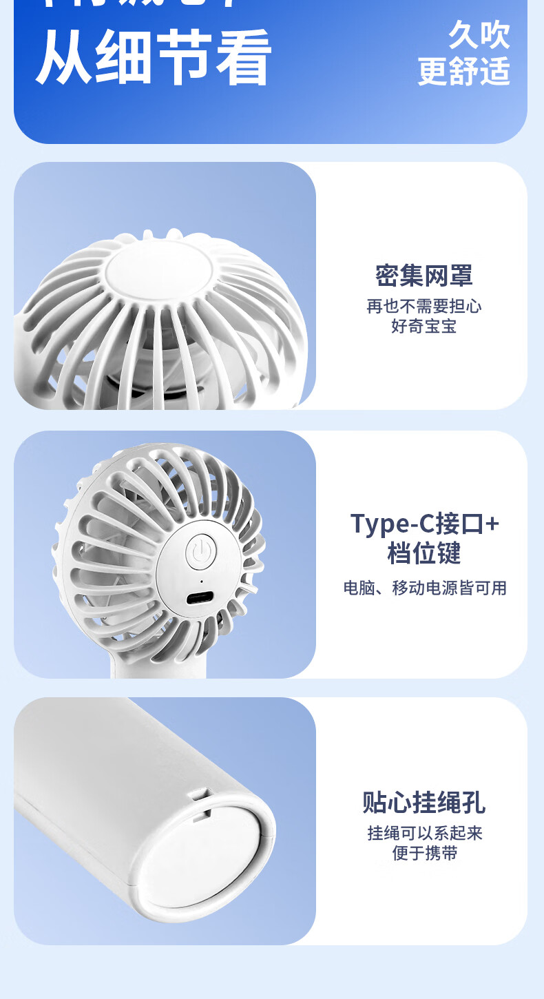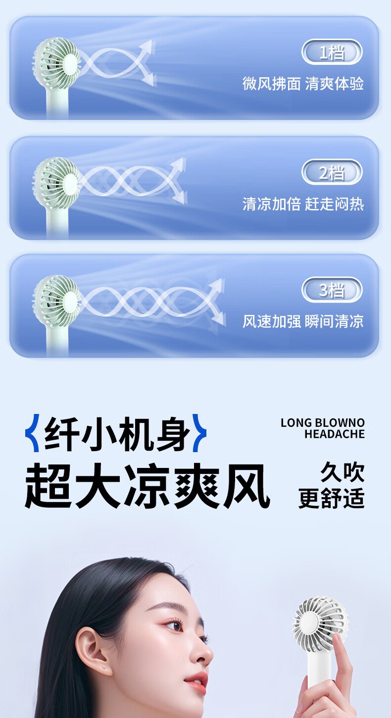 顾胜 迷你小风扇桌面 手持电风扇usb充电风扇持久续航随身便携小巧适用户外宿舍学生婴儿降温神器 升级款【清新绿】三档风力丨小巧便携丨手持桌面通用