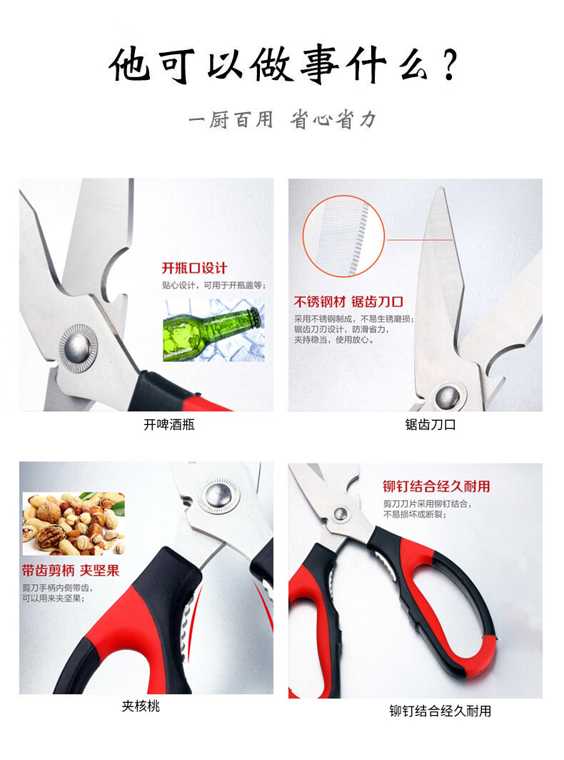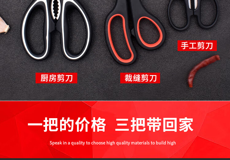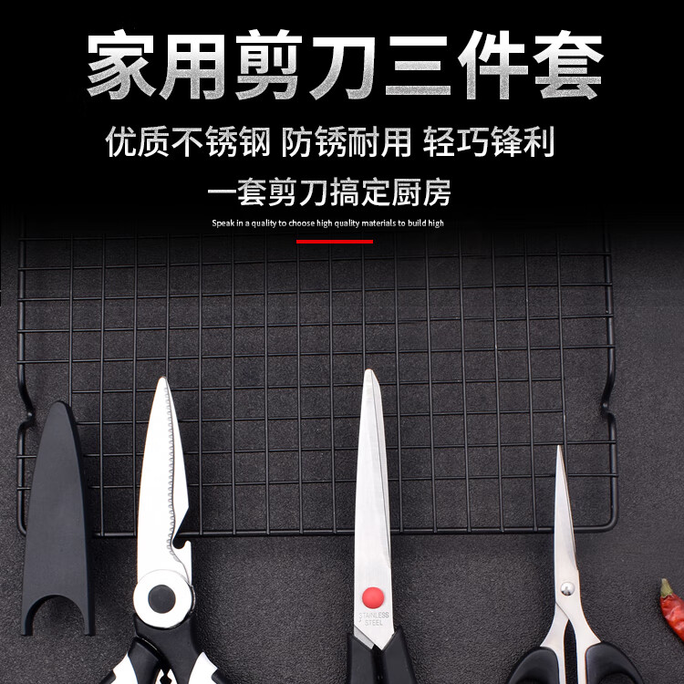 失传者厨房剪刀家用多功能不锈钢强力鸡骨剪三件套手工剪剪骨厨用剪组合 弯刀剪3件套