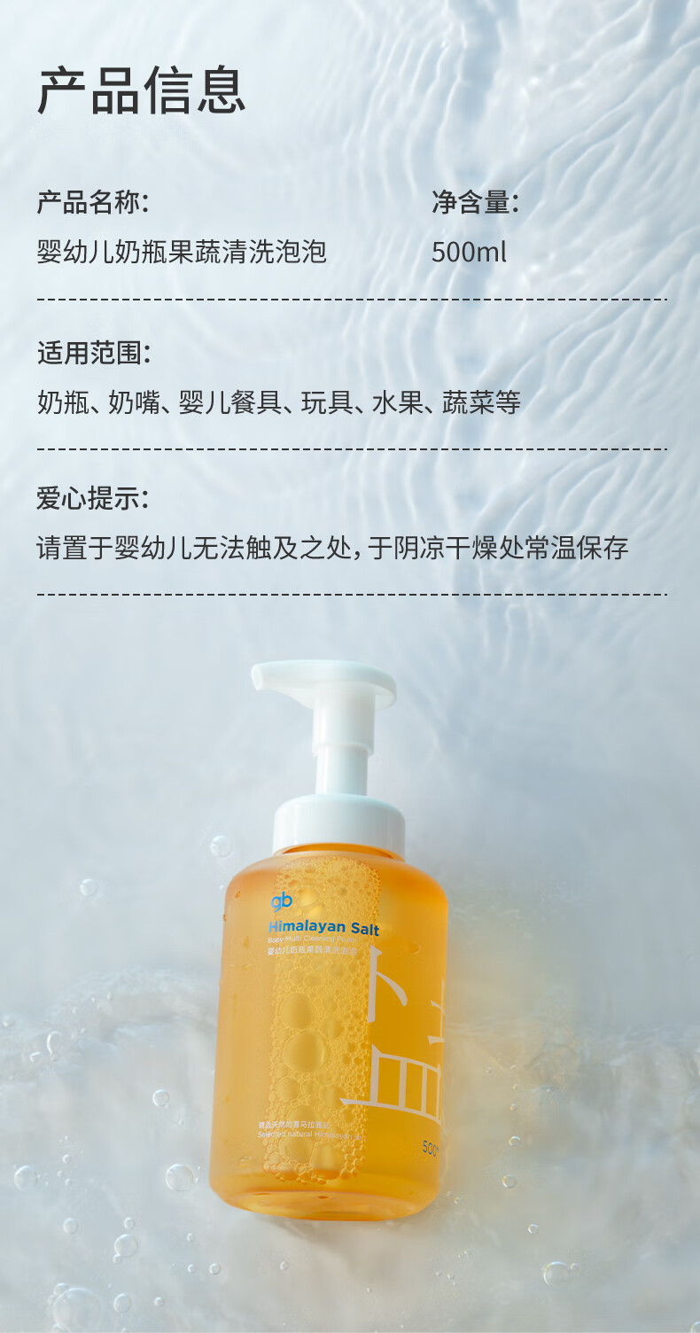 好孩子婴儿奶瓶泡泡清洁剂宝宝果蔬餐具洗剂洗洁剂奶瓶清洗液 500ml*1瓶