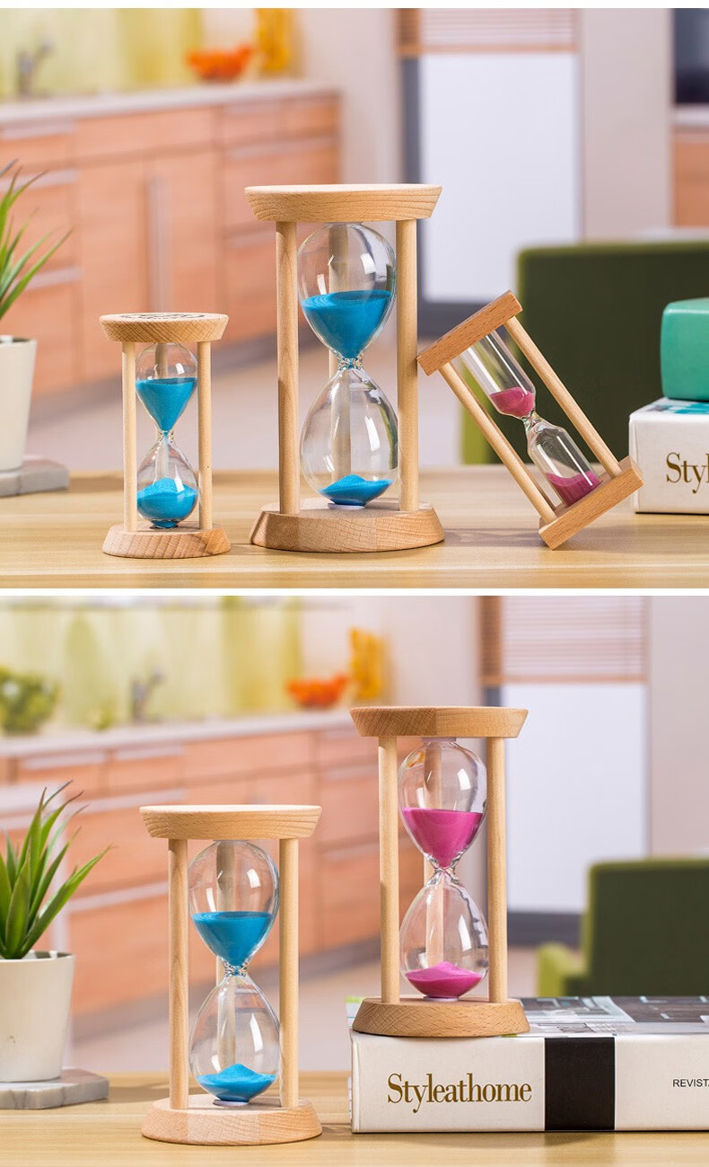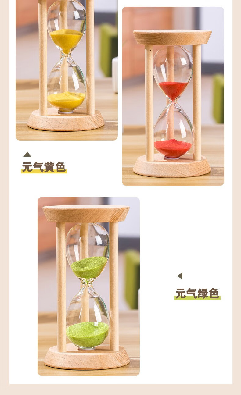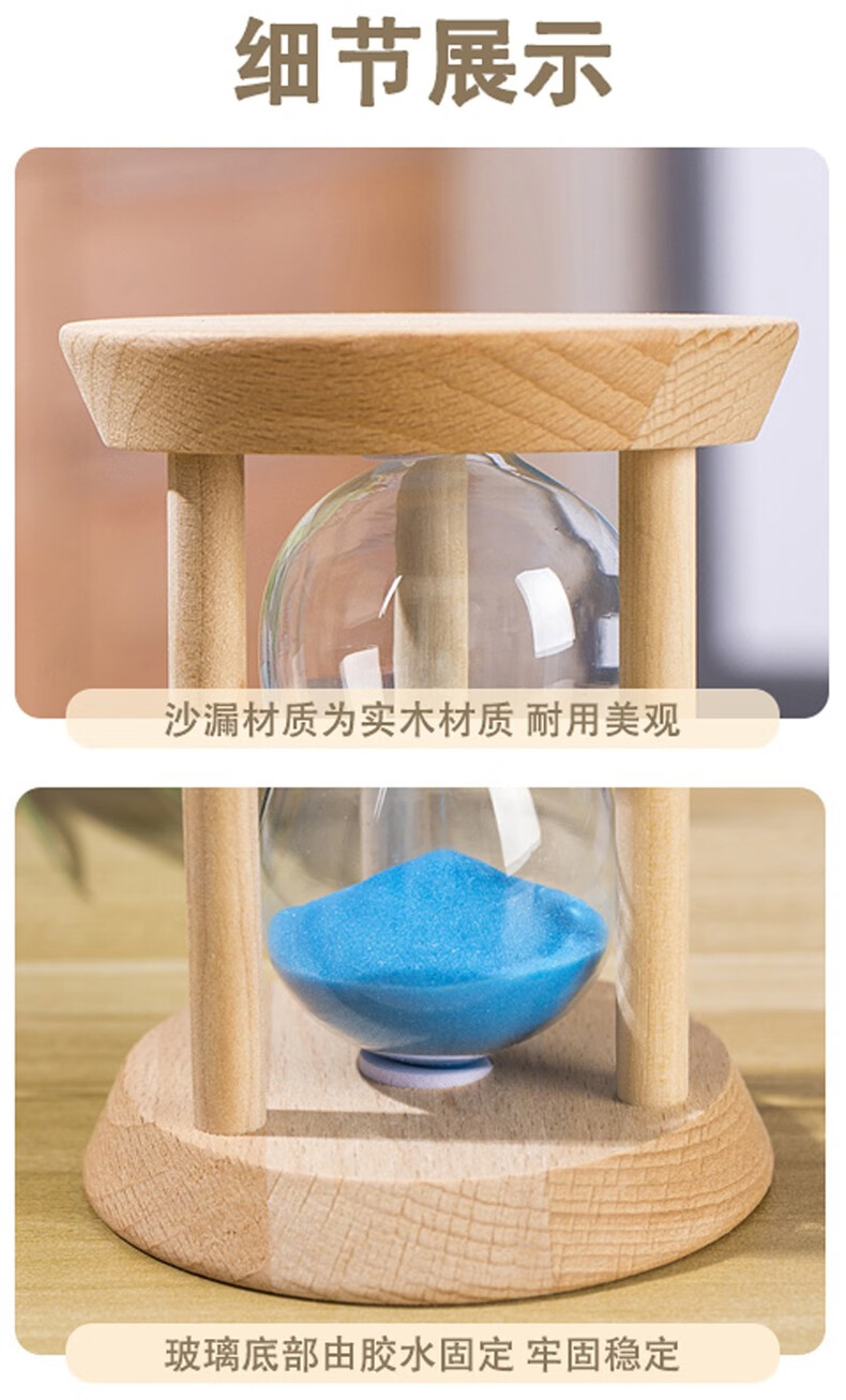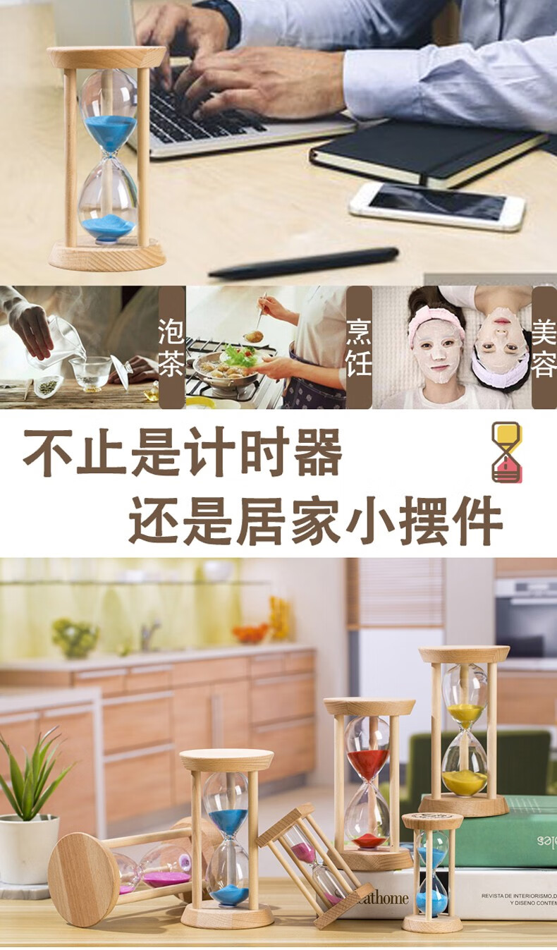 万梭 沙漏计时器学生3\/5\/15\/30分钟时间防摔迷你刷牙定时器木质 【大号】【圆形15分钟】绿沙