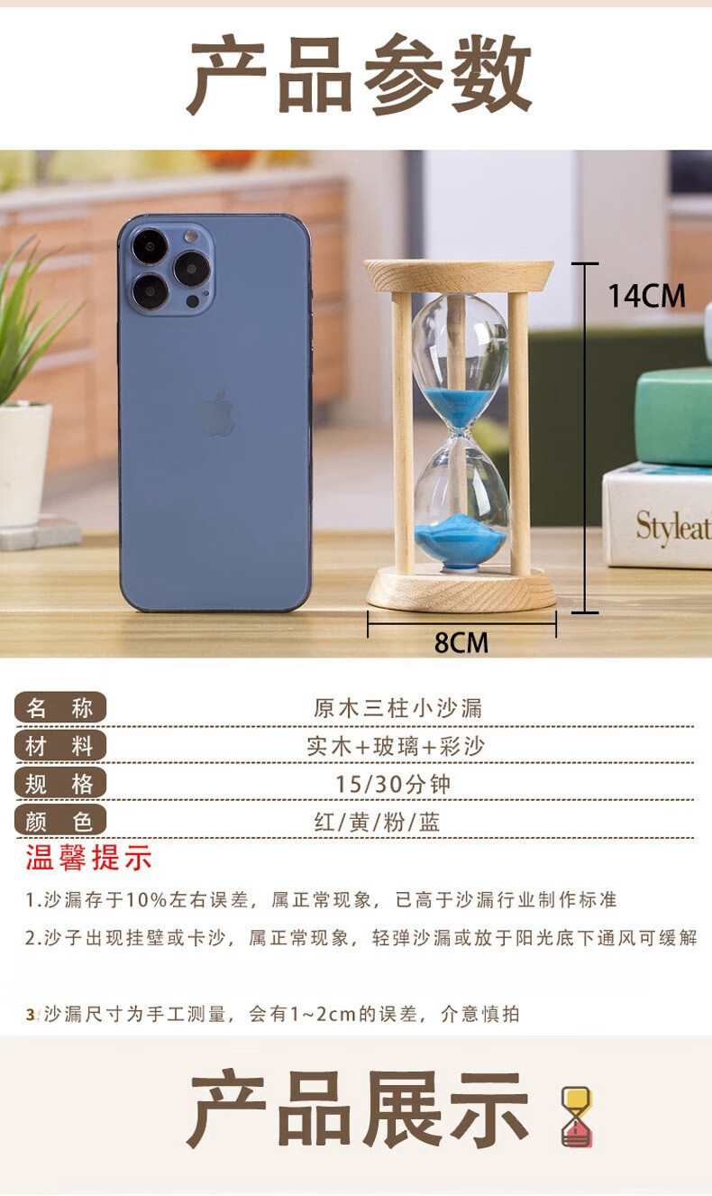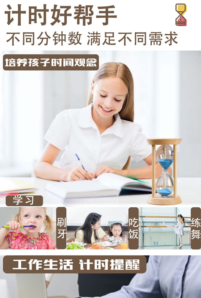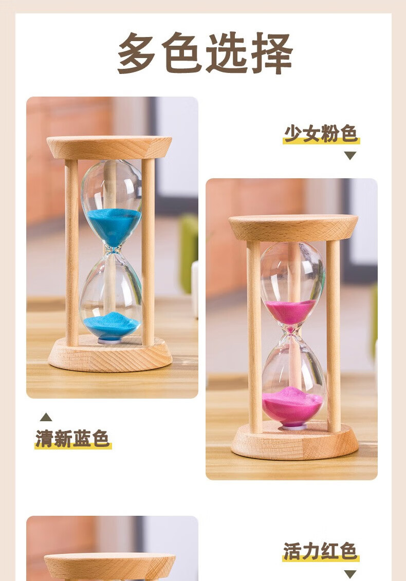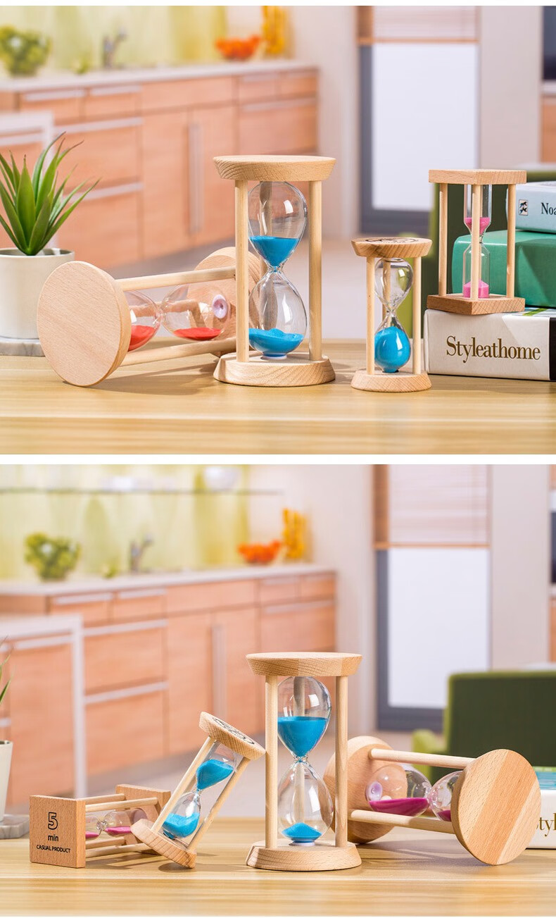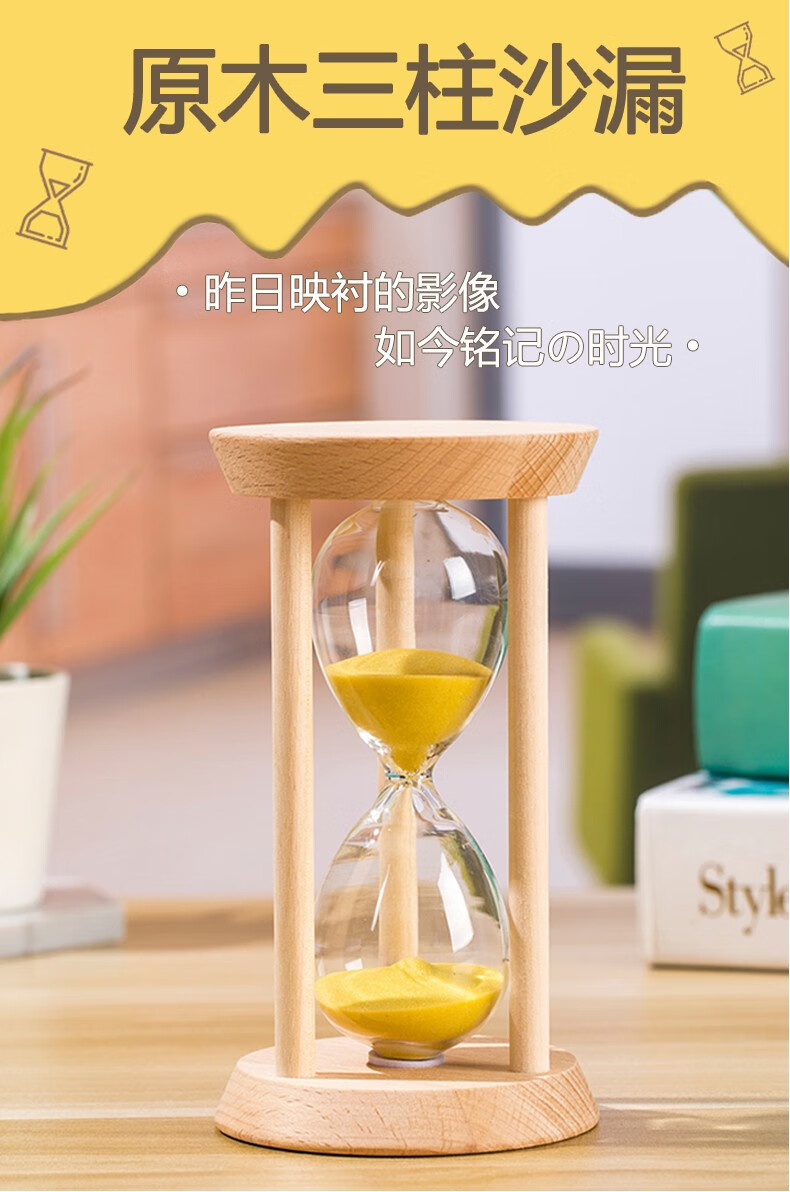 万梭 沙漏计时器学生3\/5\/15\/30分钟时间防摔迷你刷牙定时器木质 【大号】【圆形15分钟】绿沙