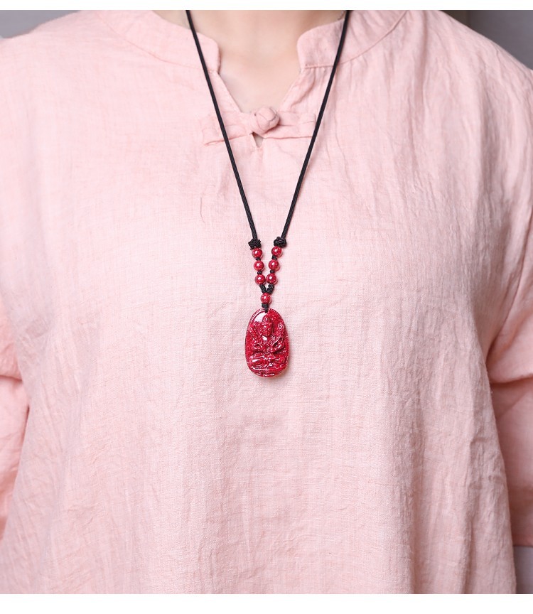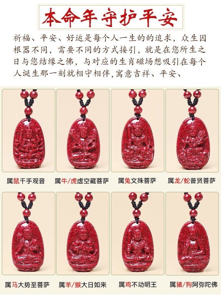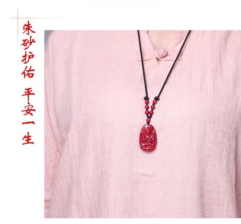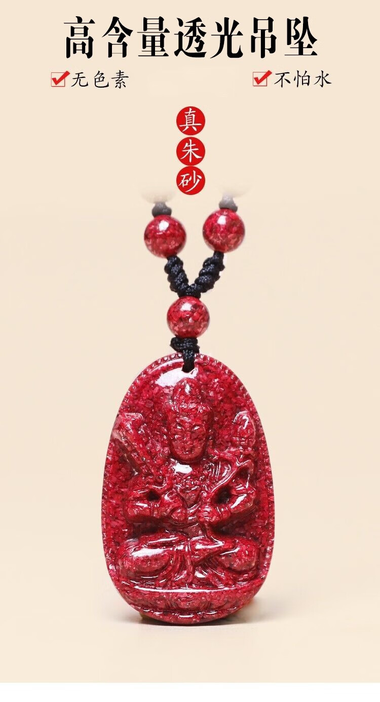 初缘朱砂本命佛吊坠男女款原矿透光晶体颗粒项链马年送男女友生日礼物 生肖狗猪-阿弥陀佛菩萨