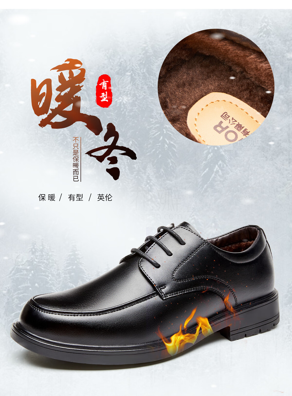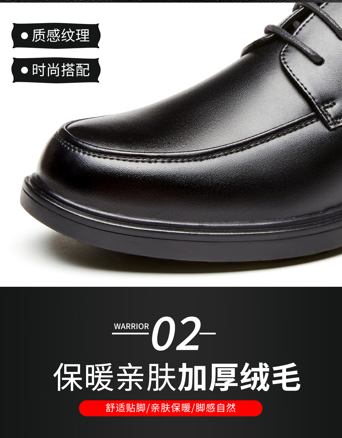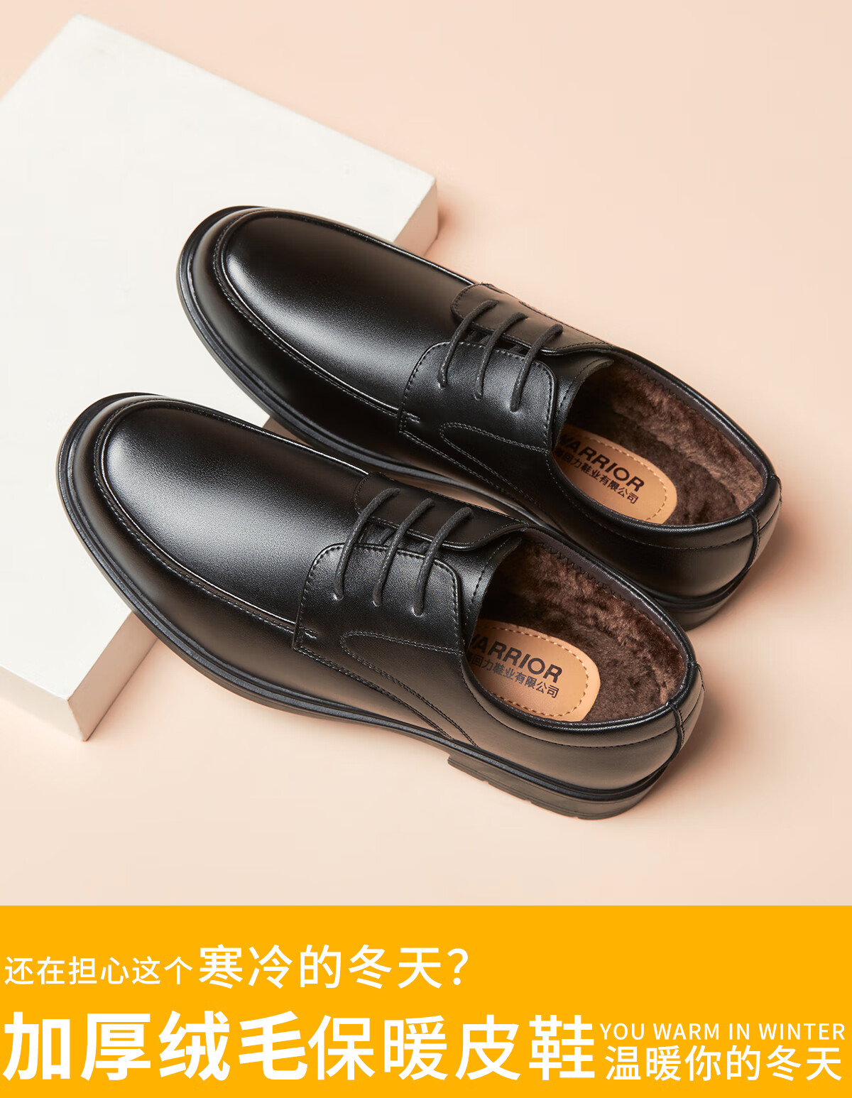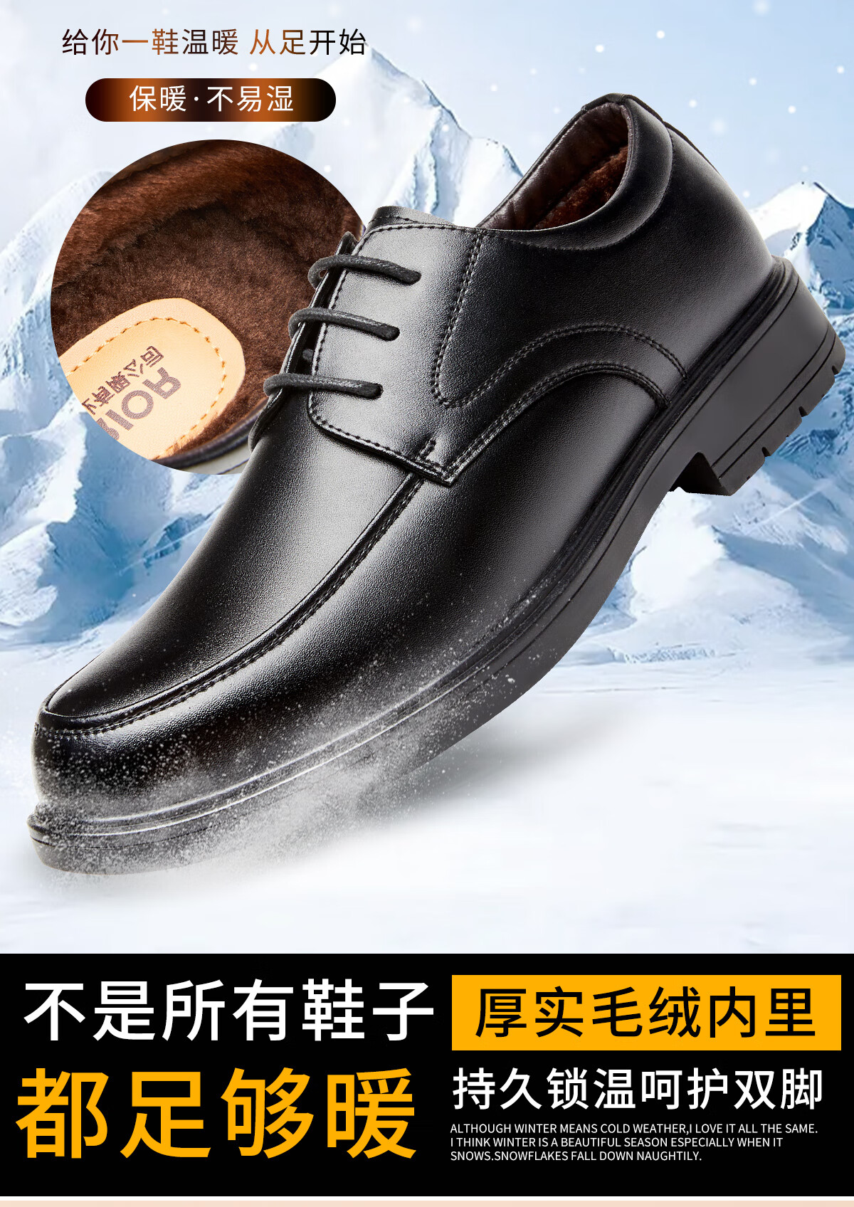 回力皮鞋加绒保暖真皮2025新款商务正装男鞋休闲结婚软底舒适新郎鞋子 黑色【加绒款】 44