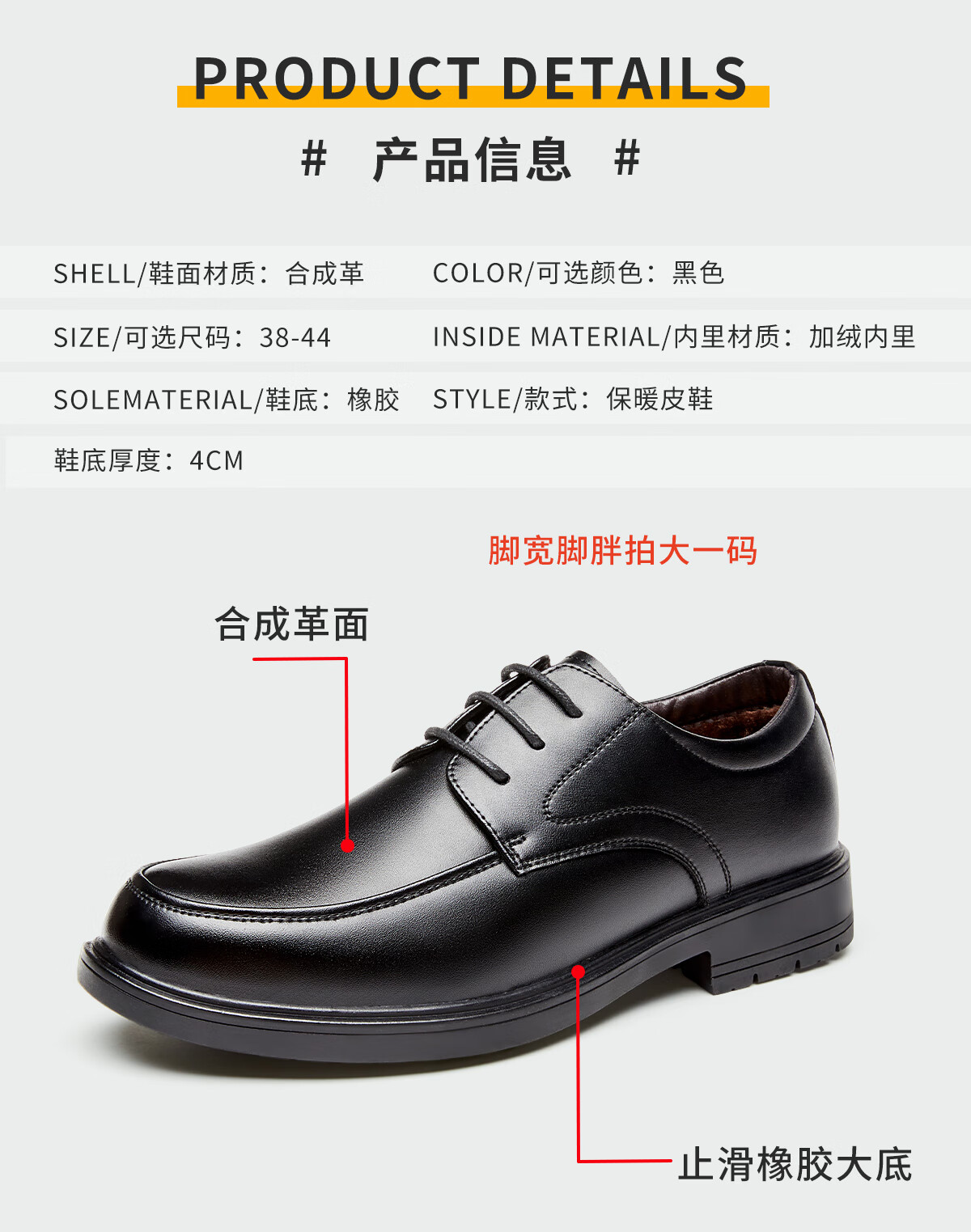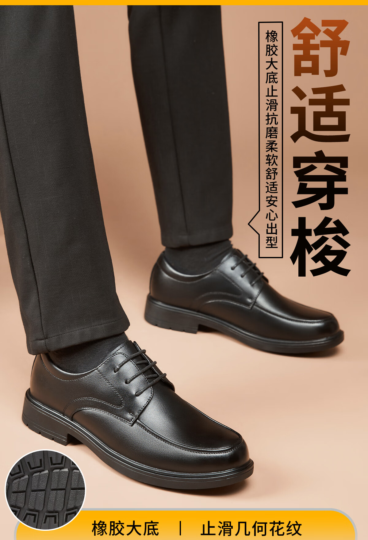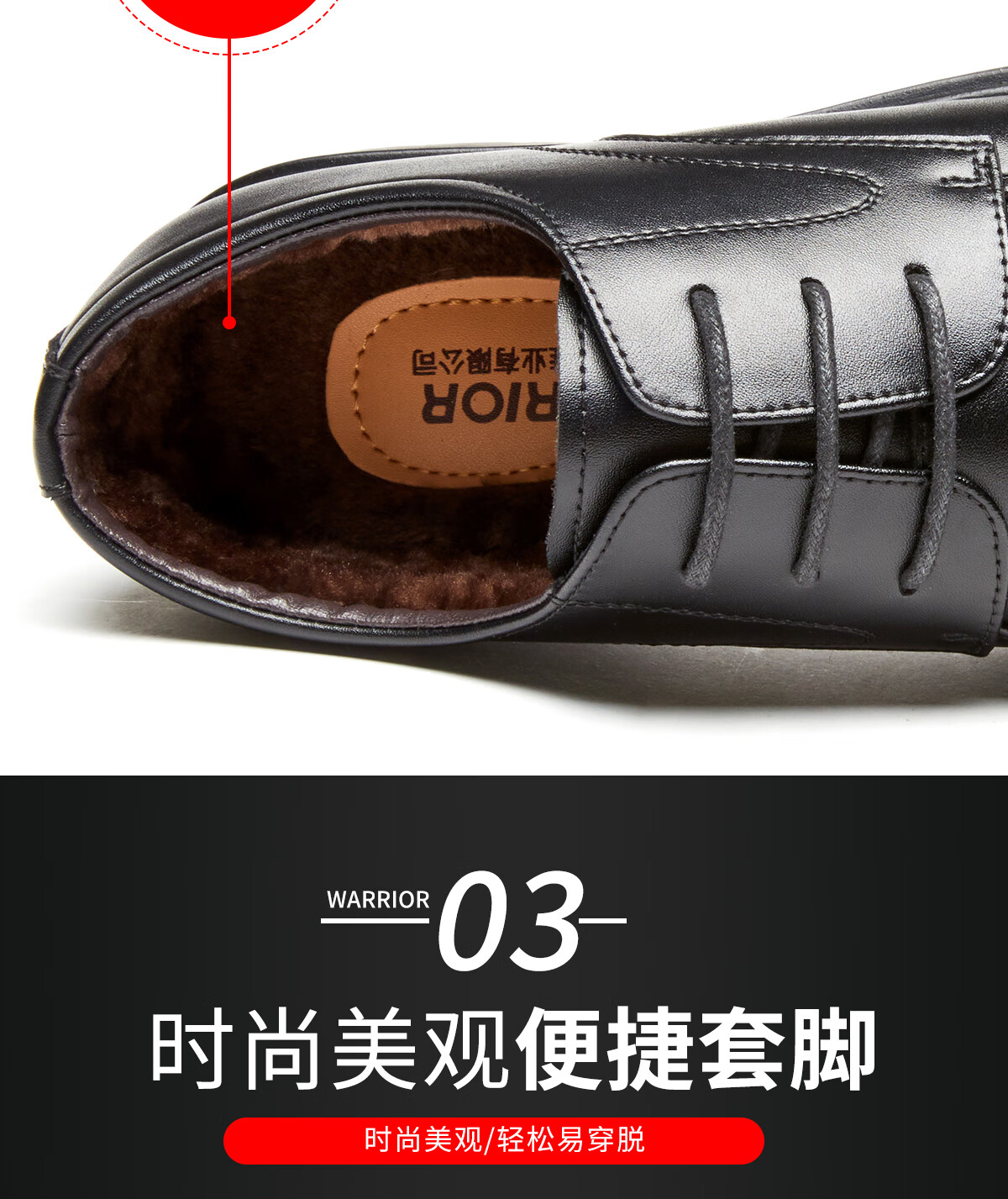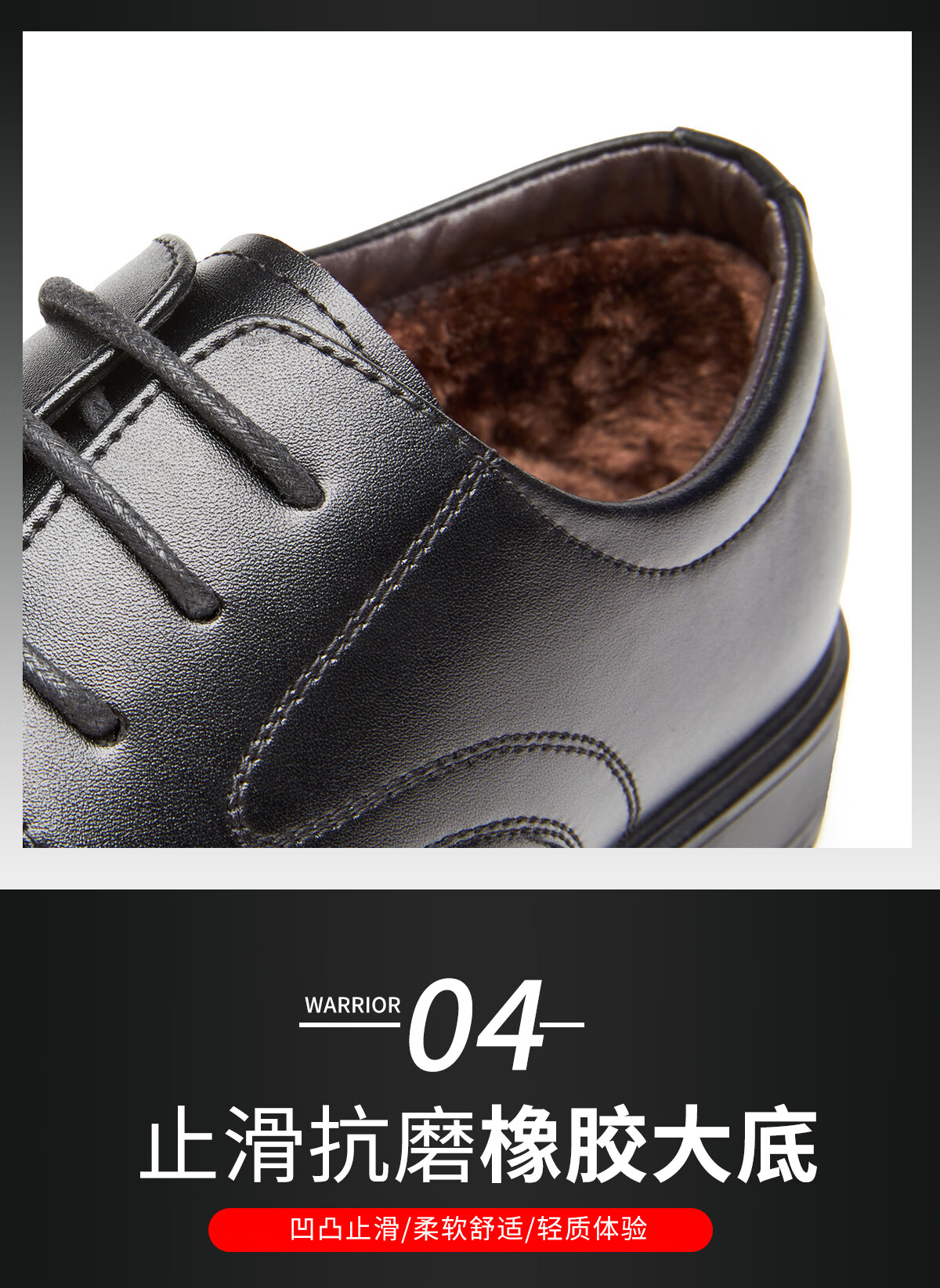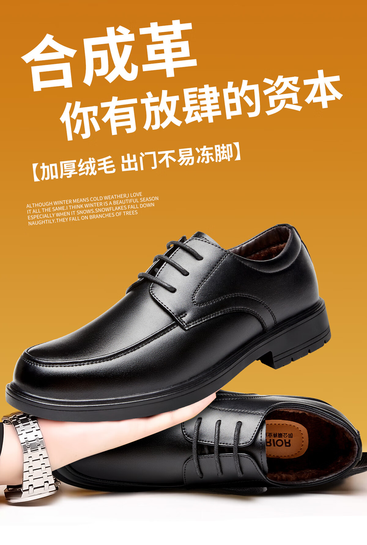 回力皮鞋加绒保暖真皮2025新款商务正装男鞋休闲结婚软底舒适新郎鞋子 黑色【加绒款】 44