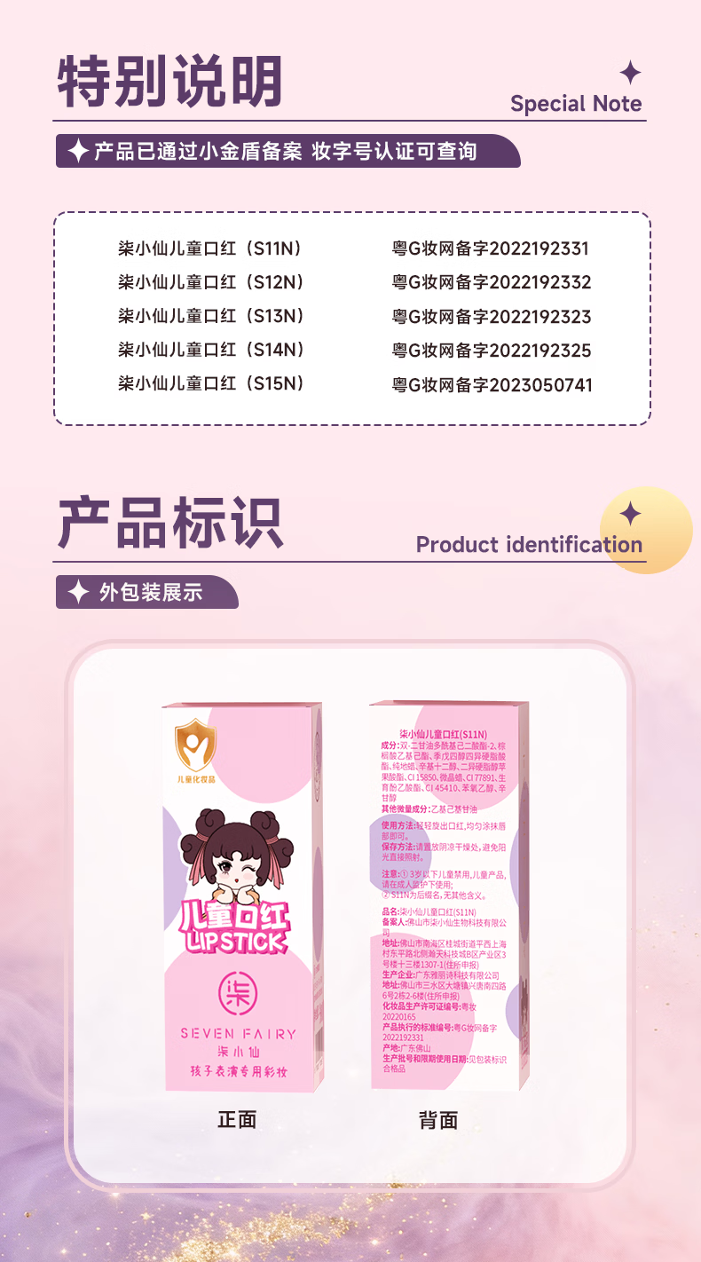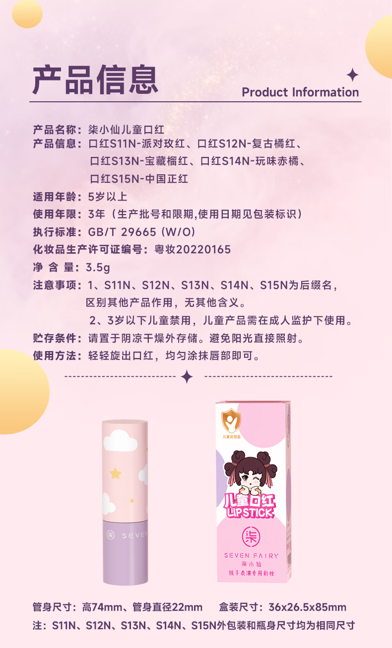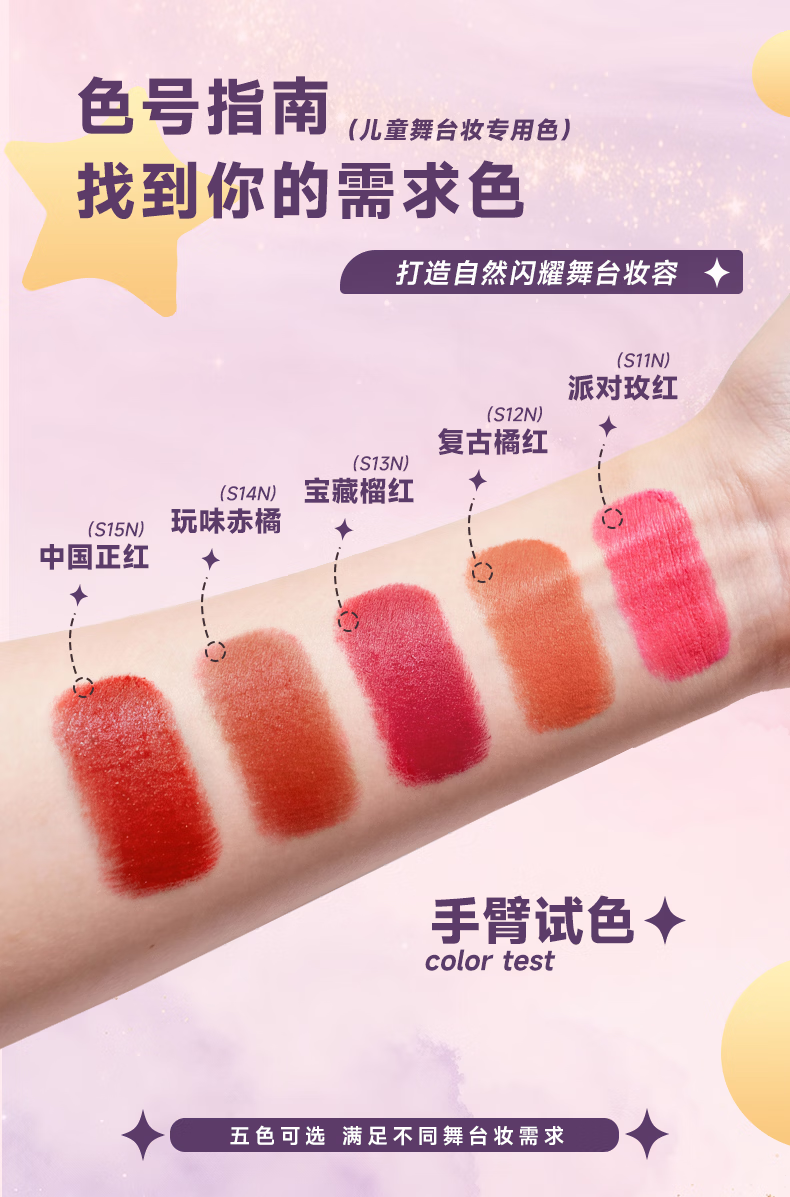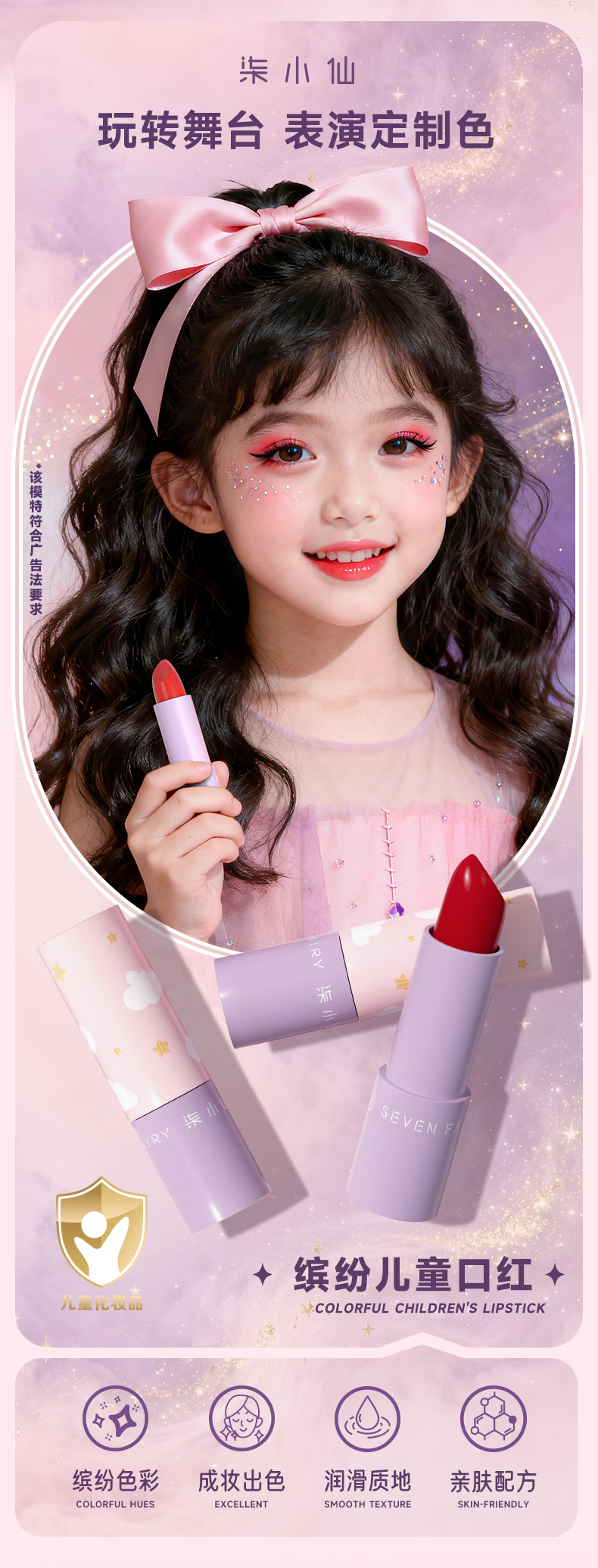 柒小仙 儿童口红 唇膏彩妆青少年学生表演专用化妆品元旦春节期末表演 S15N 中国正红 全国京快配送(挑战24小时到货)