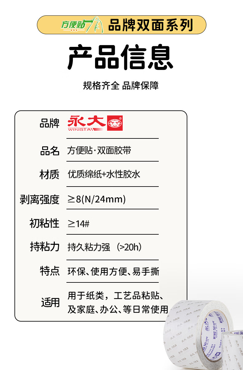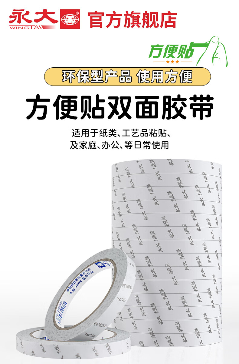永大方便贴双面胶高粘度不留痕强力双面胶手工办公用两面胶重复使用固定墙面可撕胶纸半透明胶薄款 60mm宽*18.3米长/卷【2卷】