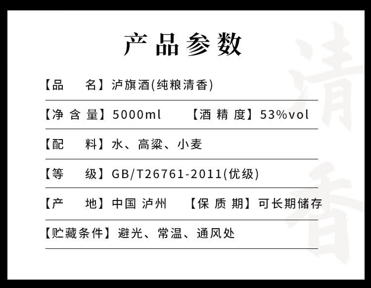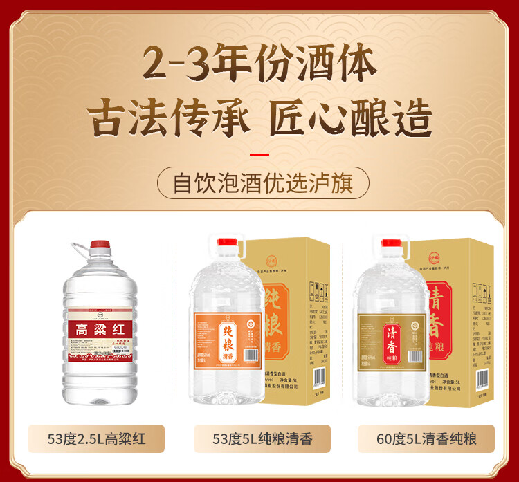 泸旗清香型红高粱酒 高度白酒 桶装散装粮食酒 泡杨梅酒 53度 5L 1桶 纯粮清香