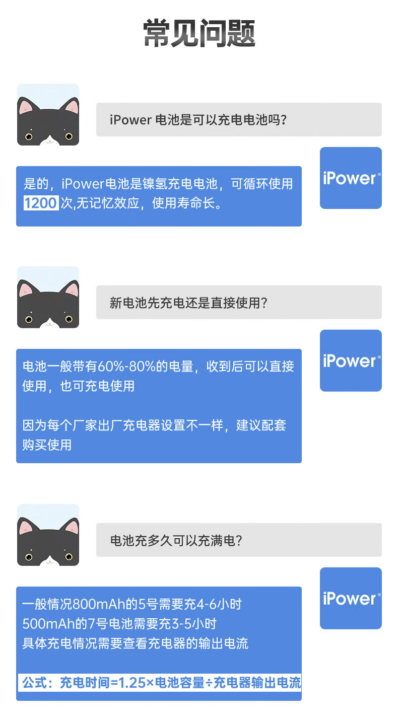 iPower充电电池5号电池7号镍氢电池2500毫安1.2V伏充电器快充折叠插座五号七号通用话筒麦克风相机玩具 4节5号+快充充电器 个