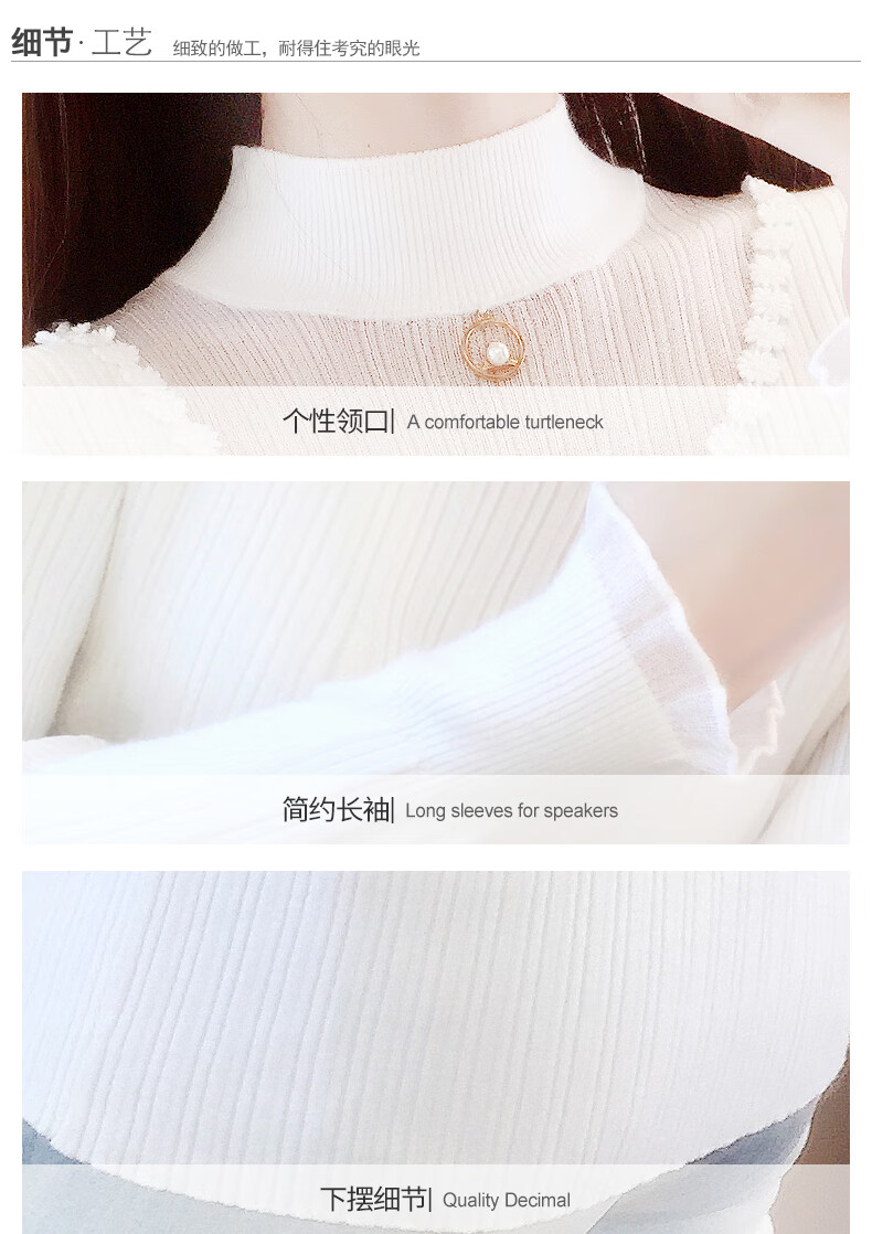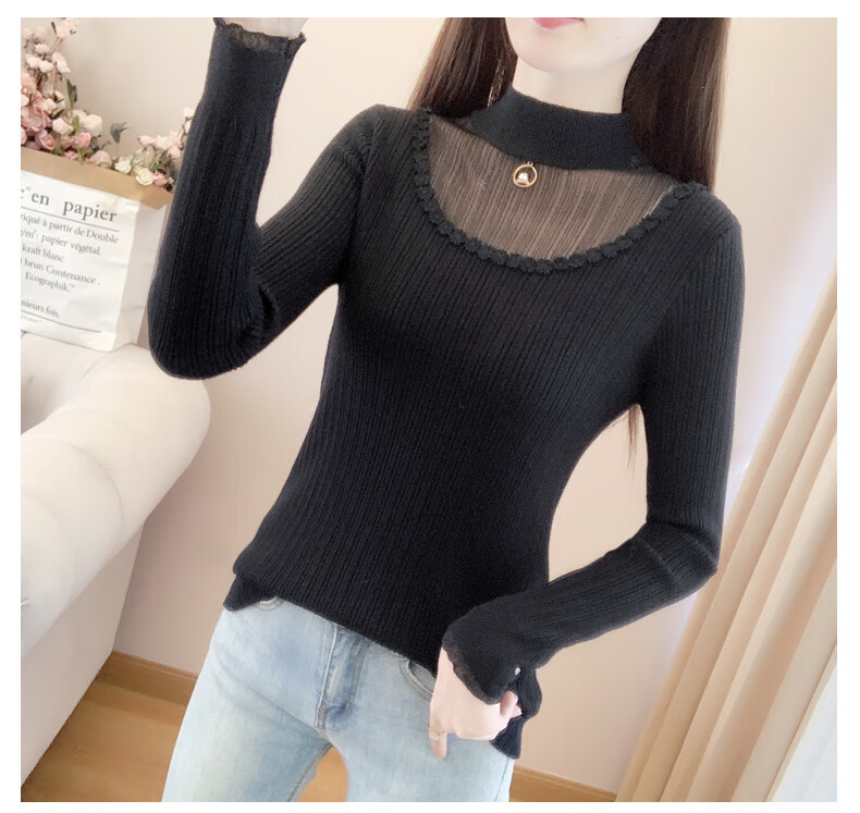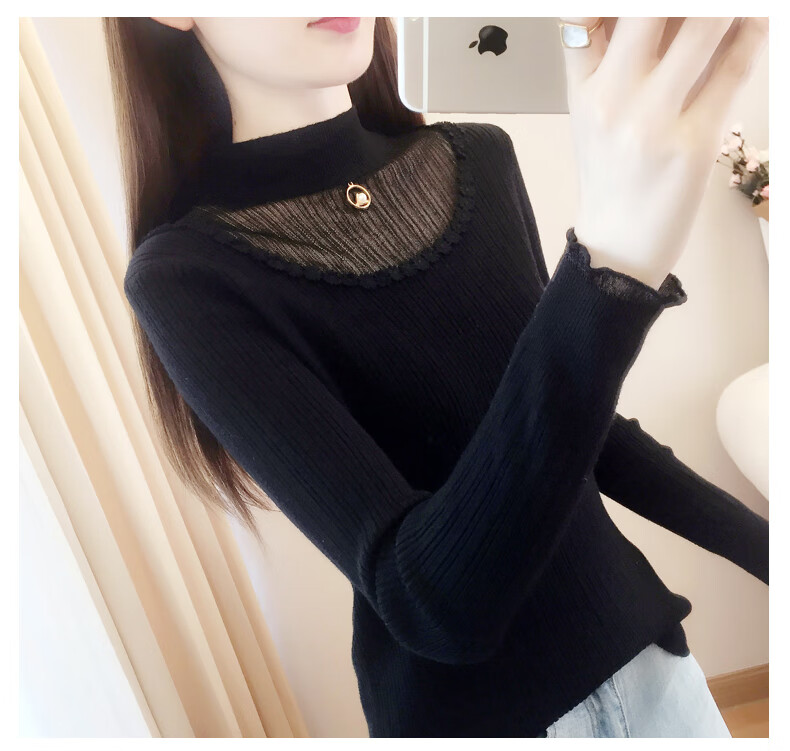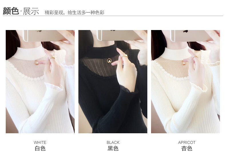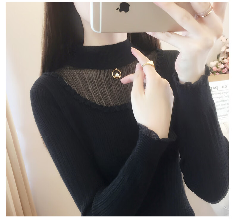 香影纯半高领镂空毛衣打底衫女内搭2025新款春秋短款长袖修身针织衫上衣 白色 L (建议105-115斤)