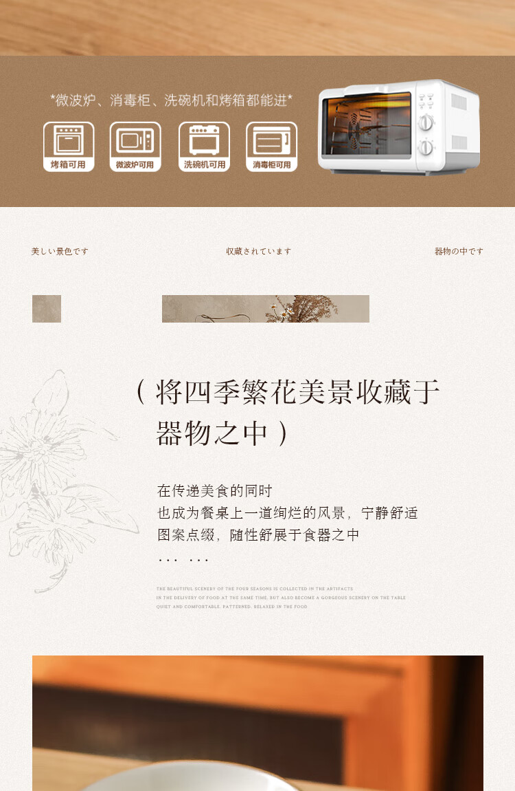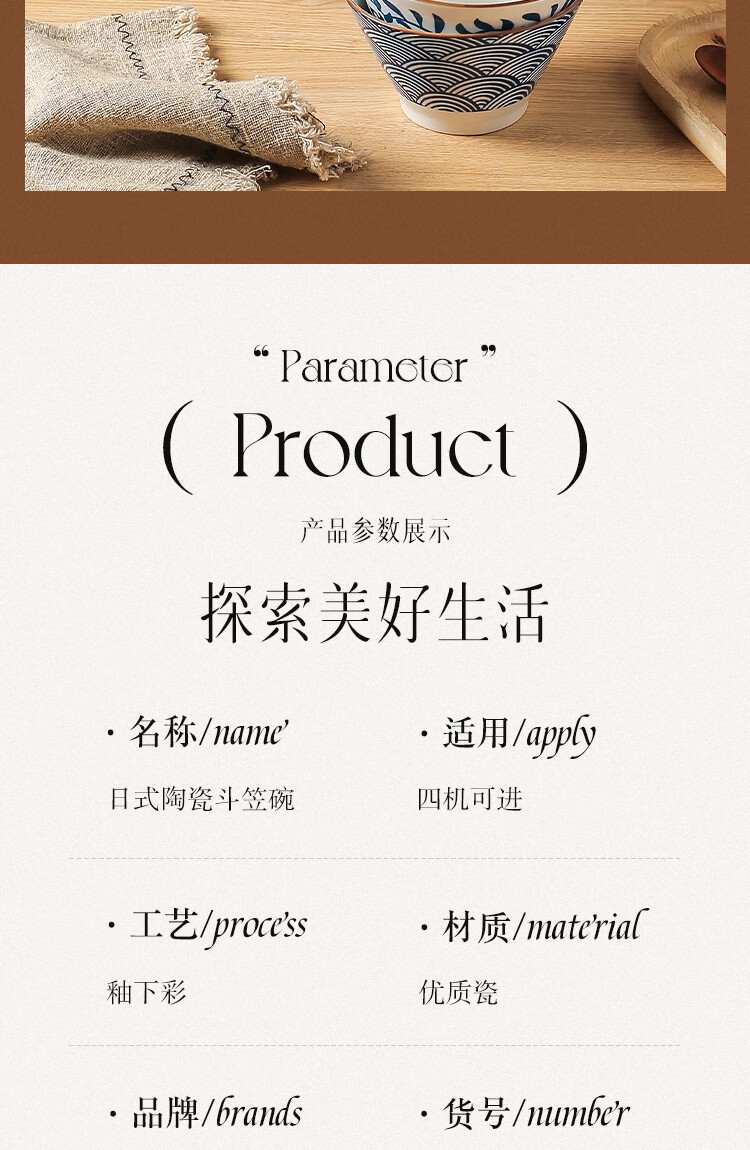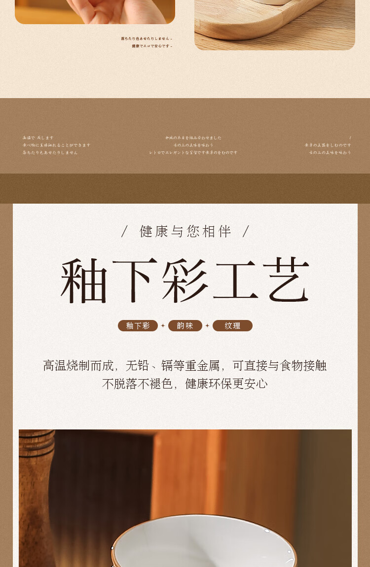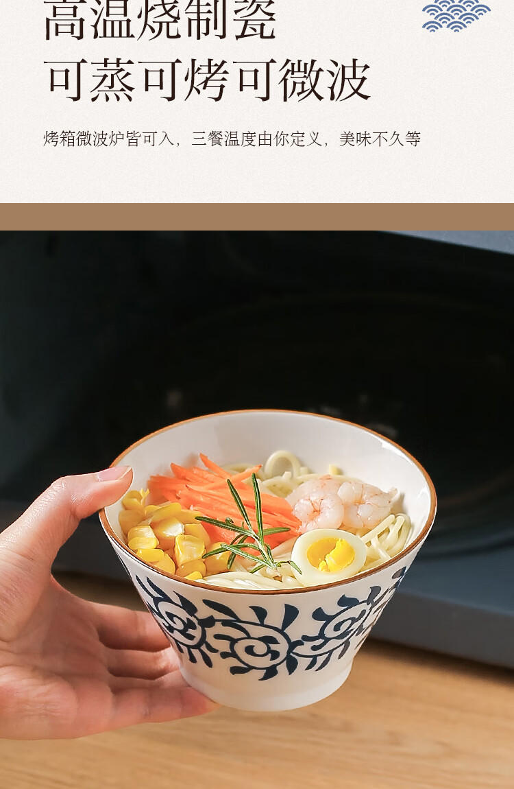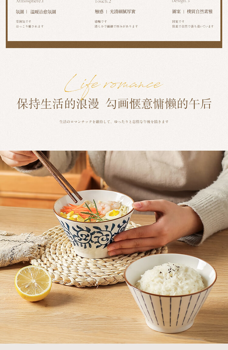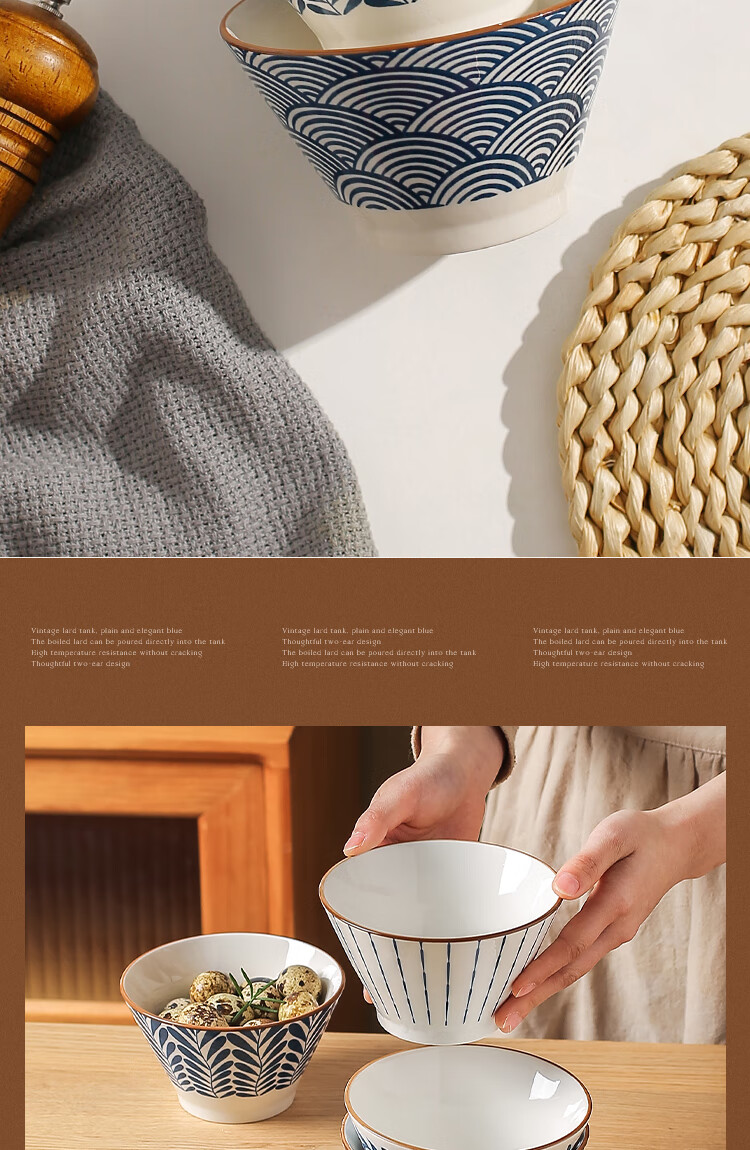几物森林复古风5英寸斗笠碗家用创意高脚釉下彩日式陶瓷餐具饭碗面碗小碗 唐草5英寸斗笠碗【混色四只装】