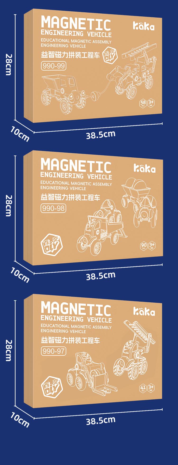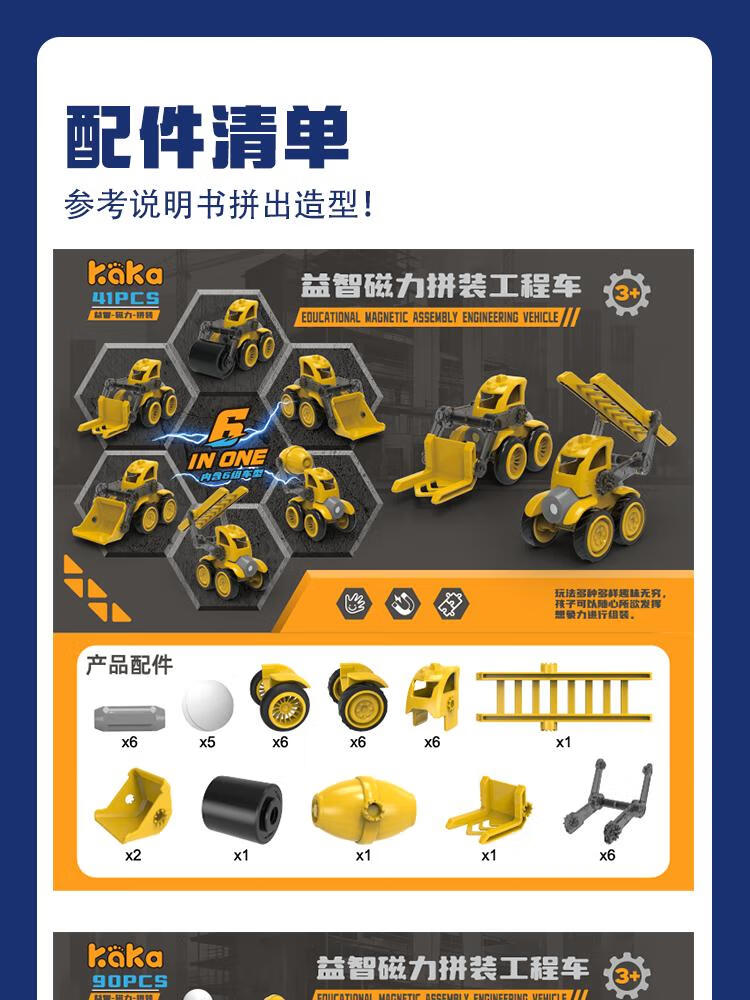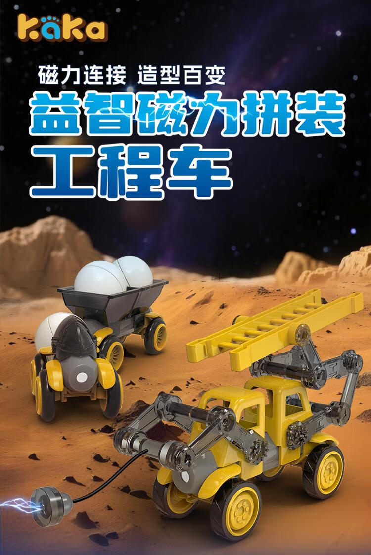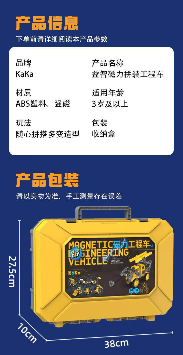 kaka咔咔百变磁力工程车儿童益智拼装玩具套装生日礼物手提礼盒 益智磁力拼装工程车41PCS标准版【礼盒】