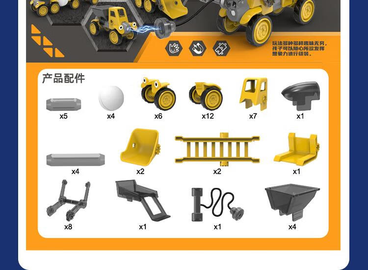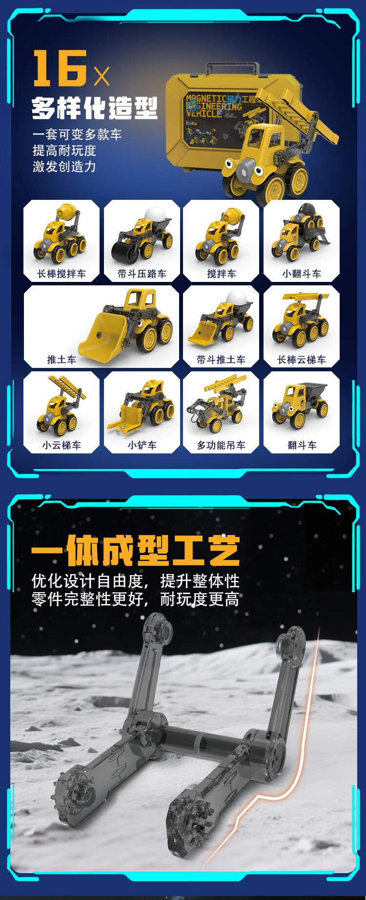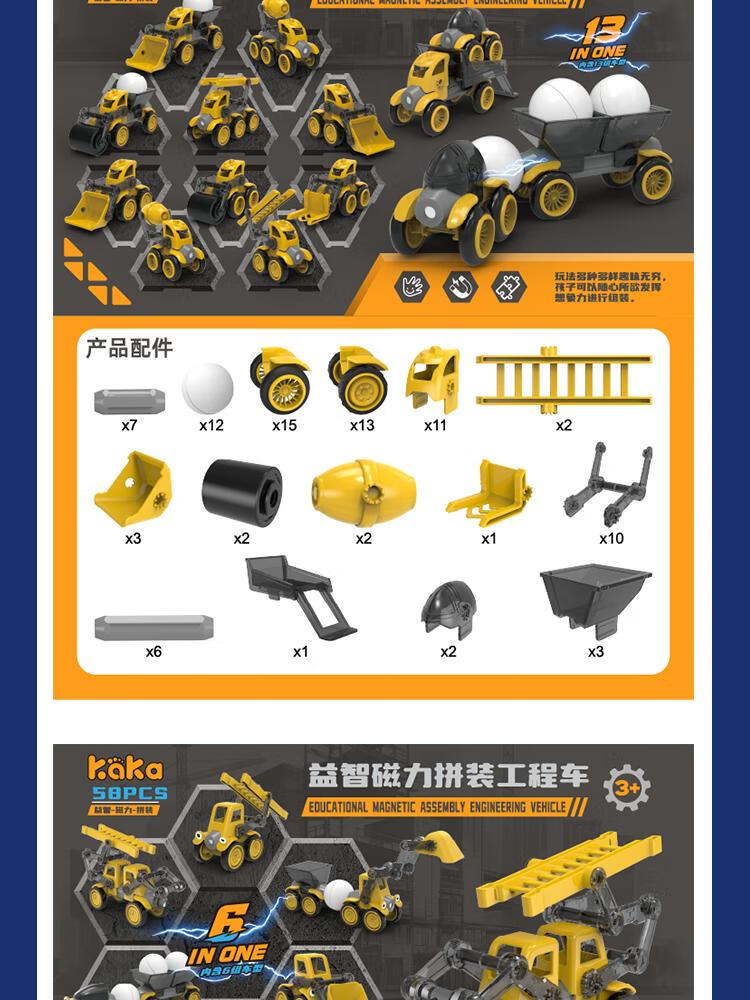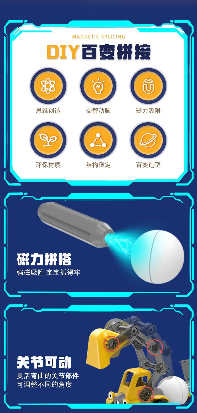 kaka咔咔百变磁力工程车儿童益智拼装玩具套装生日礼物手提礼盒 益智磁力拼装工程车41PCS标准版【礼盒】