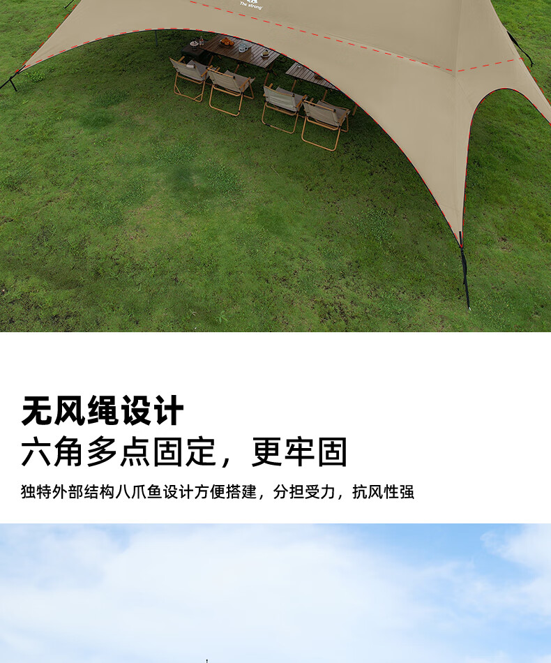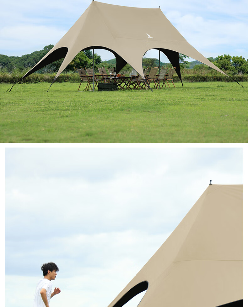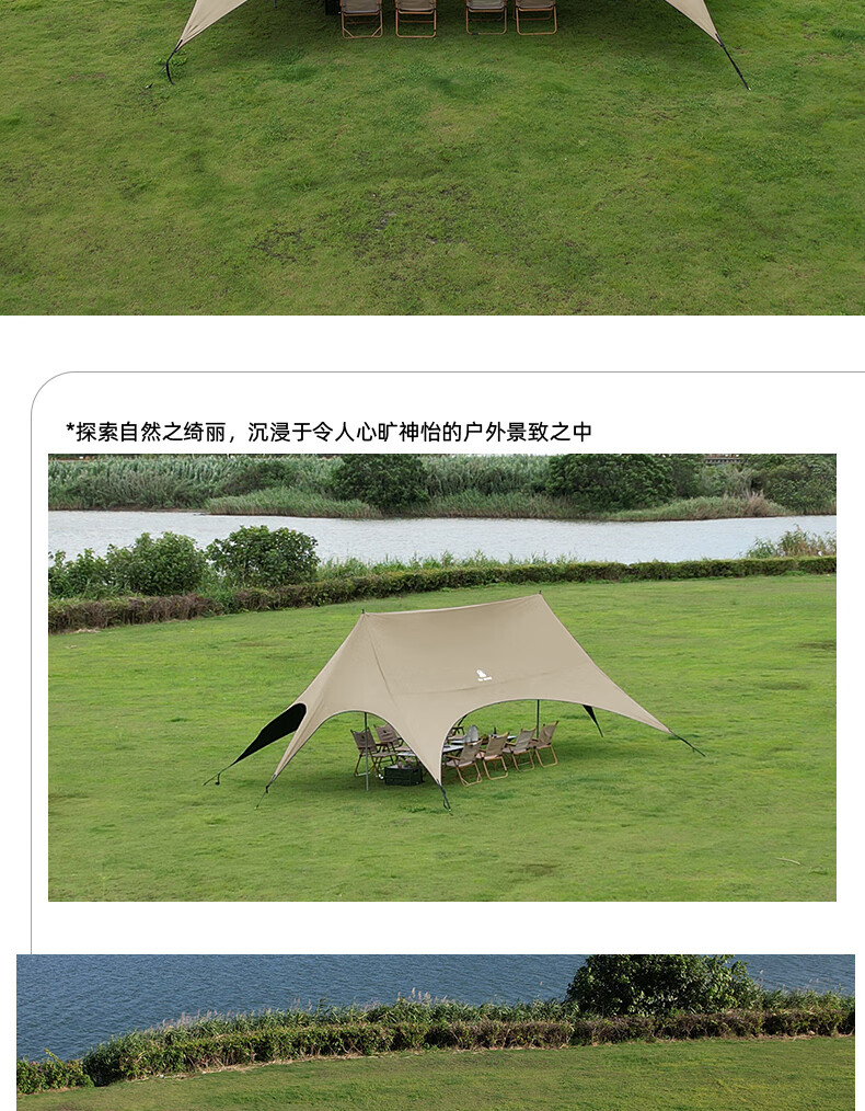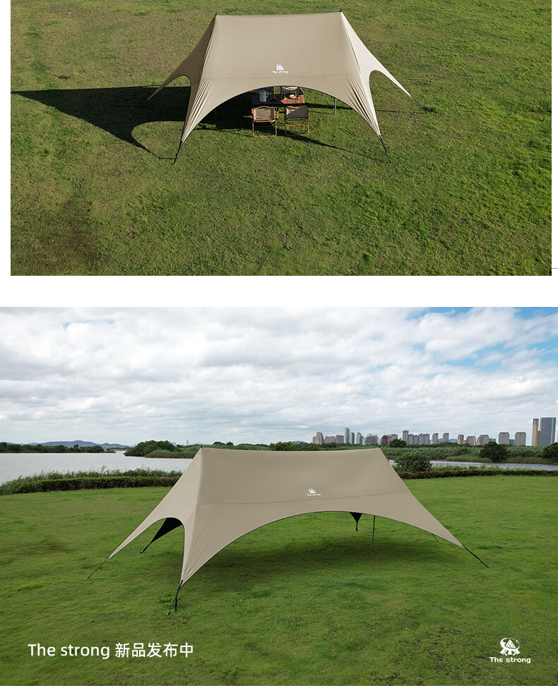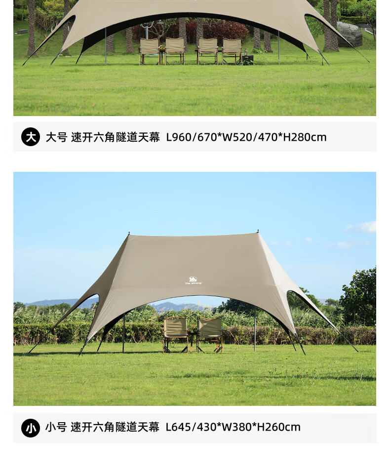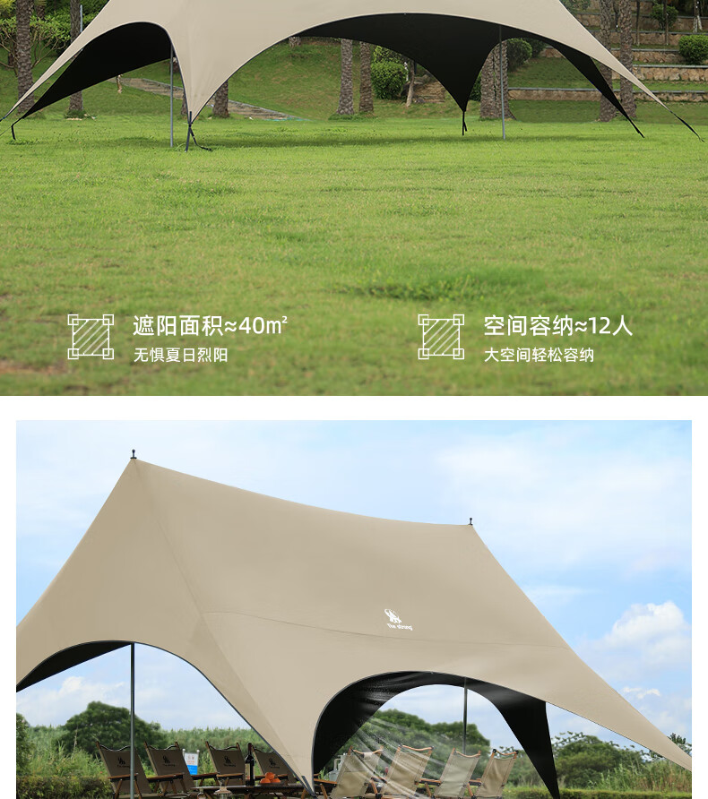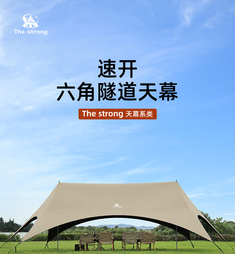 THE STRONG户外露营黑胶天幕六角速开防雨防晒懒人遮阳棚 卡其黑胶约40平(6-12人) 懒人速搭