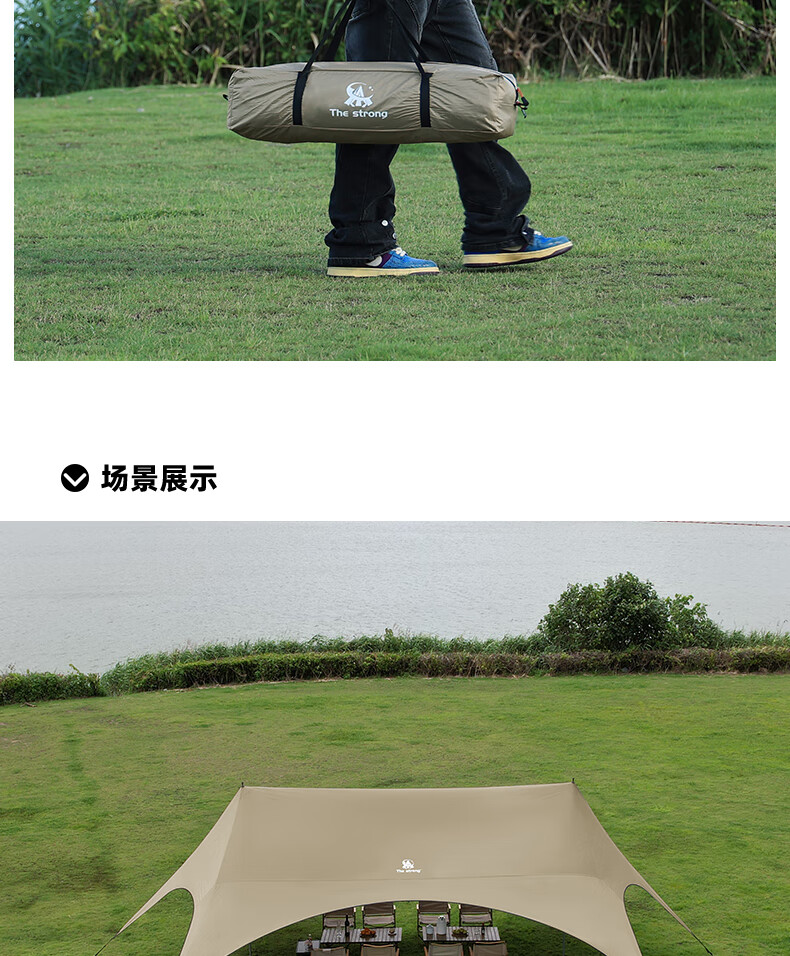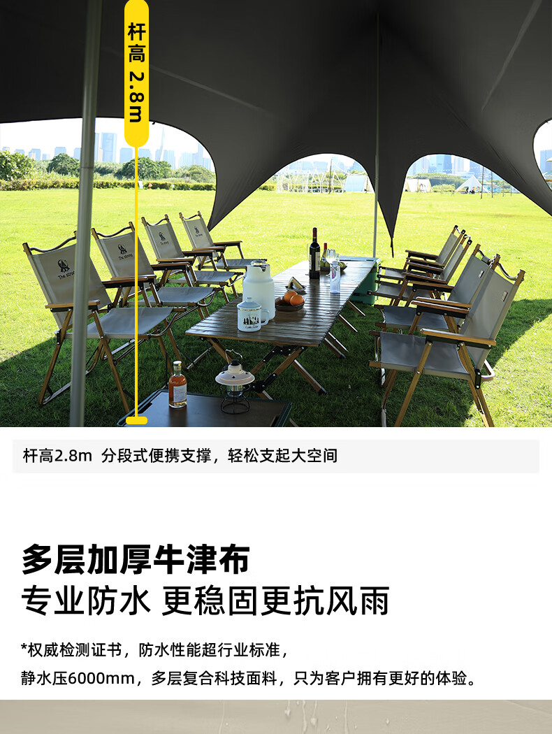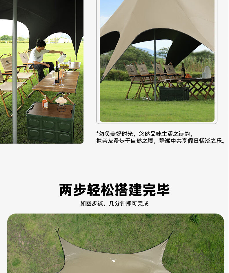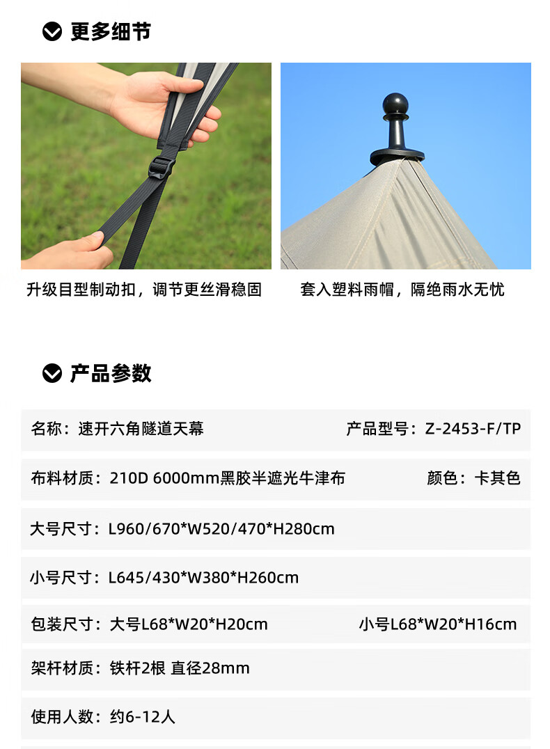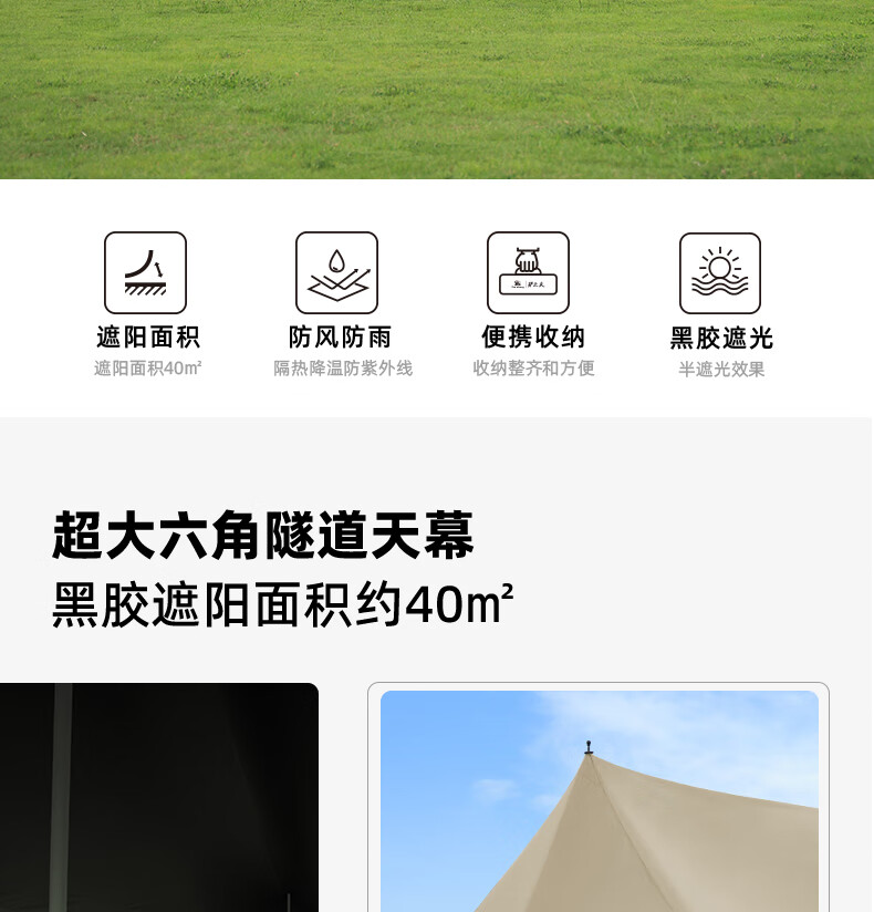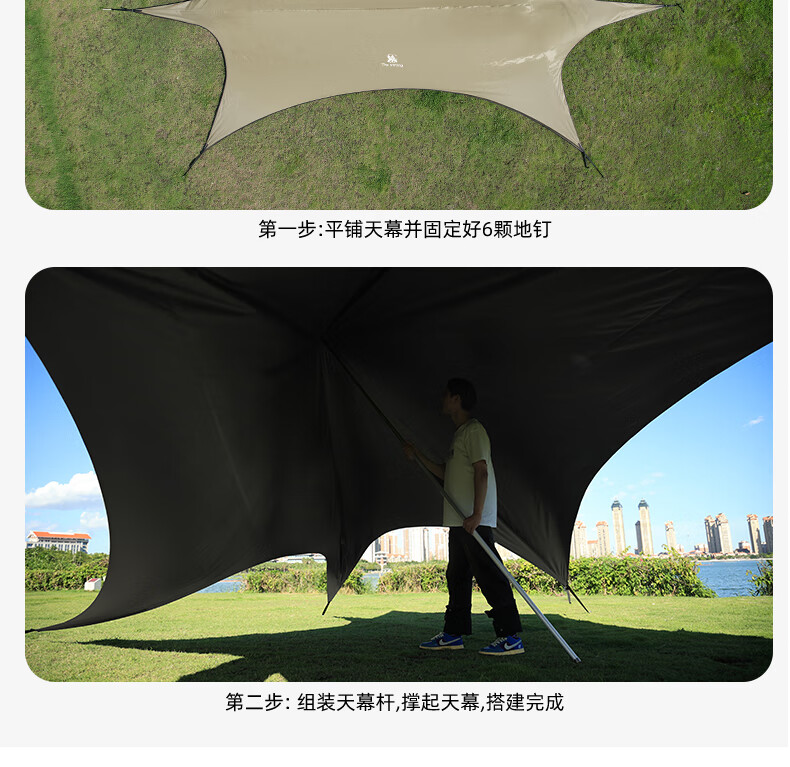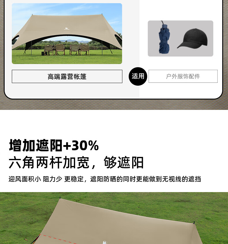 THE STRONG户外露营黑胶天幕六角速开防雨防晒懒人遮阳棚 卡其黑胶约40平(6-12人) 懒人速搭
