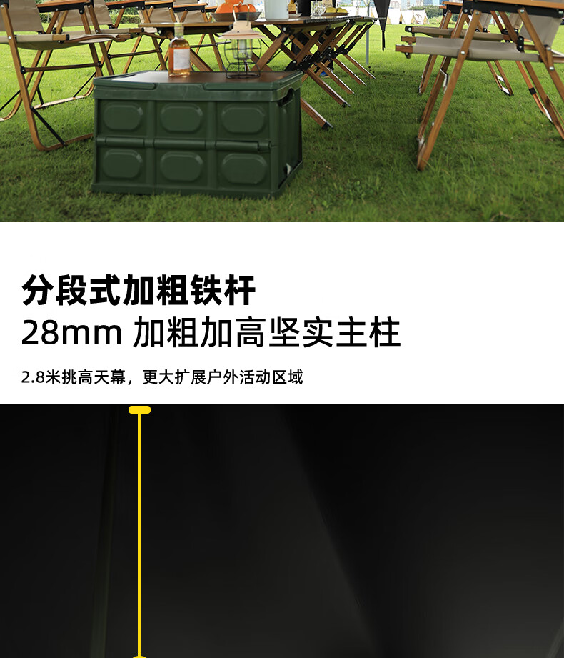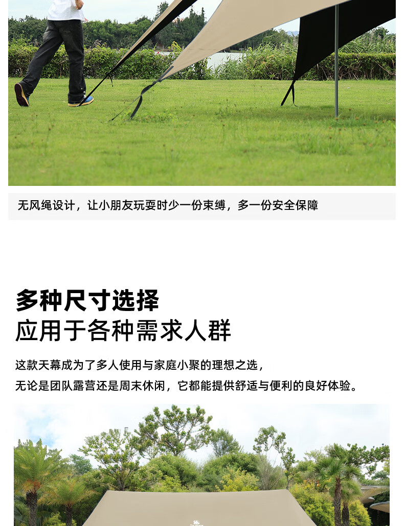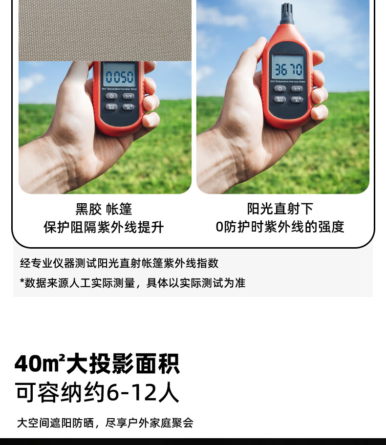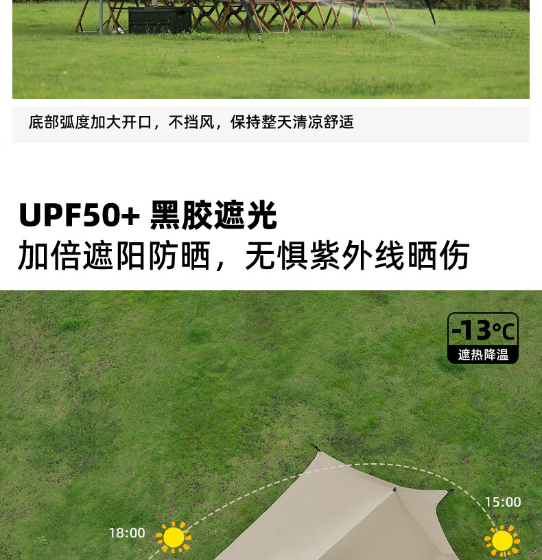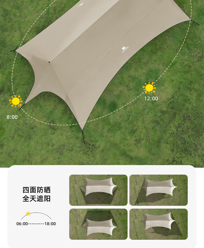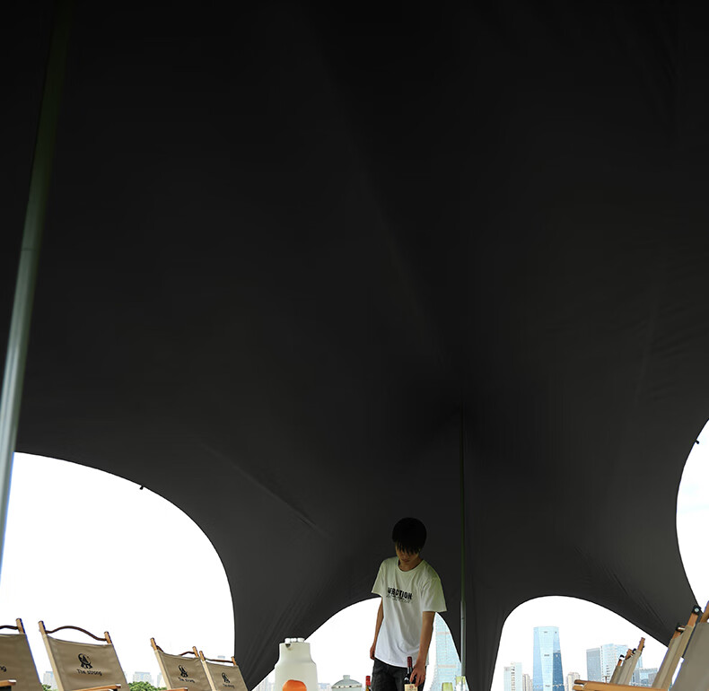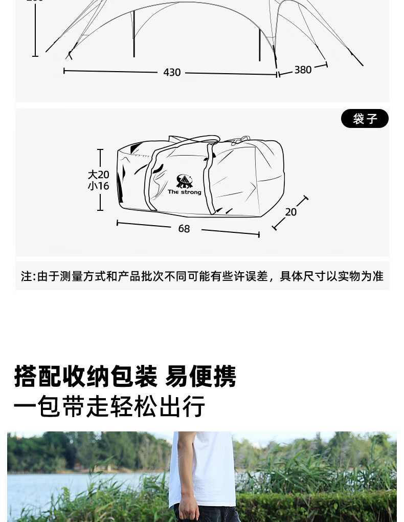 THE STRONG户外露营黑胶天幕六角速开防雨防晒懒人遮阳棚 卡其黑胶约40平(6-12人) 懒人速搭