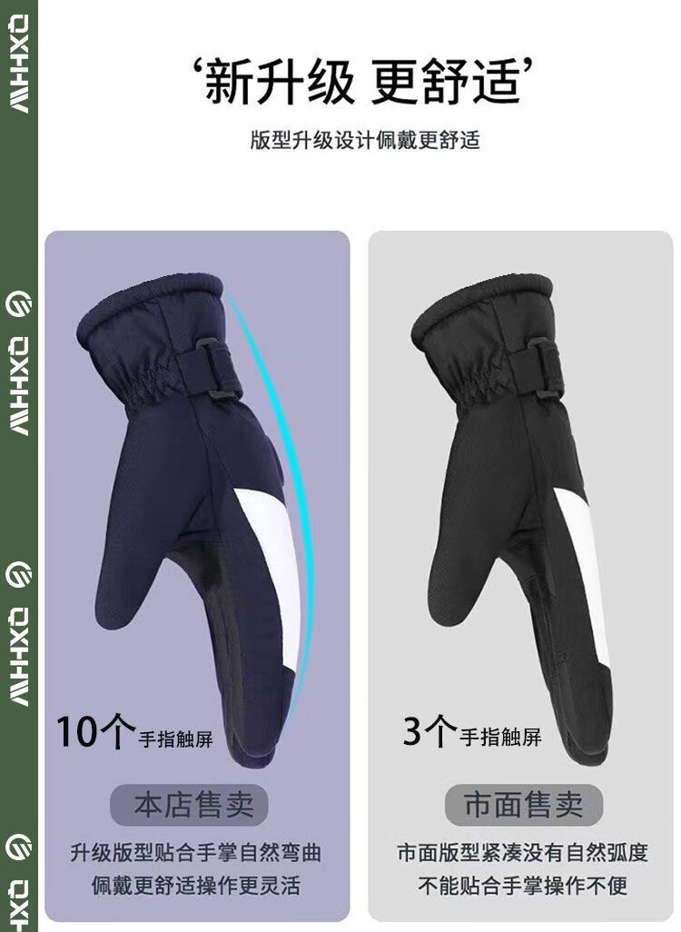 束鹿故事滑雪手套男女士款冬季天骑车手套保暖防寒防风加厚电动车手套防水 【雪花标】女款紫白
