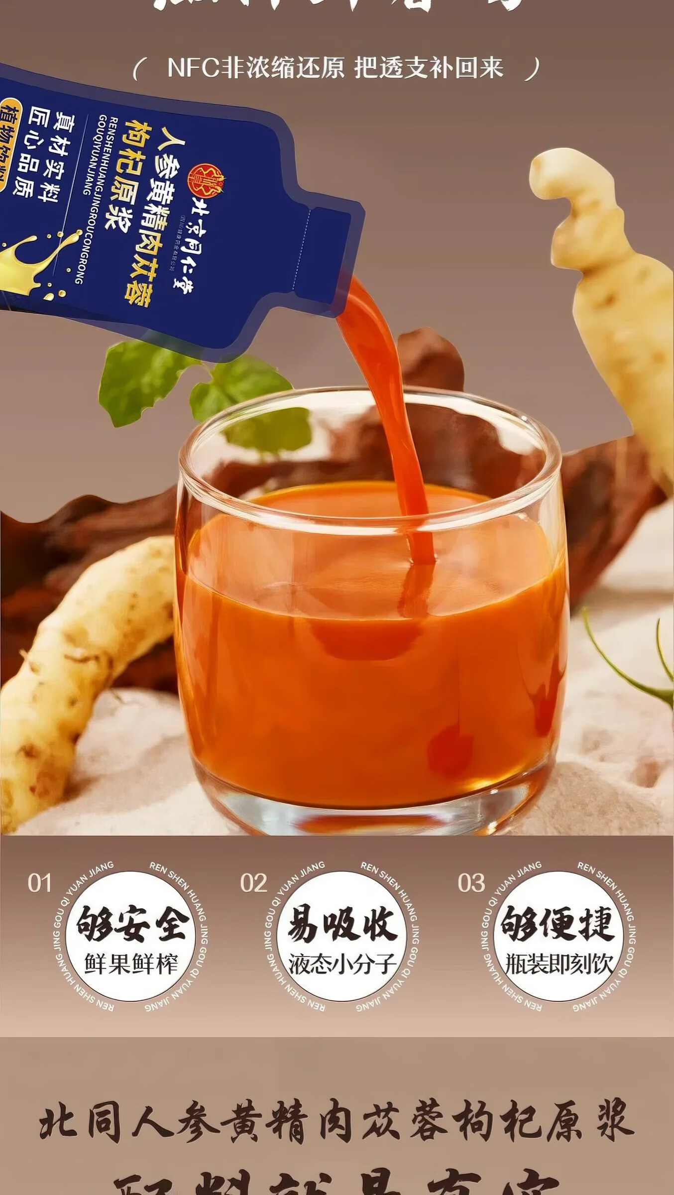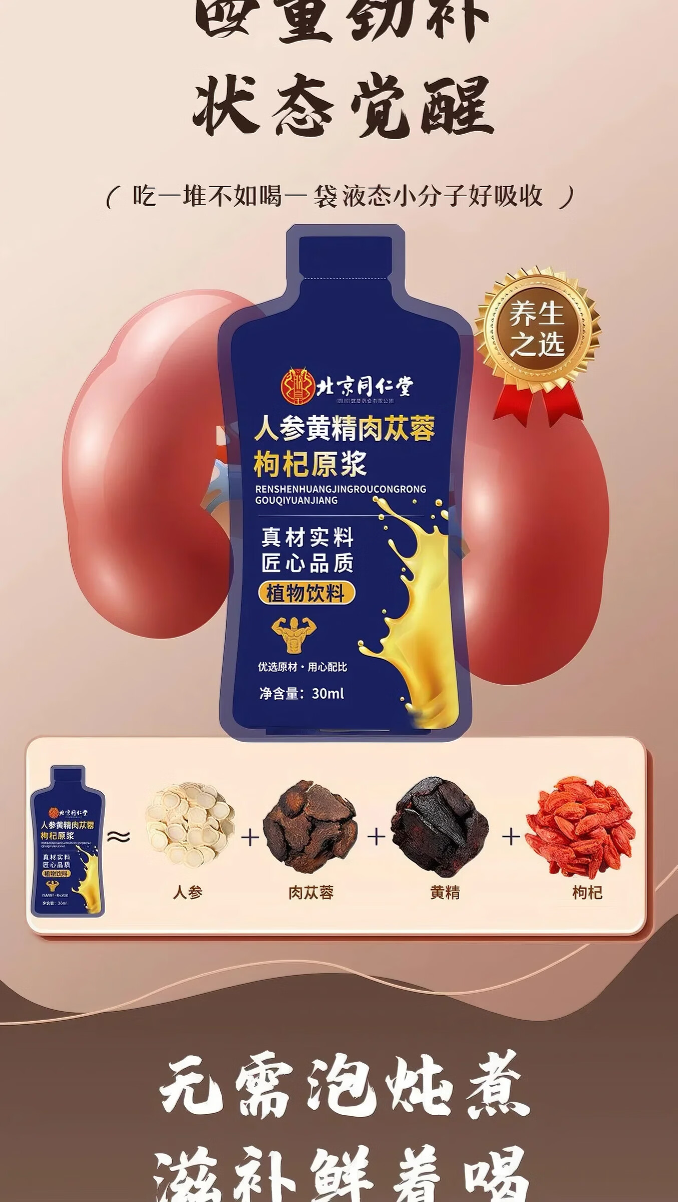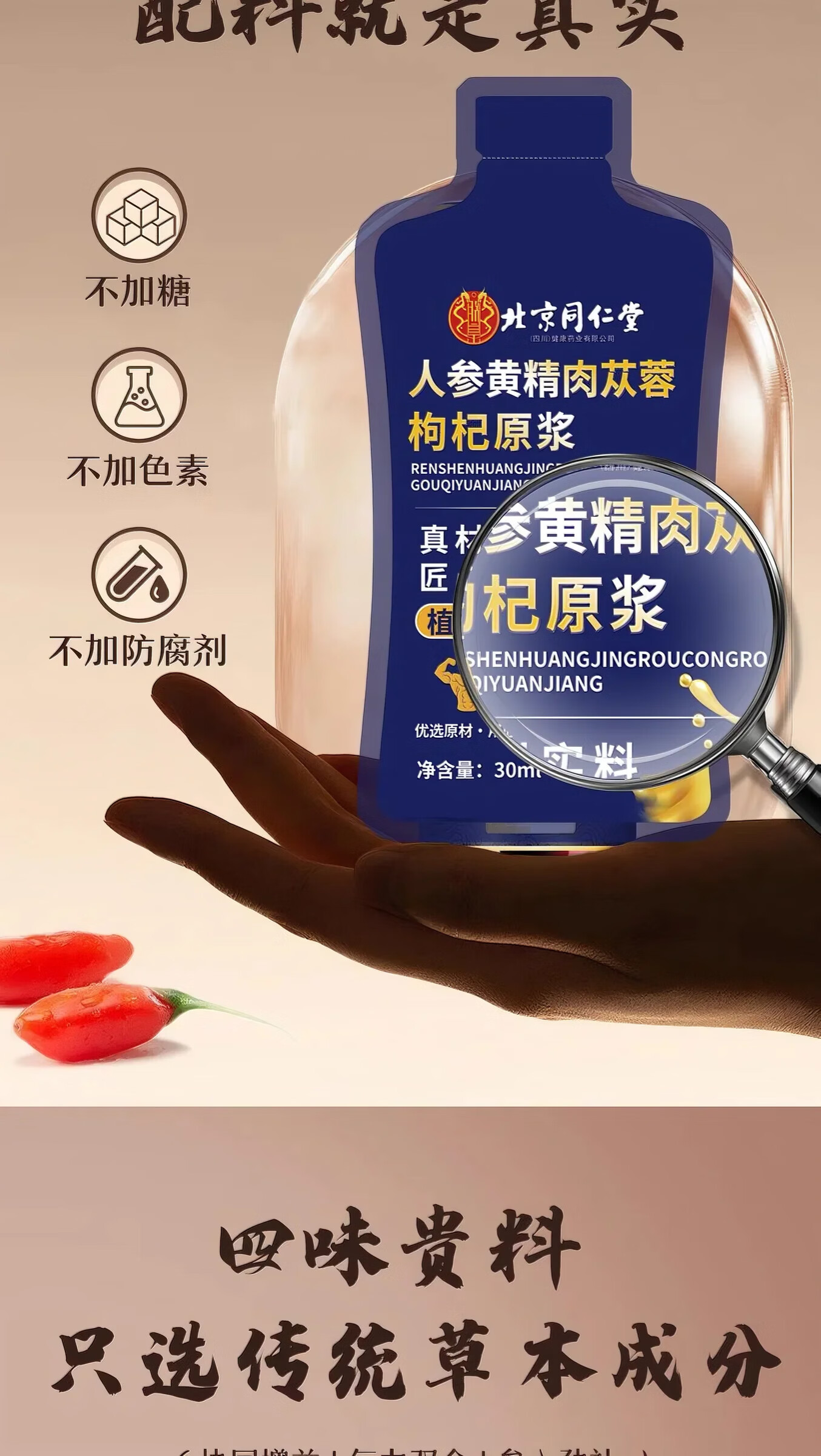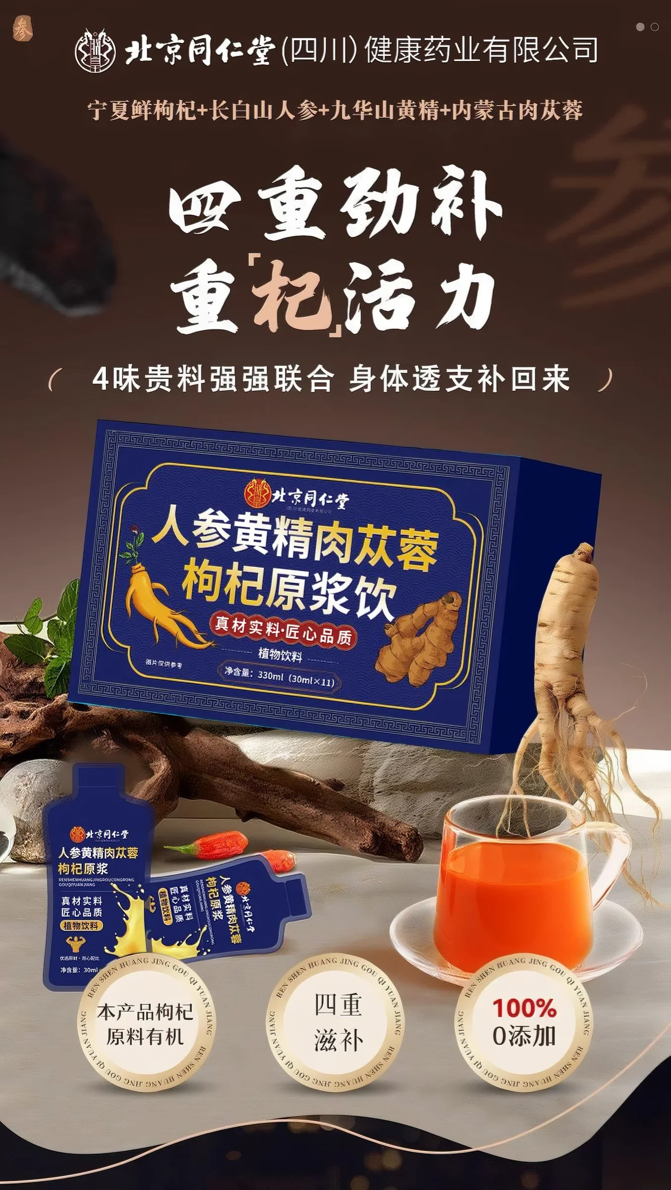 北京同仁堂人参枸杞原浆 人参黄精肉苁蓉原浆口服液 枸杞原浆男性适用 【越喝越苁蓉】5盒(30ml*11袋)