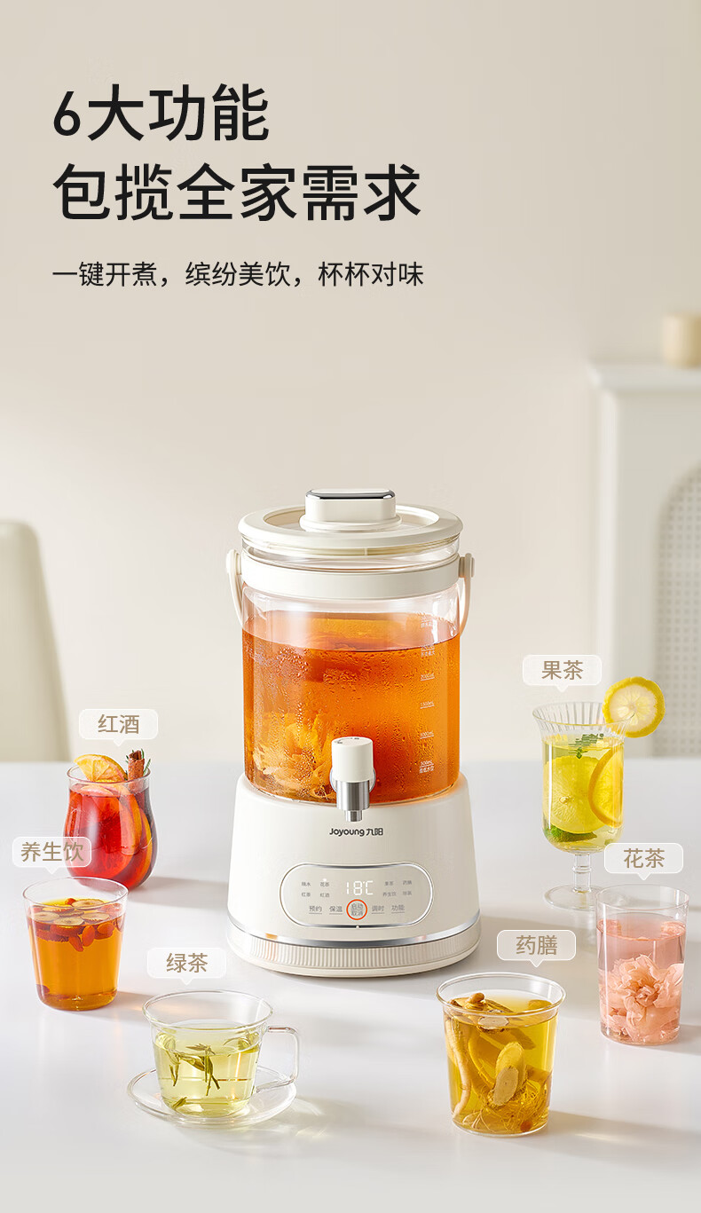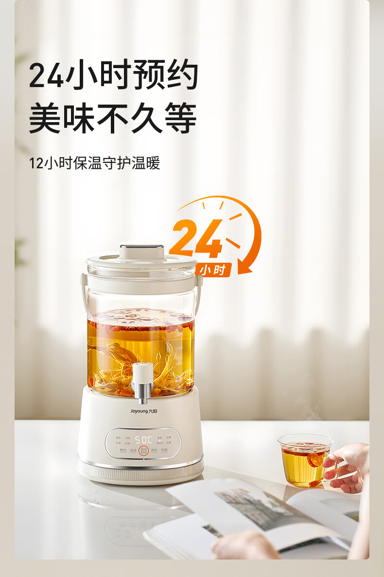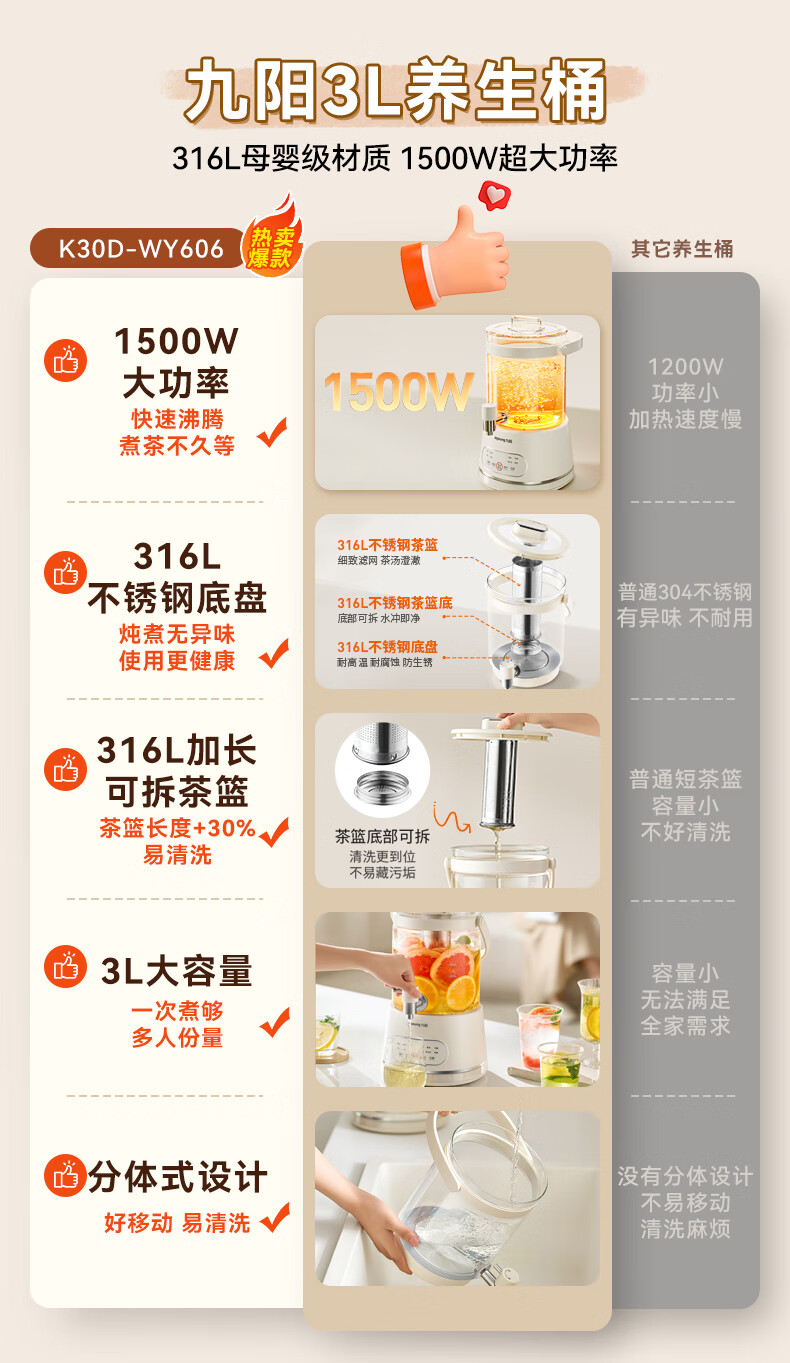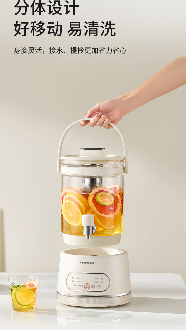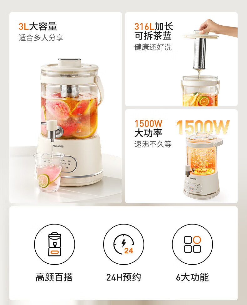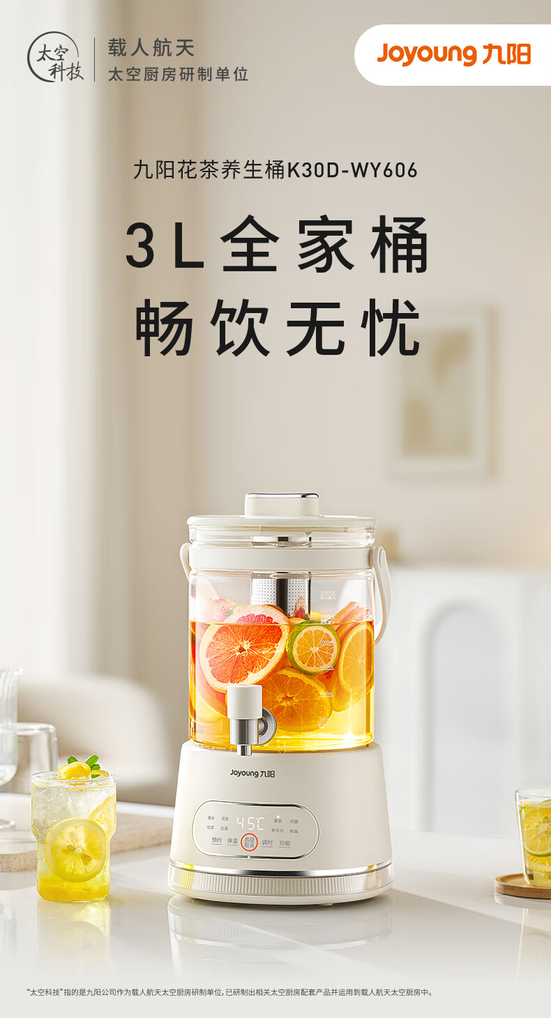九阳(Joyoung)养生壶3L大容量 水龙头花茶桶养生烧水壶 玻璃煮茶器316食品级炖煮一体恒温电热水壶K30D-WY606