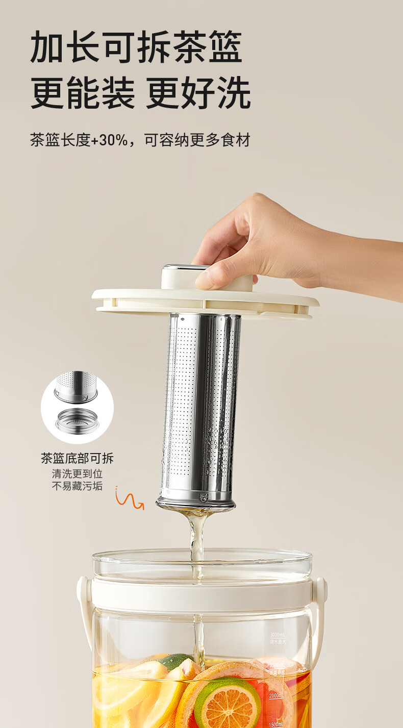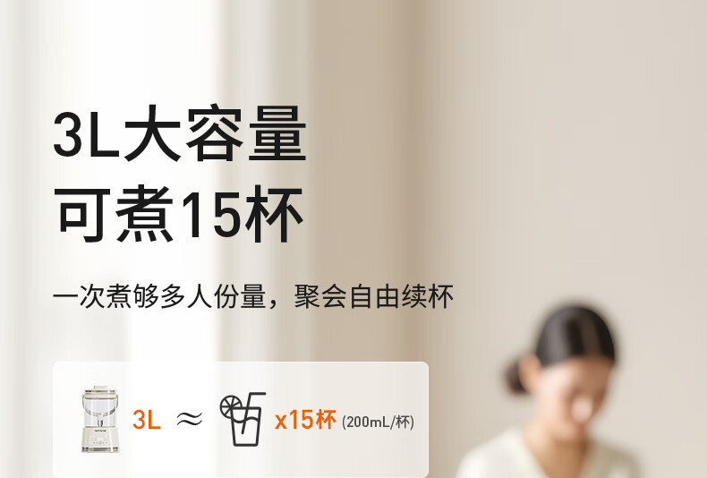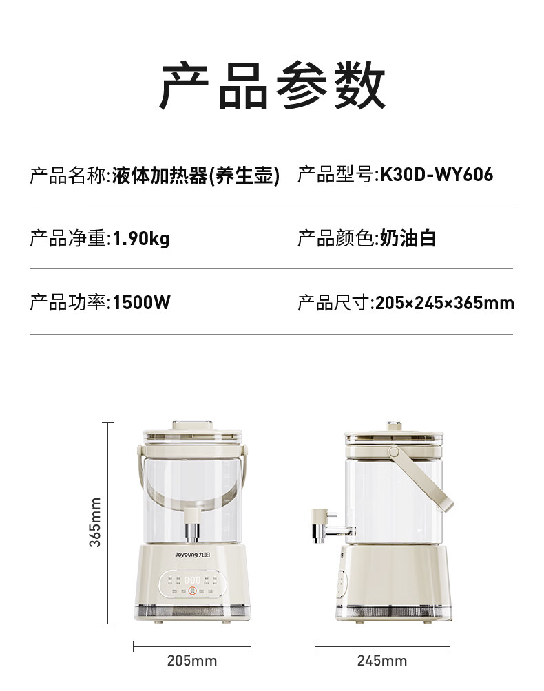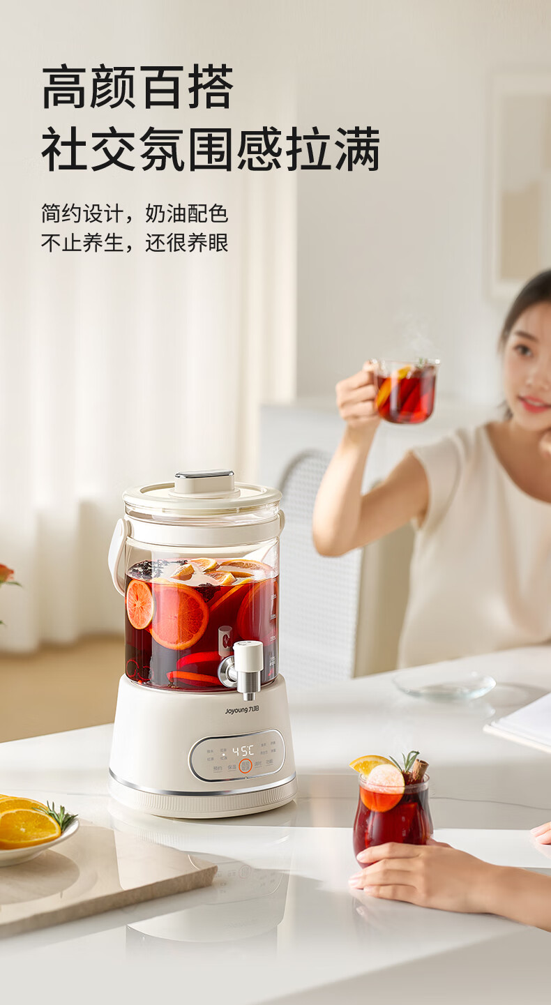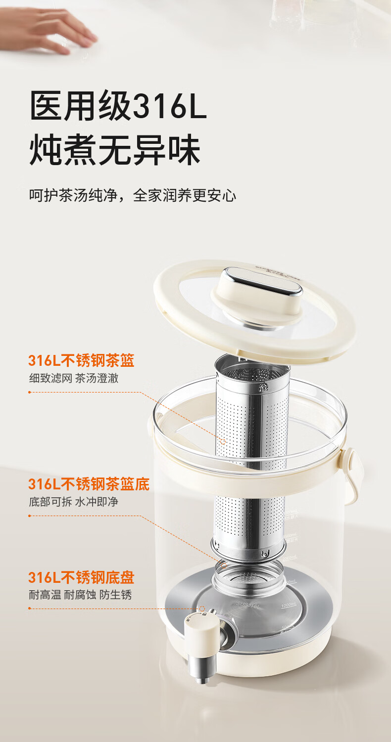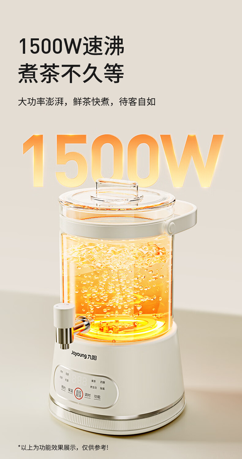 九阳(Joyoung)养生壶3L大容量 水龙头花茶桶养生烧水壶 玻璃煮茶器316食品级炖煮一体恒温电热水壶K30D-WY606