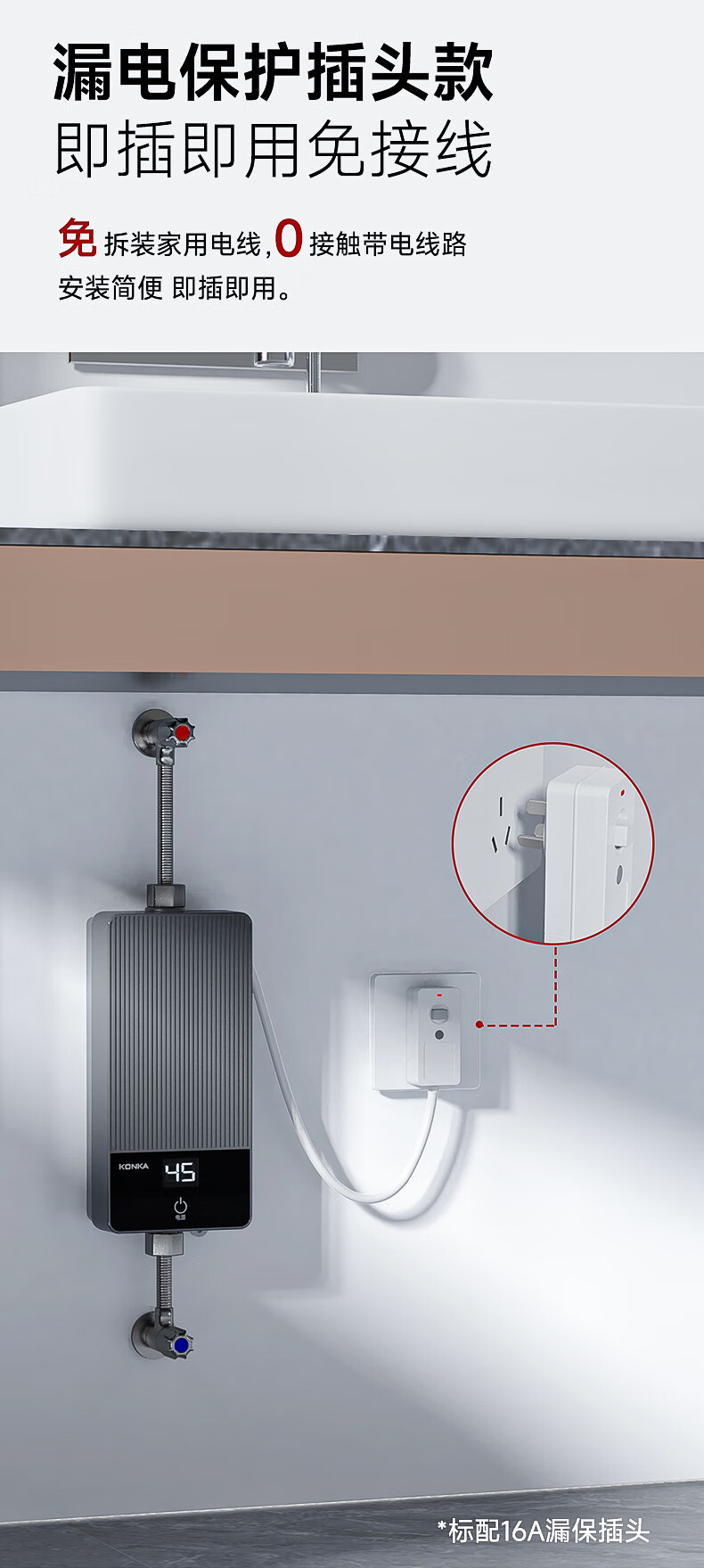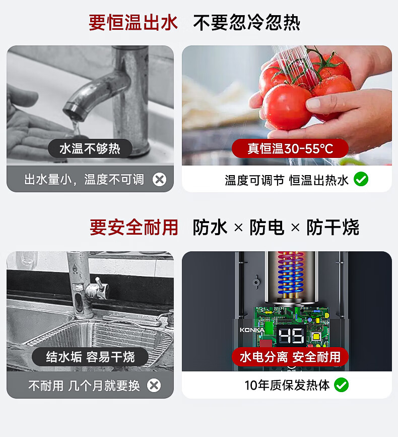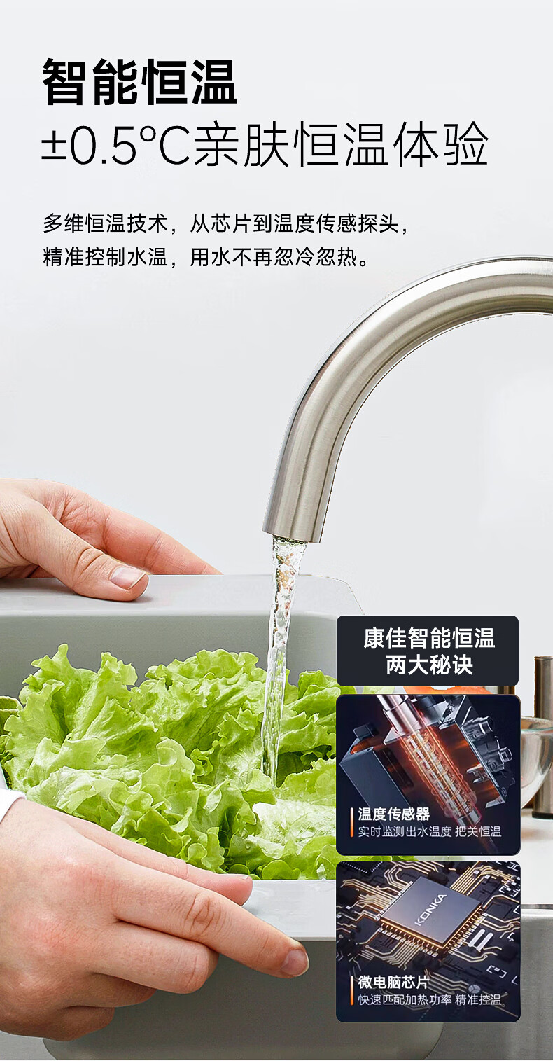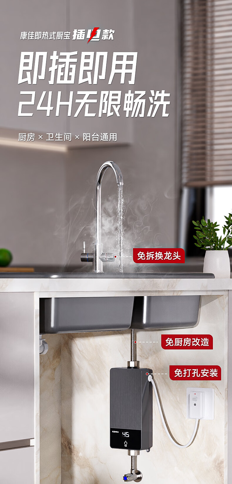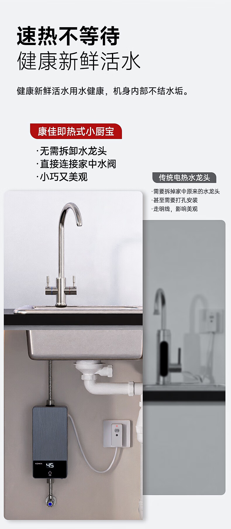 康佳(KONKA)即热式小厨宝 3400W免打孔家用厨房面盆 插头款电热水龙头加热宝热水器DJ34-KSDTF01