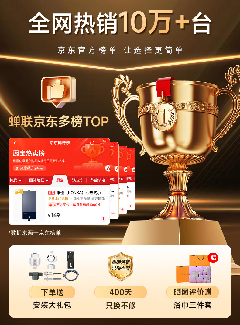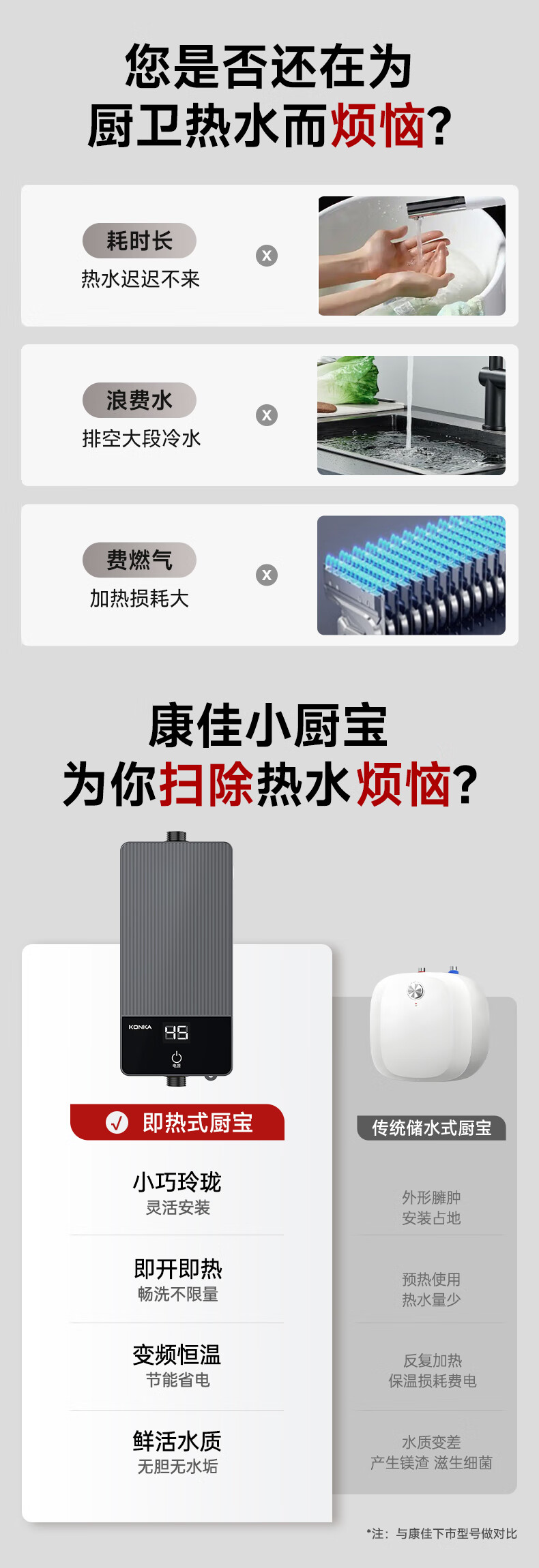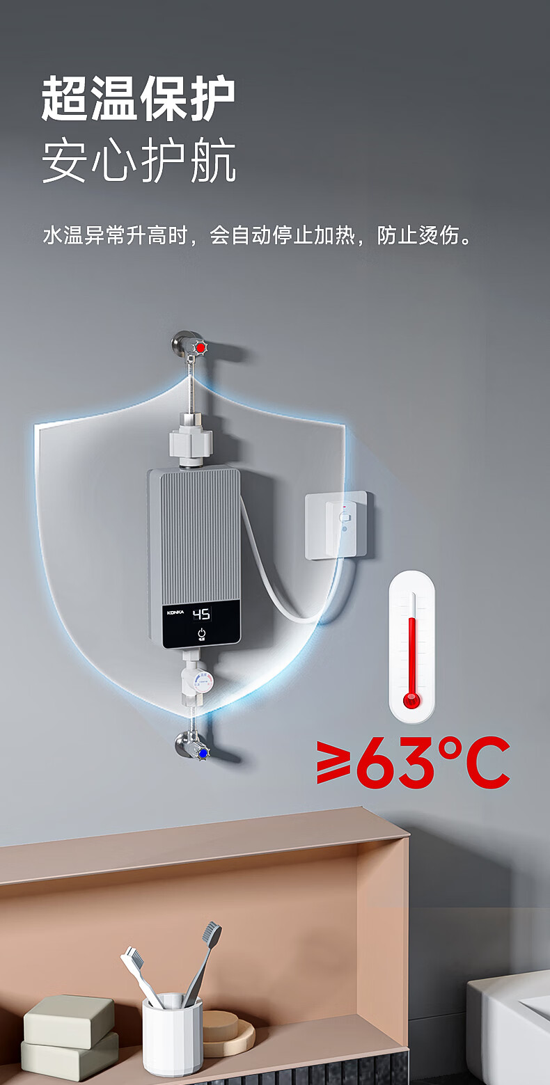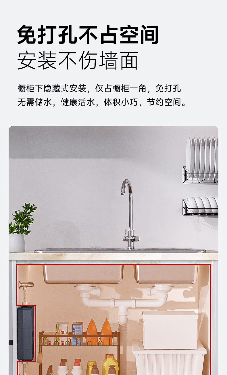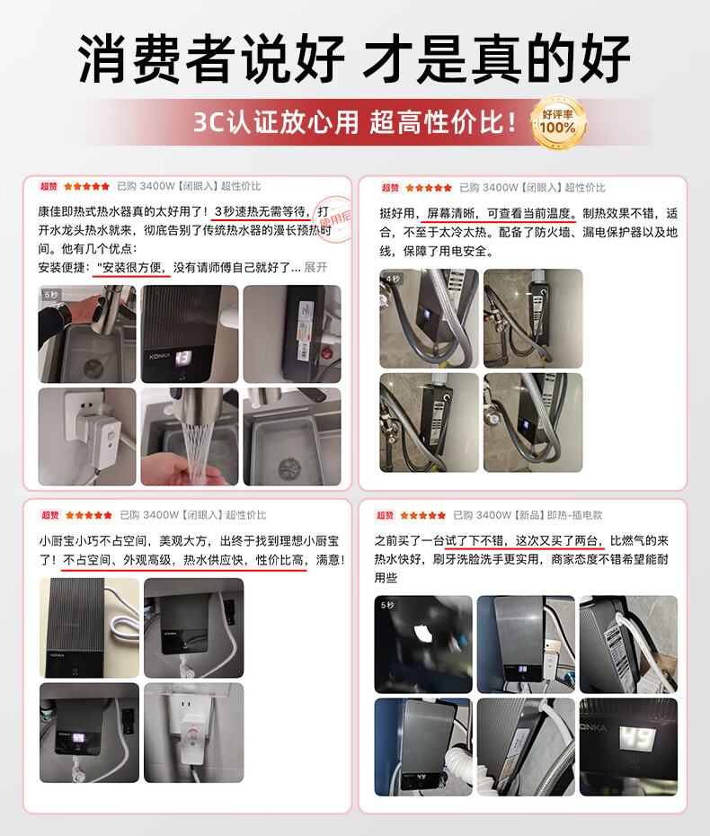 康佳(KONKA)即热式小厨宝 3400W免打孔家用厨房面盆 插头款电热水龙头加热宝热水器DJ34-KSDTF01