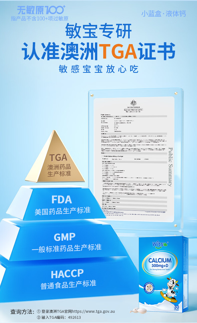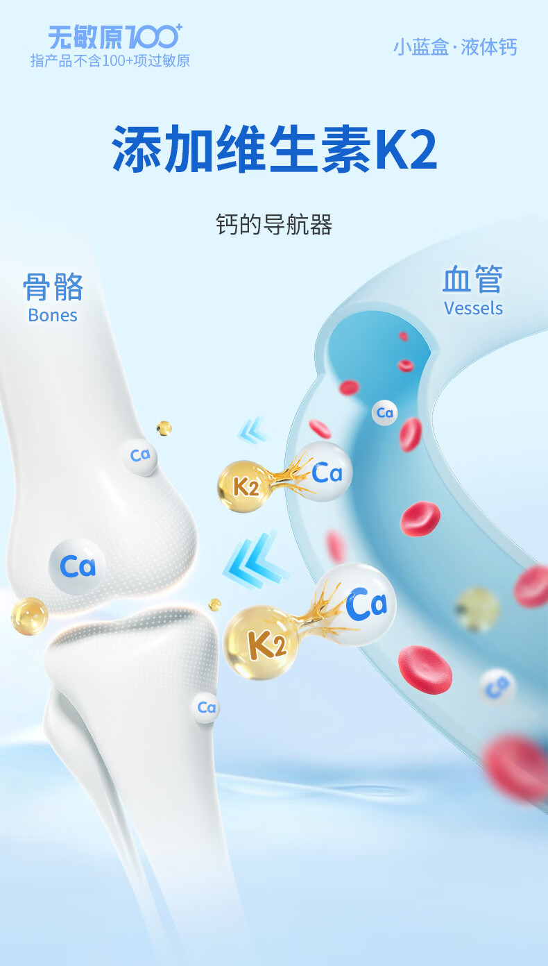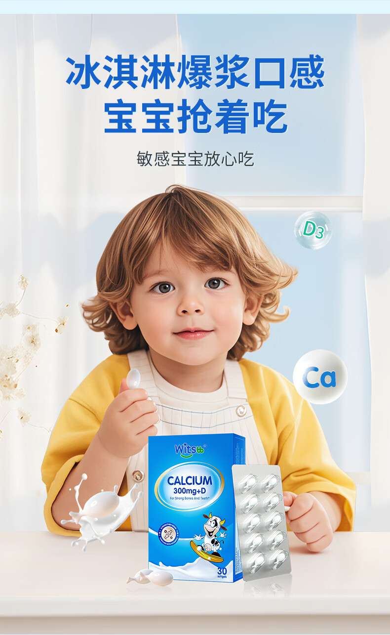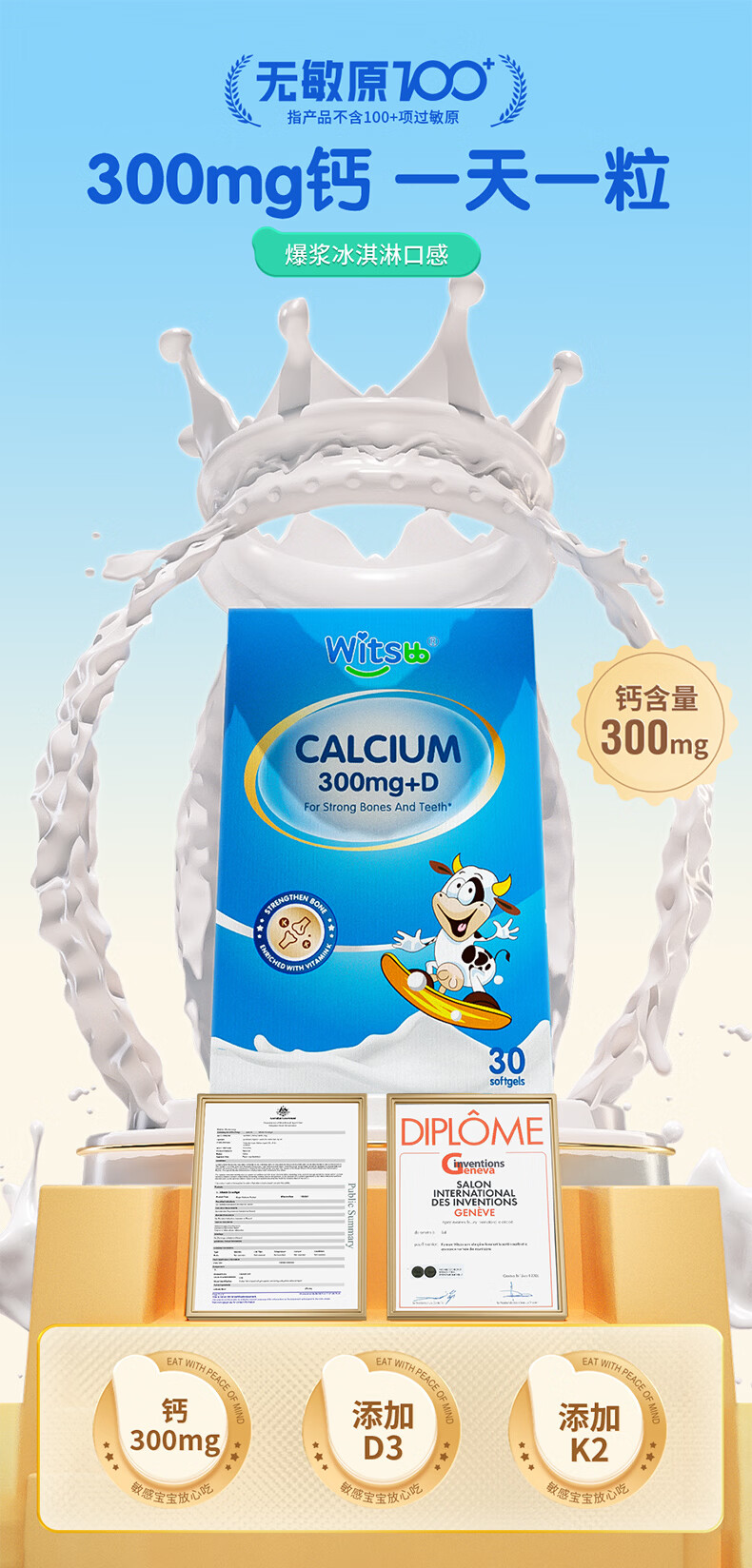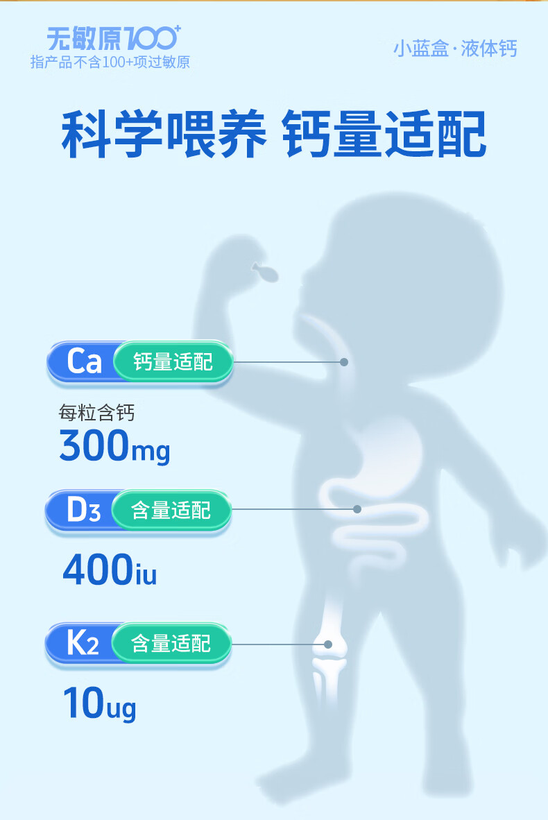 witsbb健敏思小蓝盒液体钙d3K2儿童宝宝6月+敏宝专研100+项无敏原30粒