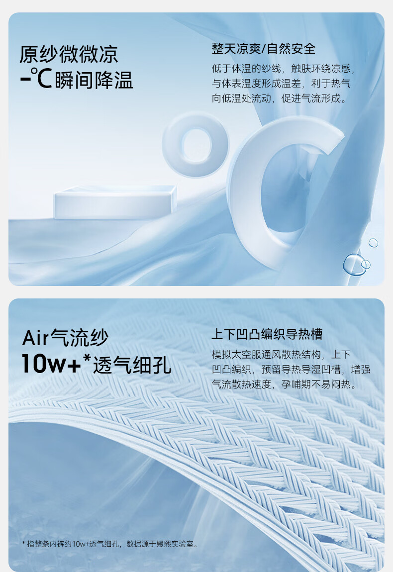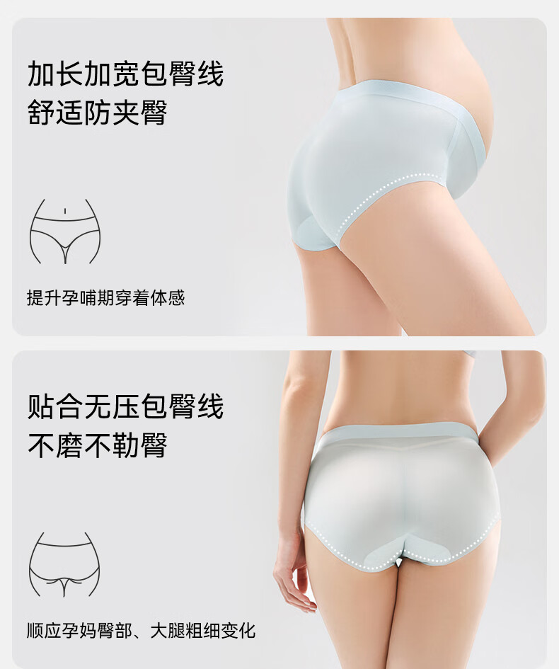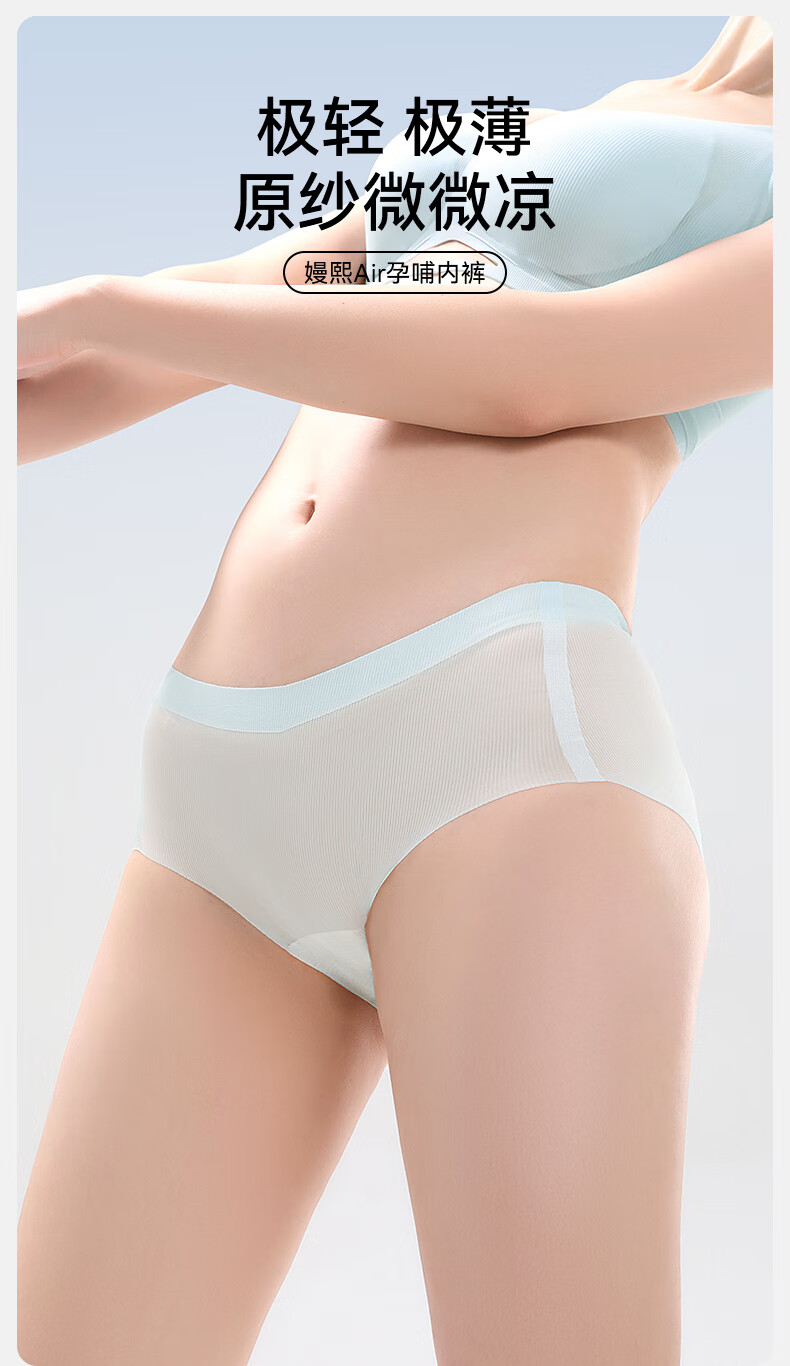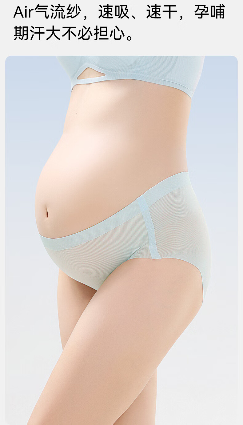 嫚熙(EMXEE)反重力Air孕妇内裤女夏季轻薄透气凉感怀孕早中晚期 淡紫清晨/栀子白/浅绿色 3条装 L