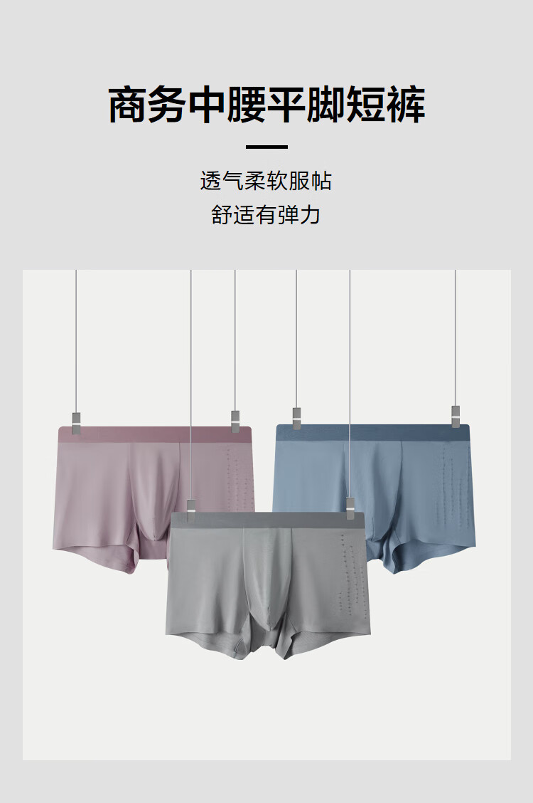 HLA海澜之家男式平角无痕内裤【3A抗菌】【三条装】内裤男