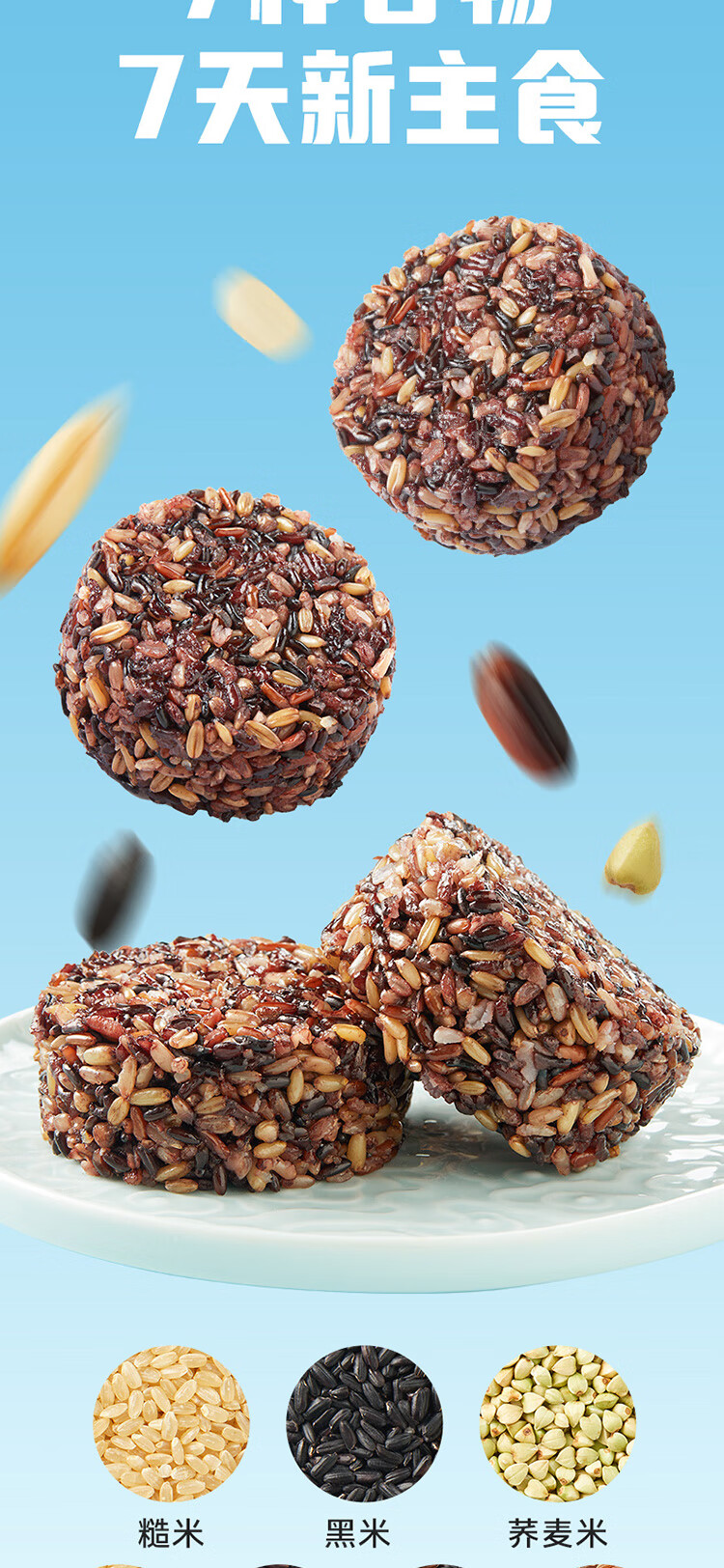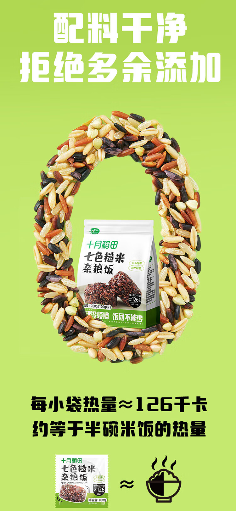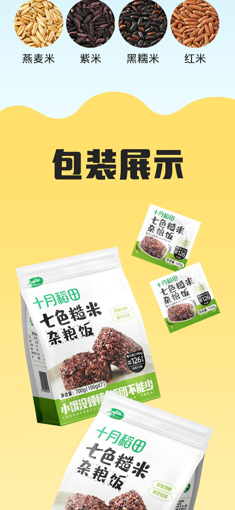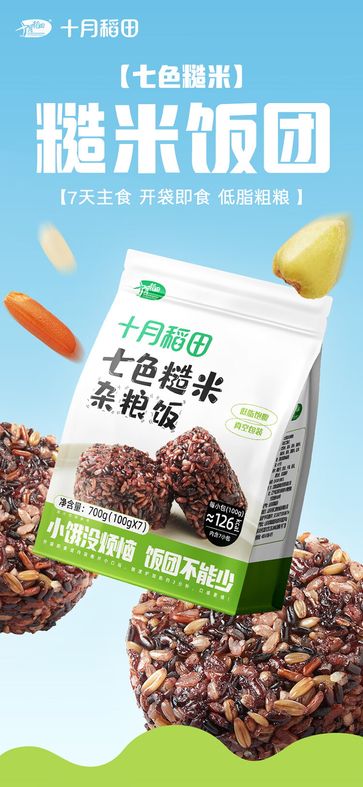 十月稻田七色糙米饭团 100g*7 开袋微波代餐 粗粮杂粮 早餐速食 低脂饱腹