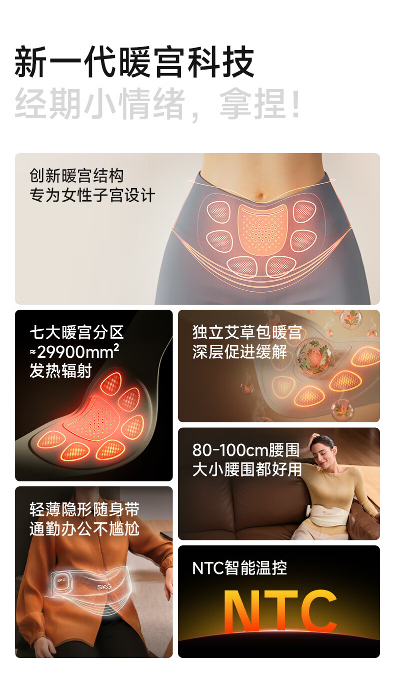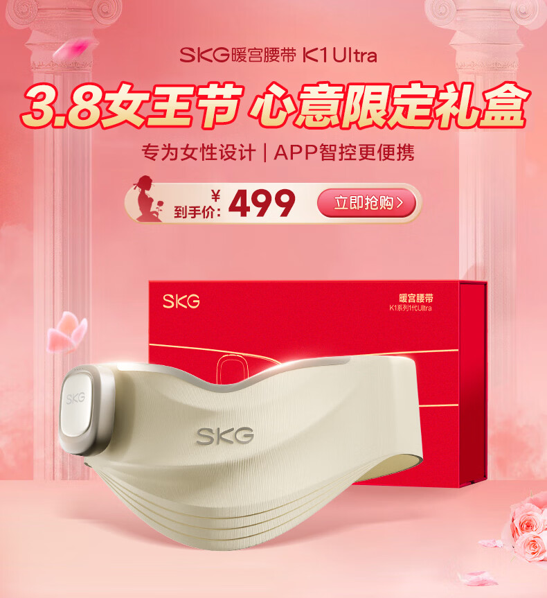 SKG暖宫腰带大姨妈神器腰部艾灸热敷暖宝宝暖腹痛经大姨妈期舒缓贴护腰带38三八女神节礼物送女友老婆 【全新升级K1Ultra】艾灸热敷APP智控