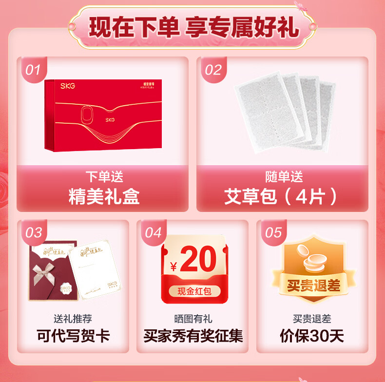 skg按摩仪腰部按摩器G5【王一博同款】暖宫腰带姨妈神器护腰热敷中频脉冲 送女友三八妇女节女神礼物