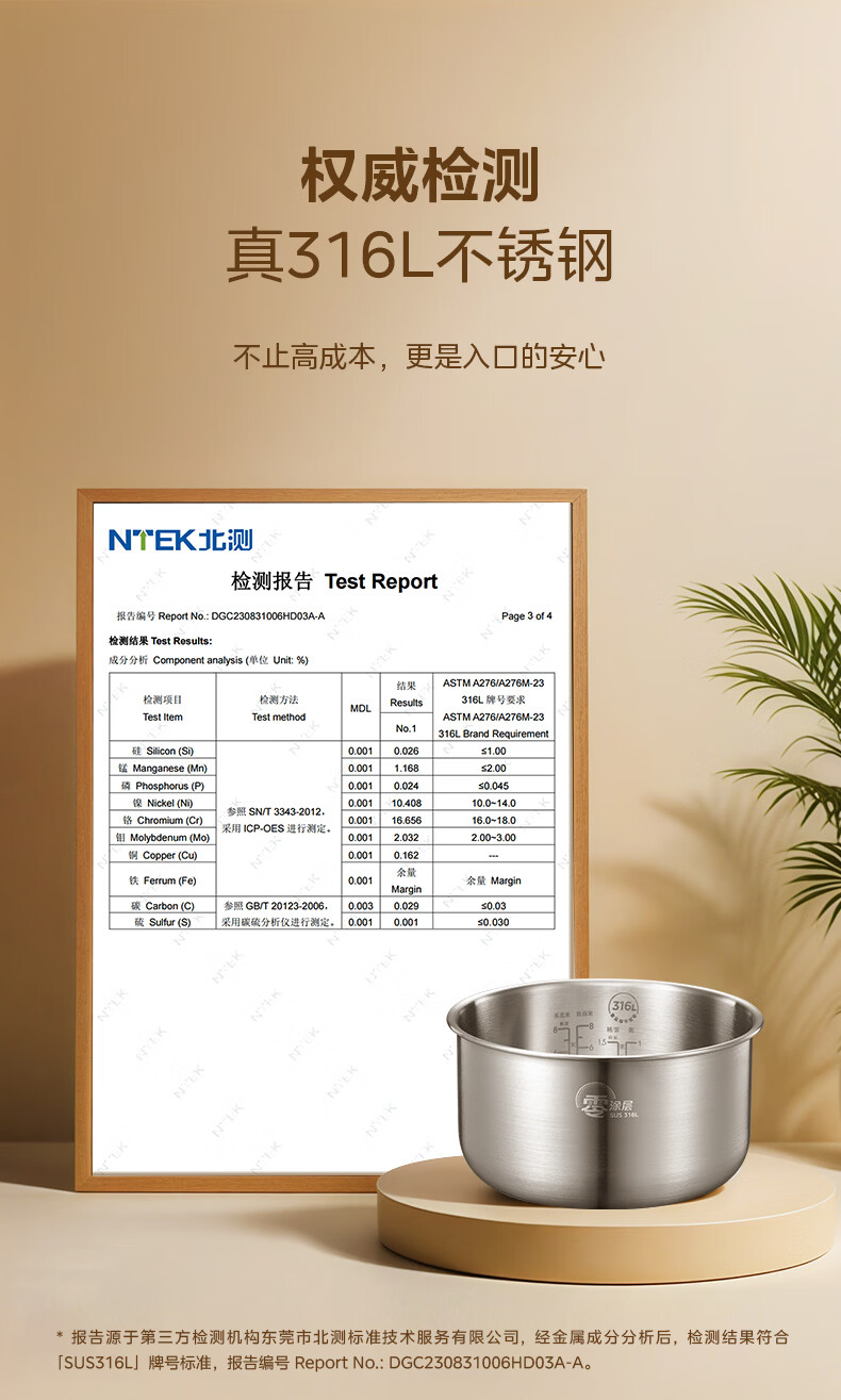 美的(Midea)电饭煲0涂层电饭锅5L大容量316L不锈钢内胆4-5人无涂层家用多功能微压电饭煲MB-RE576S