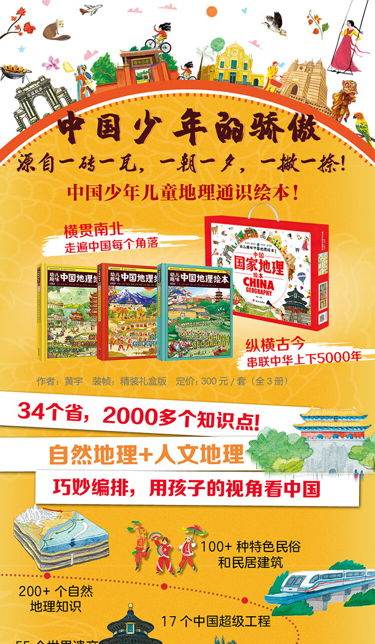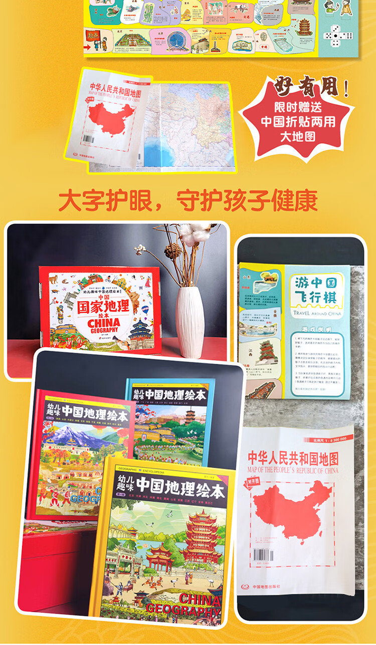 中国国家地理绘本礼盒 China Geography幼儿趣味中国地理绘本精装版 附赠游中国飞行棋&大尺寸中国地图