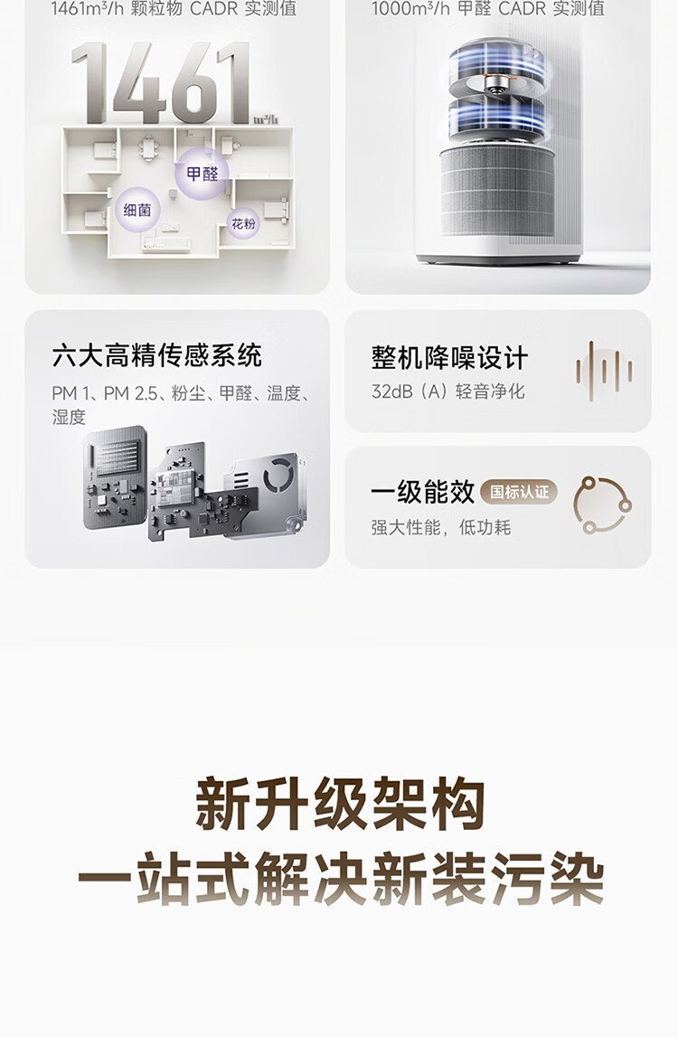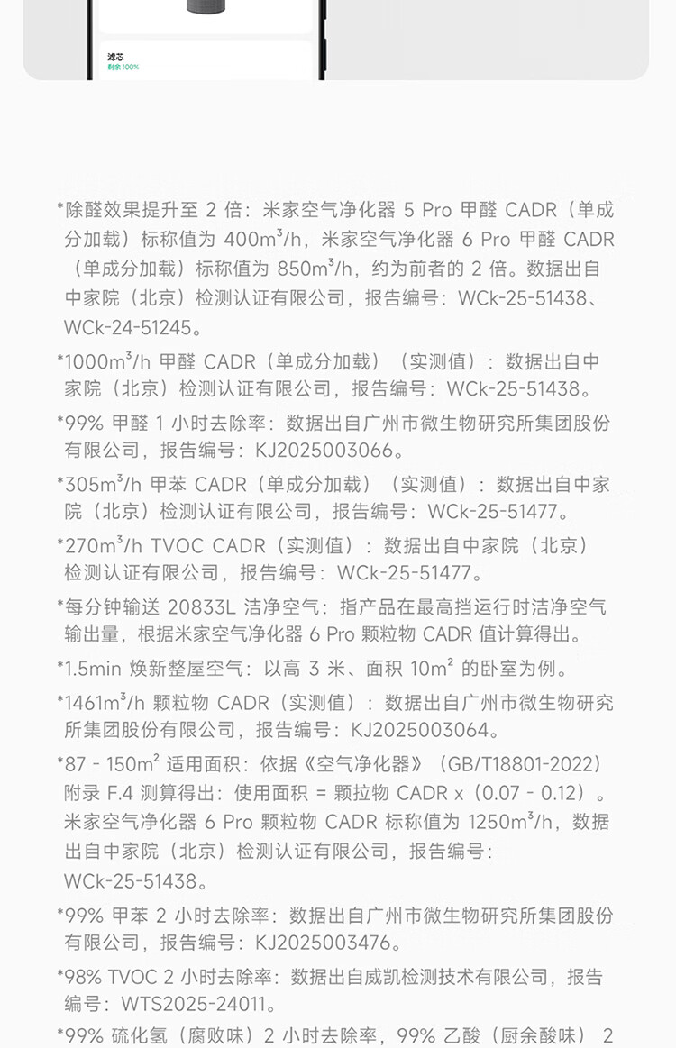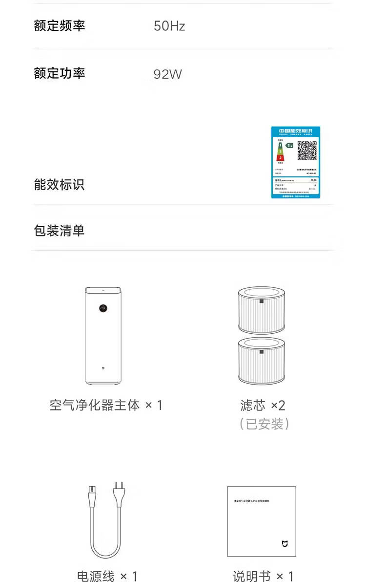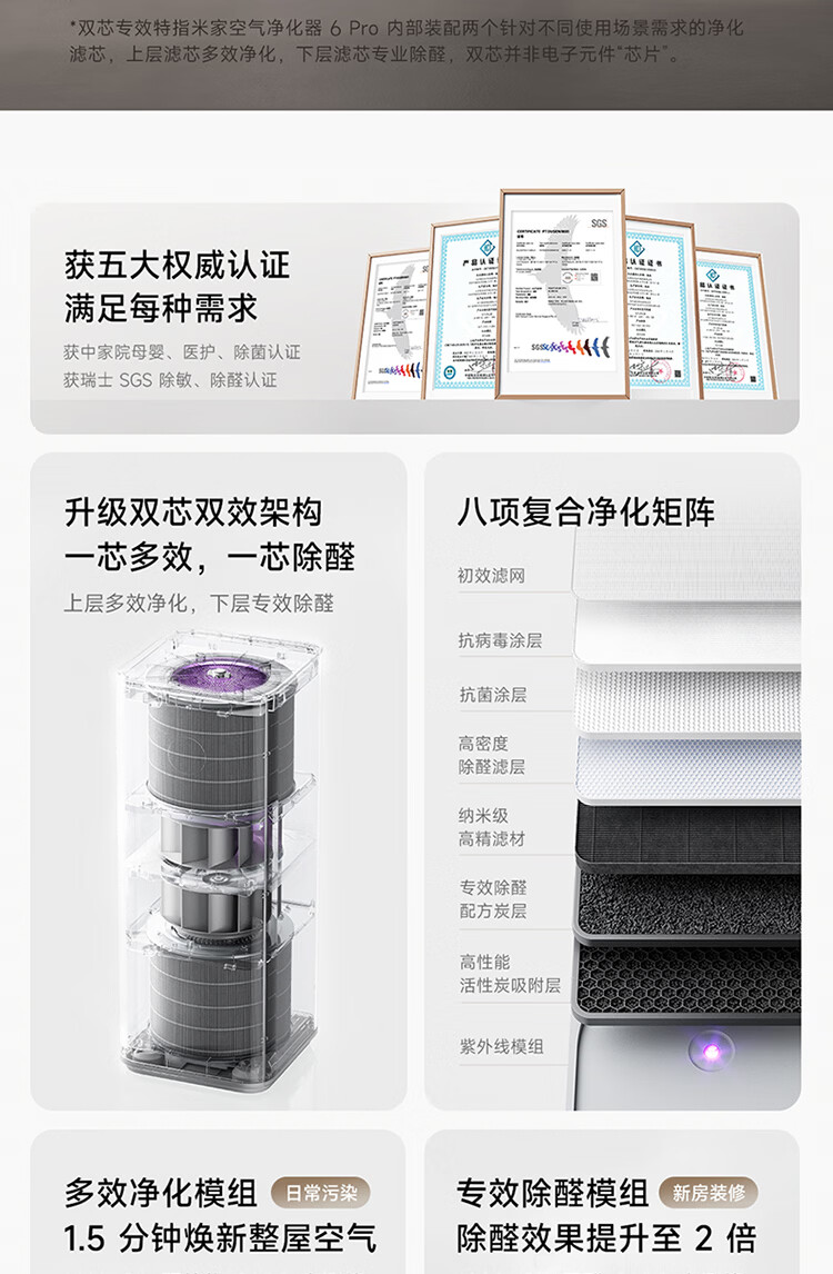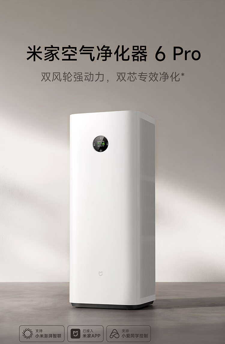 米家小米【发布会同款】空气净化器6Pro新升级双芯架构大空间 除菌除醛母婴级家用除甲醛净化器