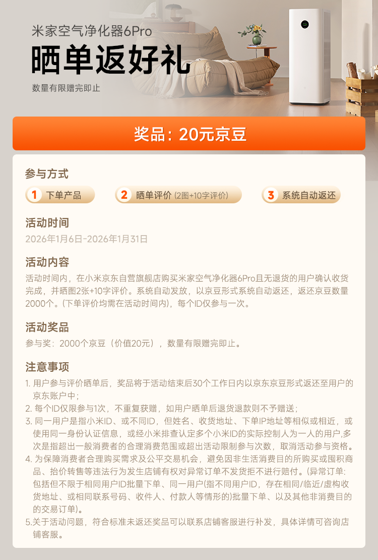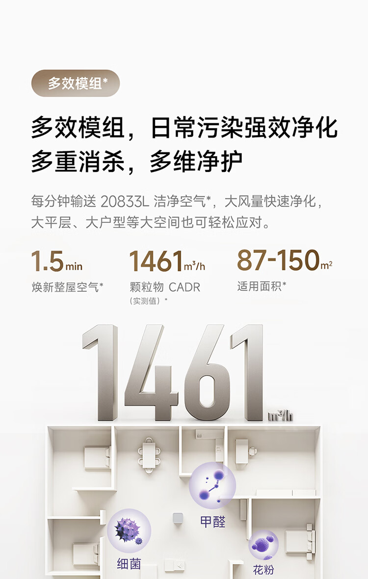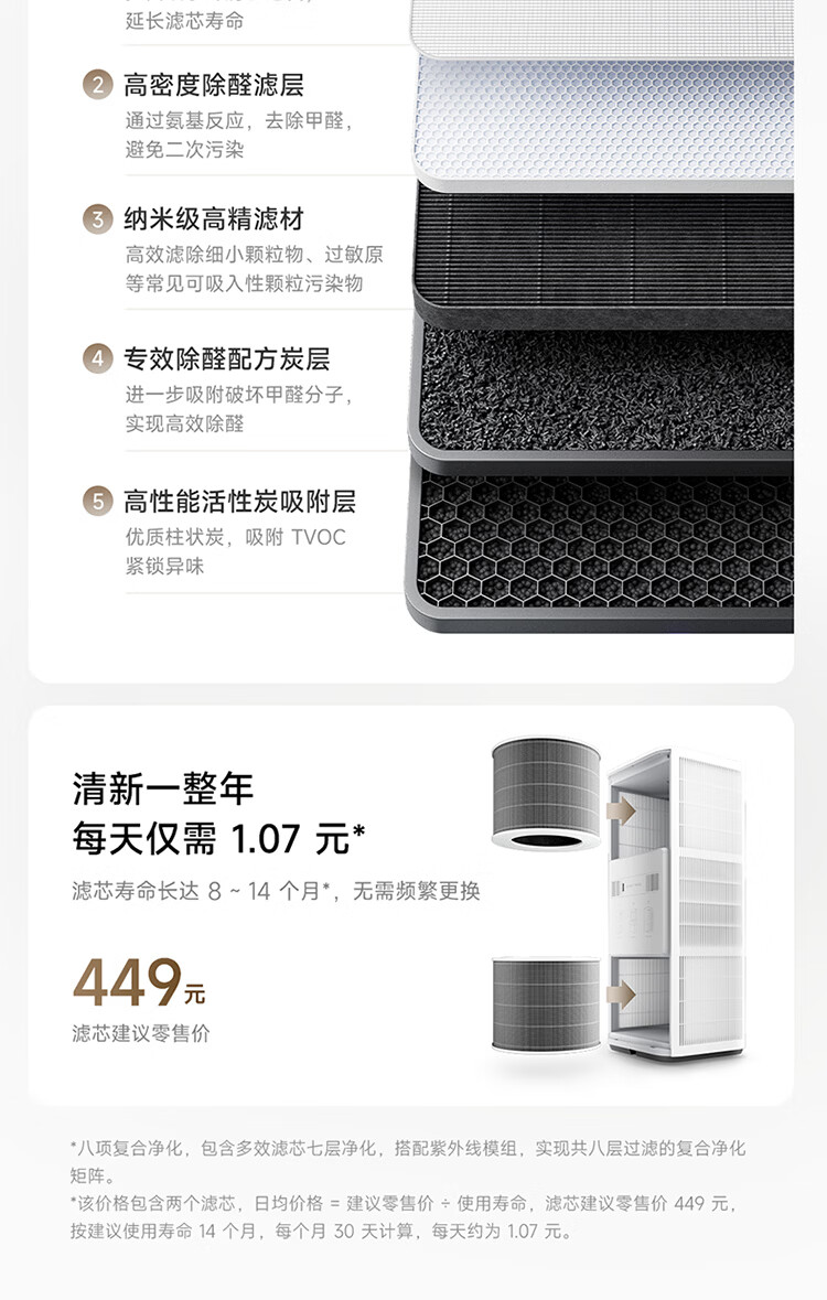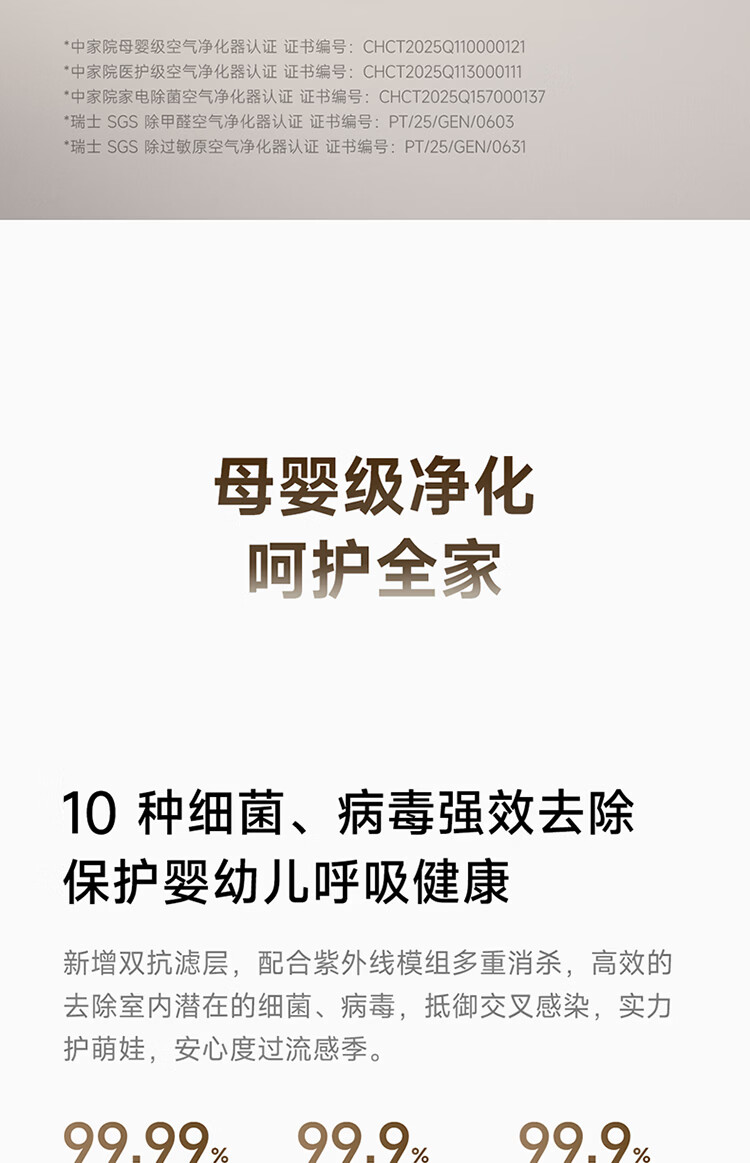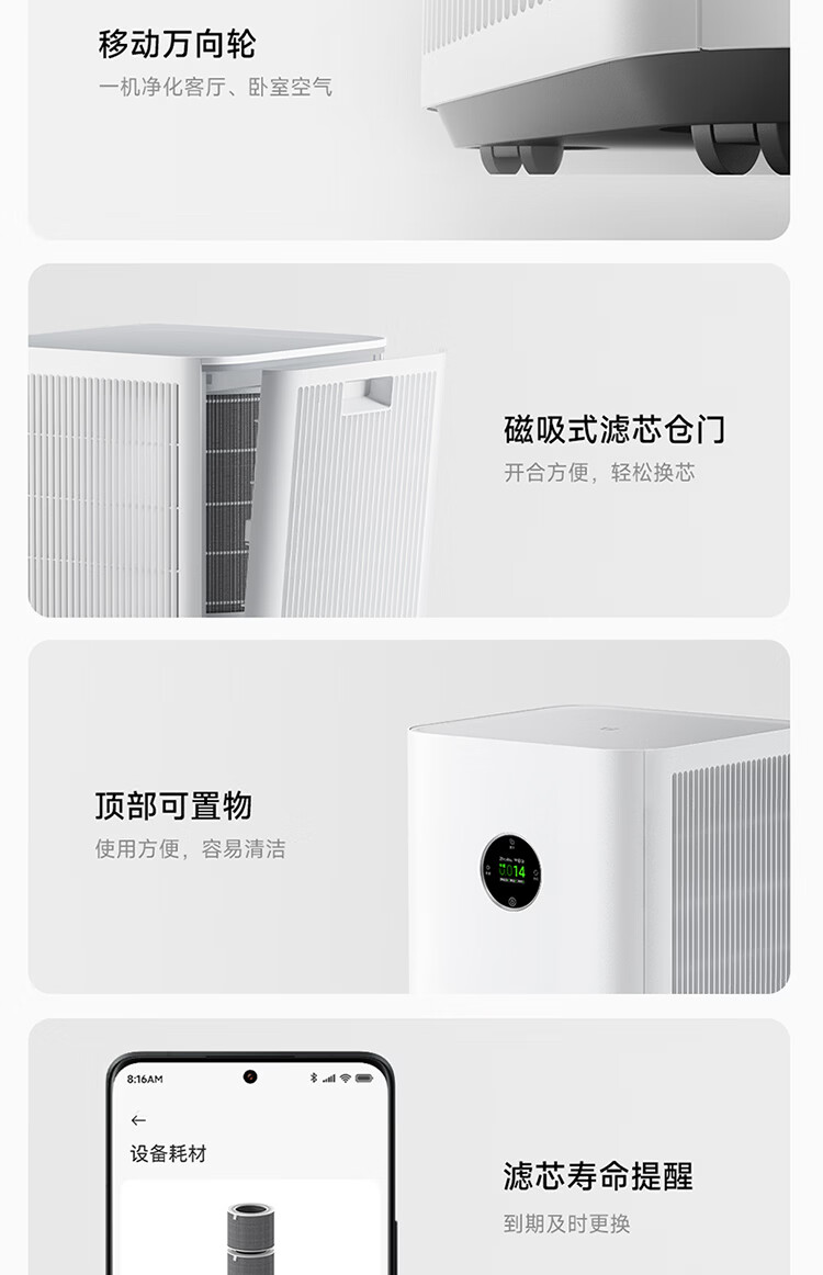 米家小米【发布会同款】空气净化器6Pro新升级双芯架构大空间 除菌除醛母婴级家用除甲醛净化器