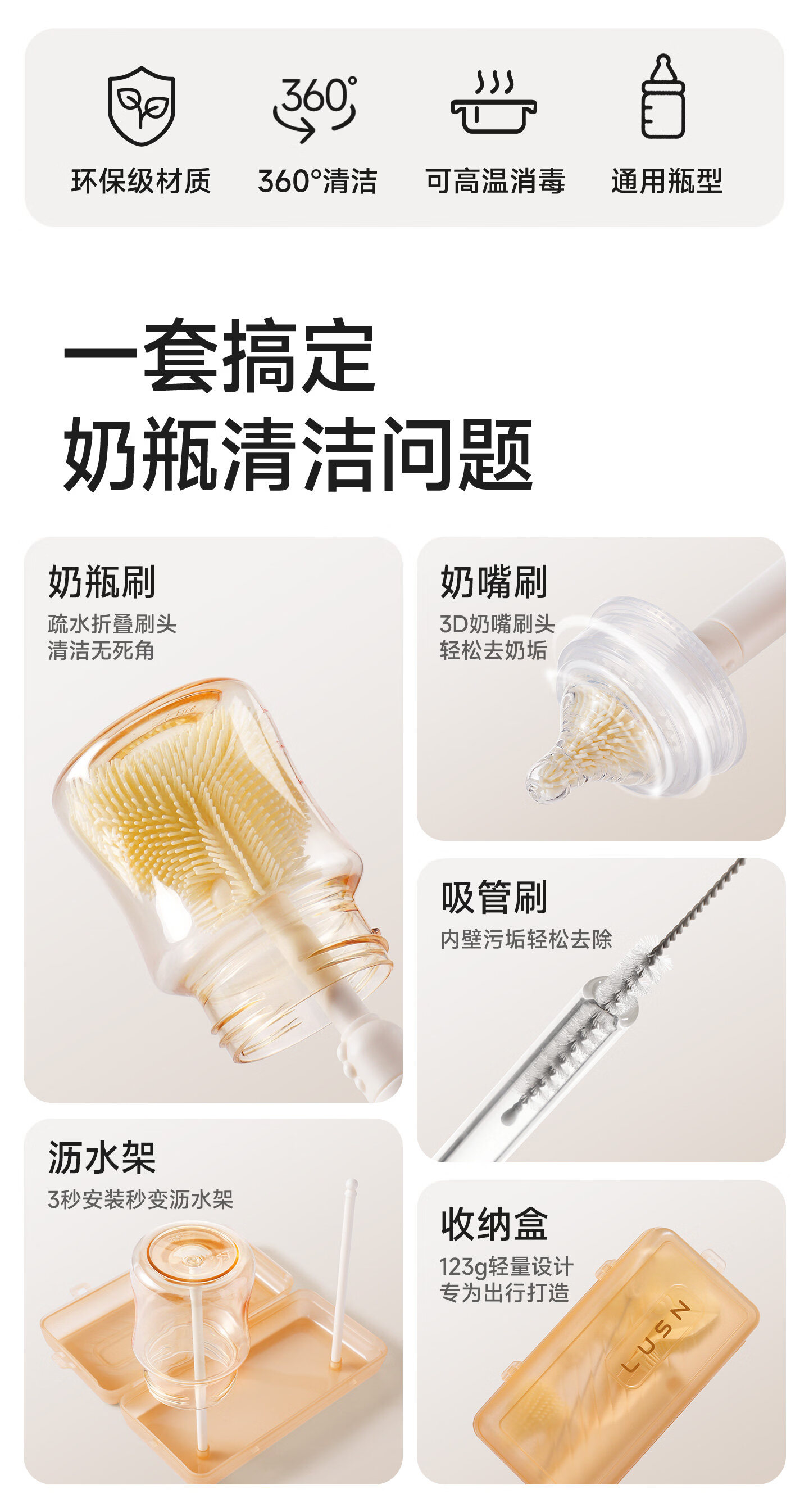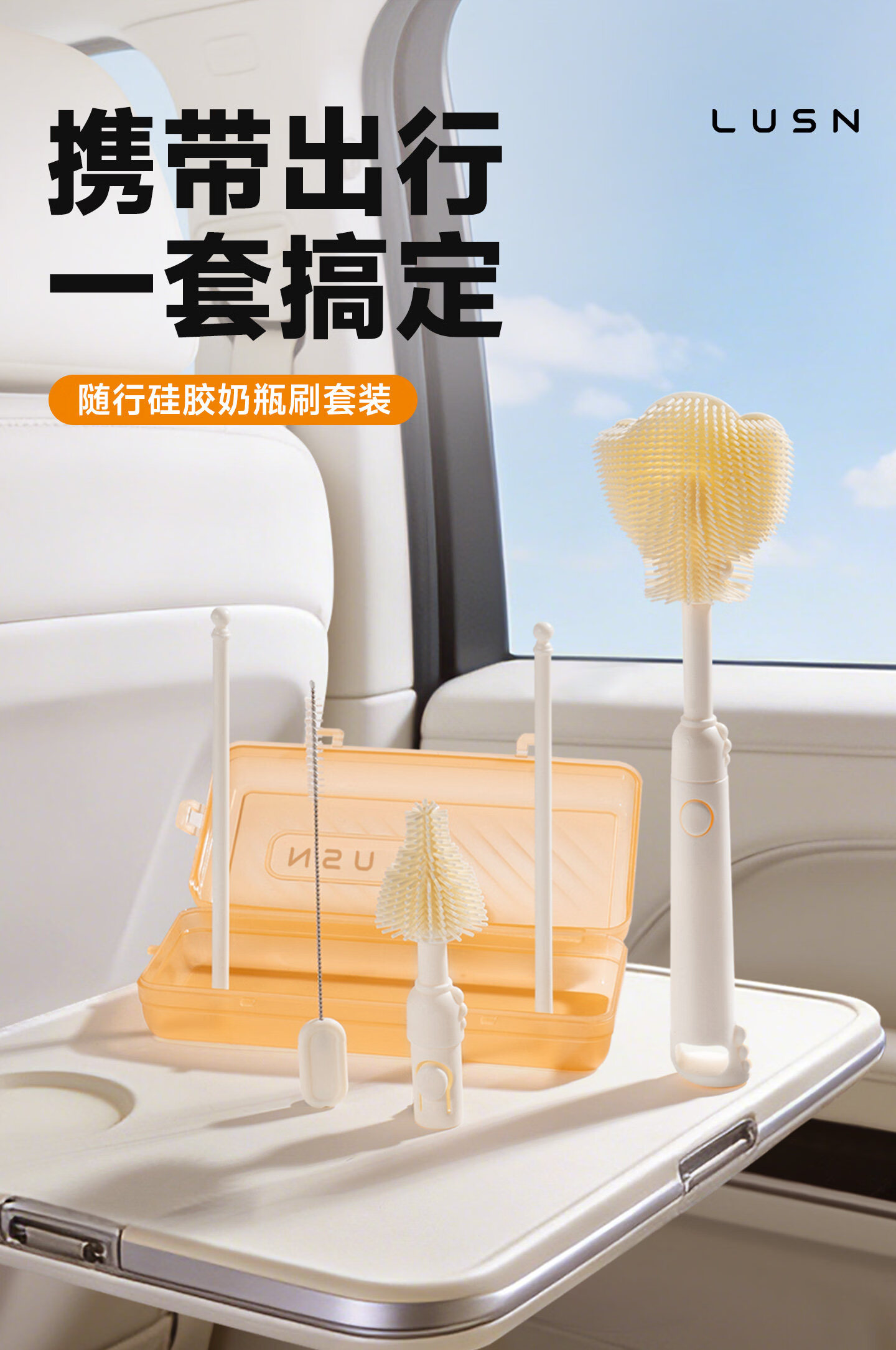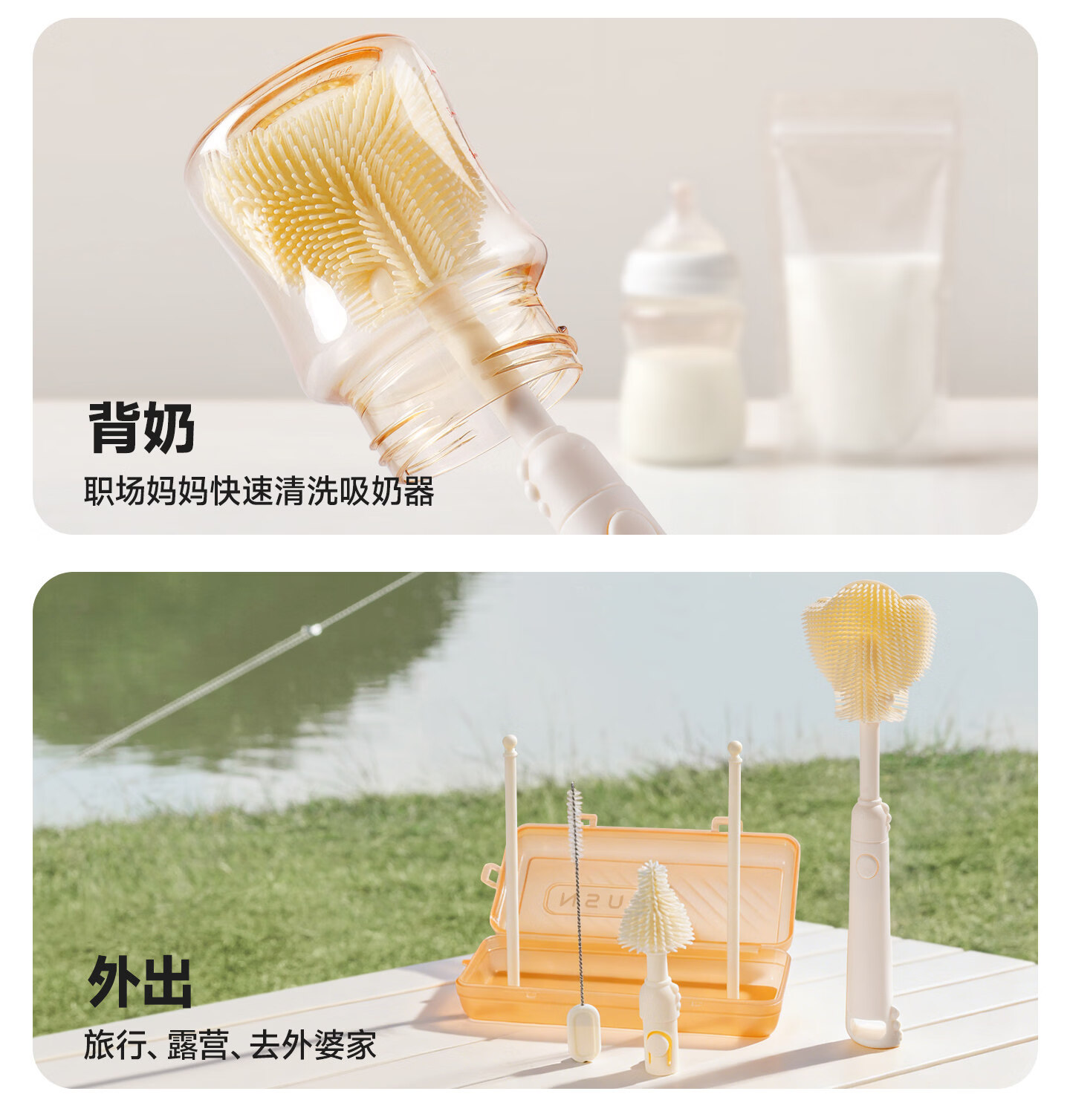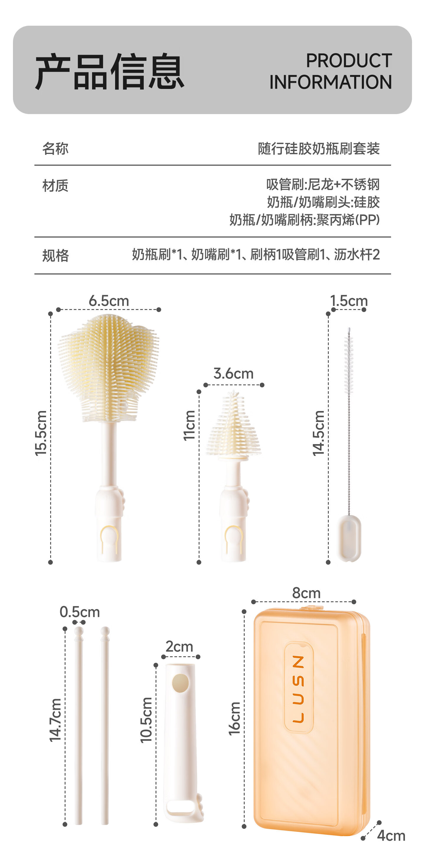 如山(LUSN)奶瓶清洗刷便携新生婴儿专用工具套装奶瓶刷硅胶刷子奶嘴刷 随行硅胶奶瓶刷套装-里瑟米